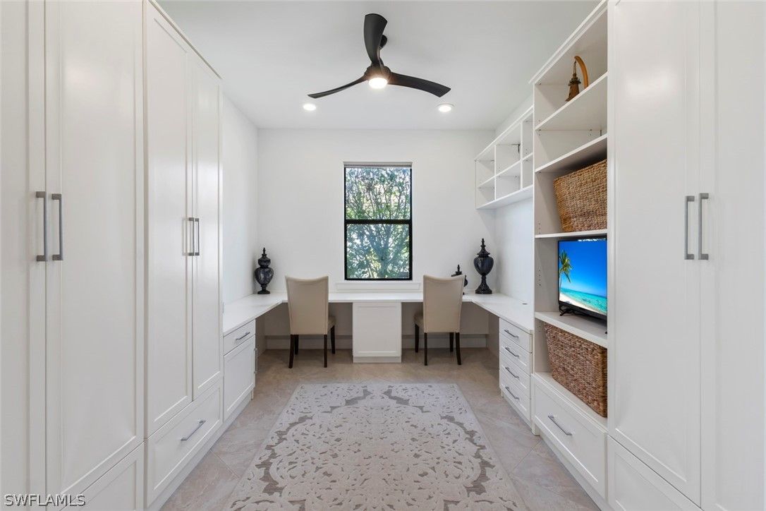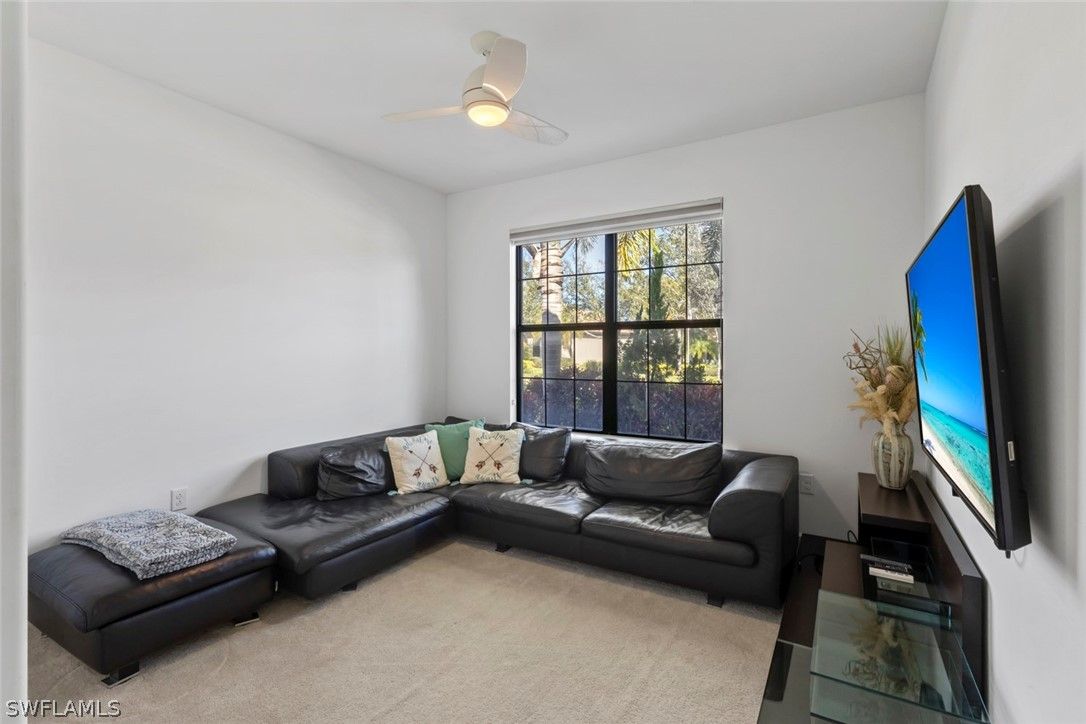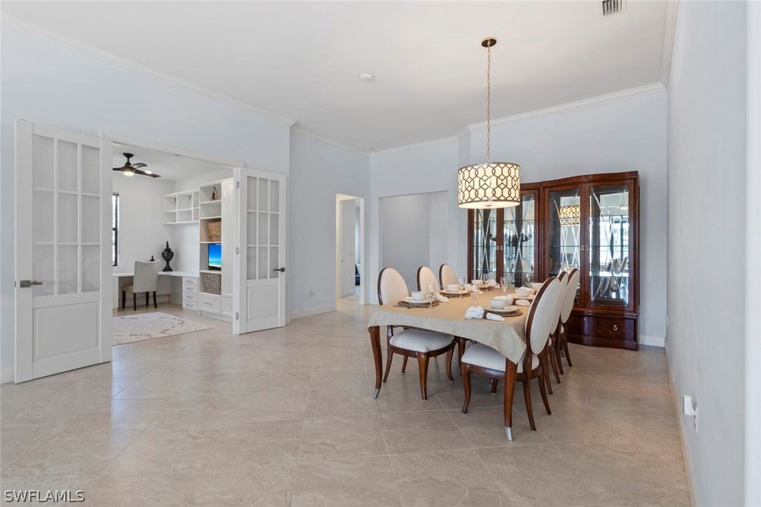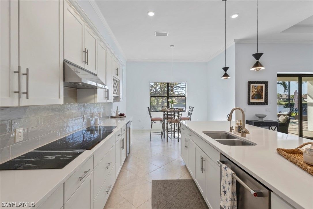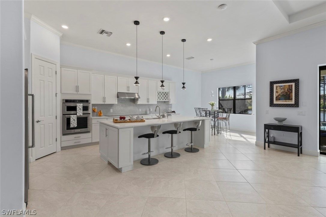 This RARE INFINITY floor plan is located in the 55+ Del Webb community. This SALTWATER POOL HOME showcases over $180,000 in upgrades and options, offering a seamless blend of luxury finishes, smart technology, and thoughtful design. With 3 bedrooms plus a den and 3 full baths, this home was designed for both everyday comfort and effortless entertaining. The upgraded GOURMET KITCHEN serves as the heart of the home, featuring 42” upgraded cabinetry with soft-close pull-out drawers, a high-end cooktop, beverage cooler, wine and glass rack, and designer lighting. Soaring 11’ RAISED COFFERED CEILING and 21x21 diagonal tile flooring throughout the main living areas, den, and PRIMARY SUITE create a spacious and refined atmosphere. The PRIMARY SUITE offers a true retreat, complete with a tray ceiling, large walk-in closet, and a spa-inspired bath featuring a walk-in shower, soaking tub, and dual vanities. Step outside to your PRIVATE LANAI, where the HEATED SALTWATER POOL creates the perfect setting for relaxation or entertaining. This home is further enhanced by a comprehensive SMART HOME PACKAGE including a wireless access point, voice control, smart garage opener, smart door lock, and smart thermostat. IMPACT WINDOWS AND DOORS provide excellent storm protection, and a Storm Smart HURRICANE SCREEN adds additional convenience and peace of mind. ADDITIONAL UPGRADES include a built-in CALIFORNIA CLOSET office system in the den, CROWN MOLDING throughout, a front screened entry, WHOLE HOUSE WATER PURIFICATION SYSTEM, security system, upgraded front-load washer and dryer, window treatments, and an exterior light package with keyless entry. The 3-CAR GARAGE features a 4’ EXTENSION, EPOXY FLOORING and the GOLF CART IS INCLUDED. Furniture is negotiable, and a QUICK MOVE-IN is available. Meticulously maintained and better than new, this luxury Infinity floor plan offers the SOCIAL MEMBERSHIP, but take note GOLF LOVERS, Panther Run Golf Club offers optional MEMBERSHIPS with premium golf experiences just steps from your backyard. In Del Webb Naples, you’ll enjoy WORLD-CLASS AMENITIES that rival luxury resorts: dine at the Rusty Putter Restaurant, soak in the RESORT-STYLE or LAP POOLS, break a sweat in the state-of-the-art FITNESS CENTER, and play your way through PICKLEBALL, TENNIS, bocce, billiards - even a top-tier GOLF SIMULATOR! Need groceries, church, or a bite to eat? Just hop in your golf cart and cruise into town - Publix and the heart of Ave Maria are just minutes away. This isn’t just a home - it’s a LIFESTYLE UPGRADE in one of Southwest Florida’s most vibrant 55+ communities. Don’t miss your chance to live where fun, fitness, and friendships flourish year-round!