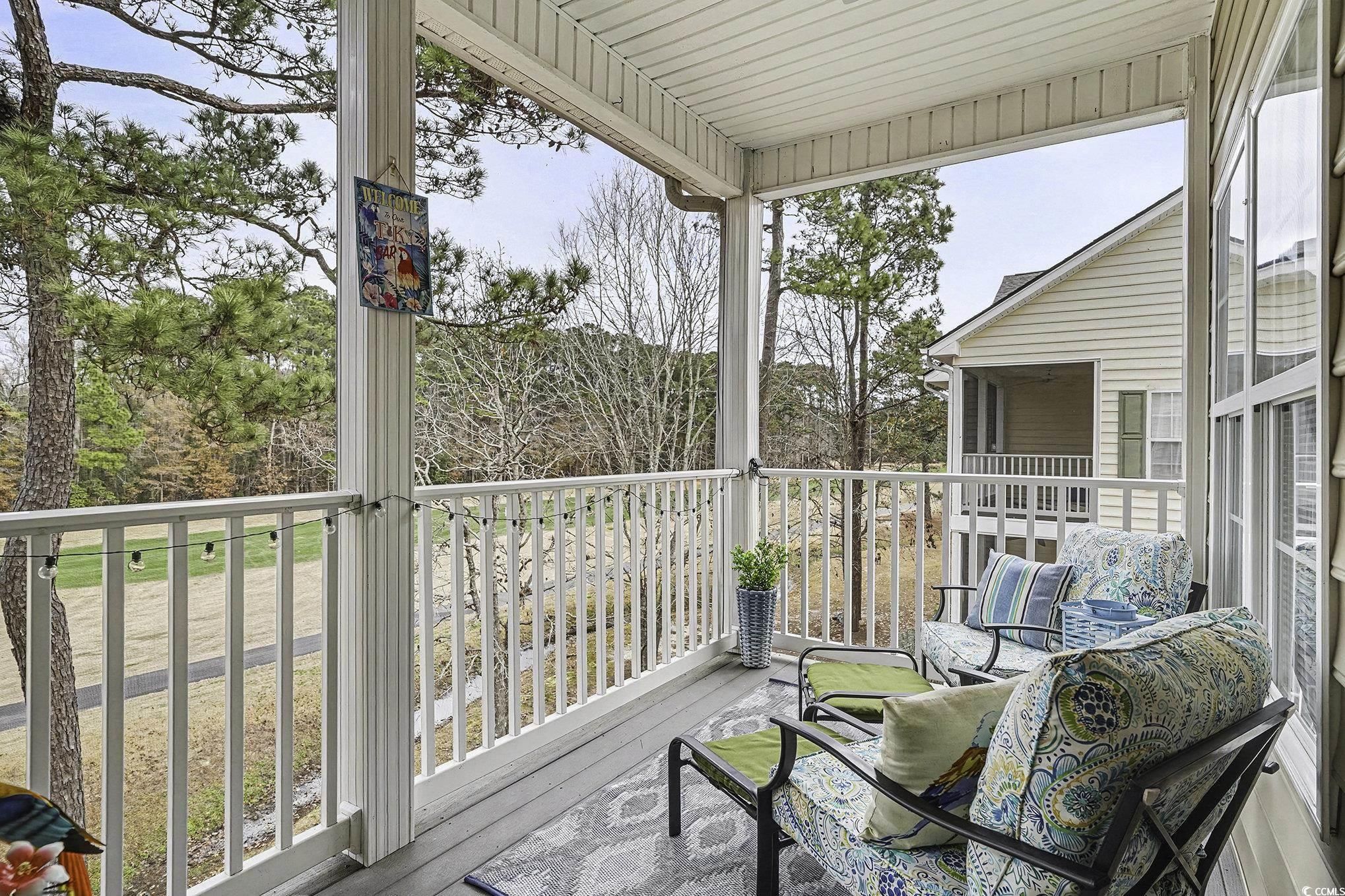 This bright, spacious 3-bedroom, 2-bath end-unit condo is perched on the third floor, offering exceptional privacy and serene golf course views from the screened-in balcony at Marcliffe at Blackmoor in Murrells Inlet. The home features vaulted ceilings, hardwood flooring, abundant natural light, and an open split-bedroom floor plan with oversized bedrooms and a full laundry room. The kitchen supplies ample counter and cabinet space, while the large primary suite offers a walk-in closet, double vanity, and a beautiful tiled walk-in shower. This terrific condo makes an excellent primary residence, vacation retreat, or investment property, just minutes from the Murrells Inlet MarshWalk, beaches, dining, shopping, golf, and the community pool.