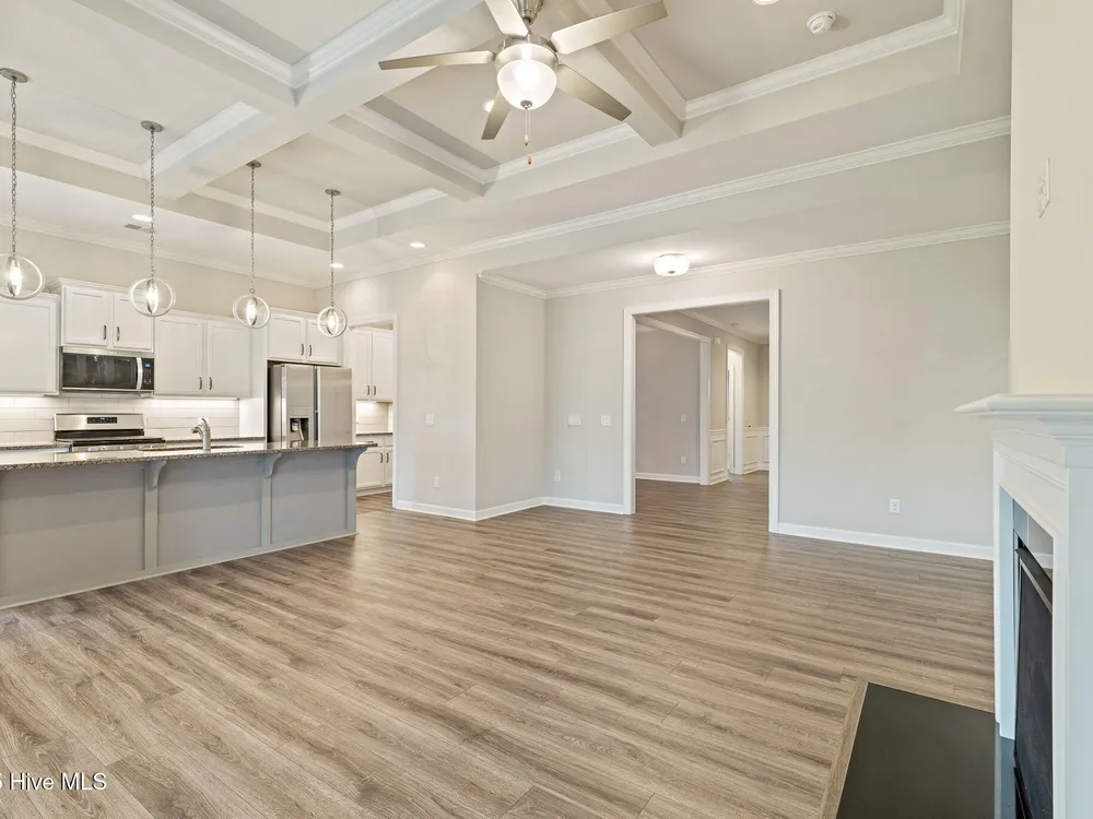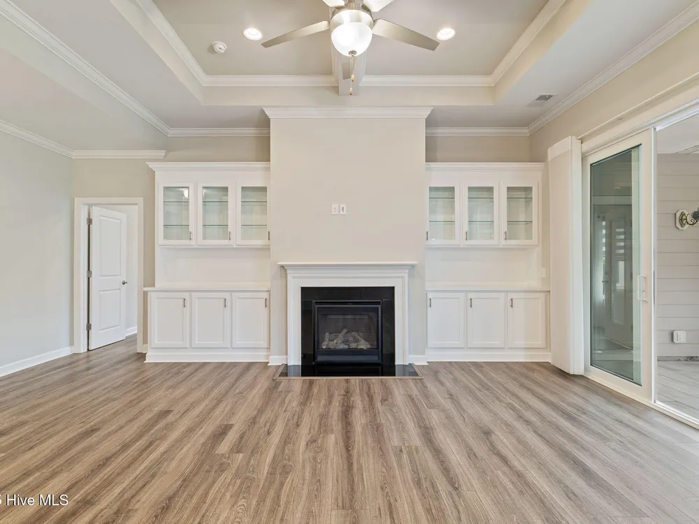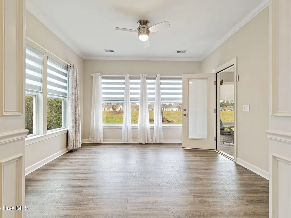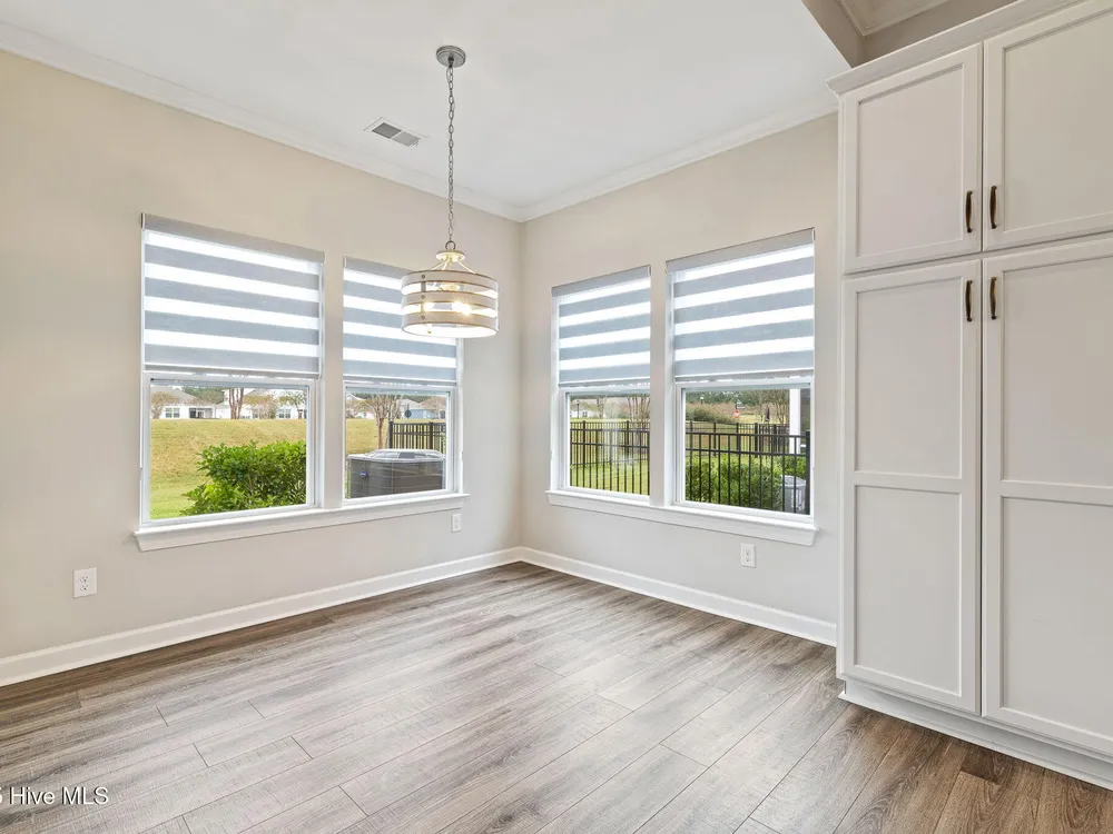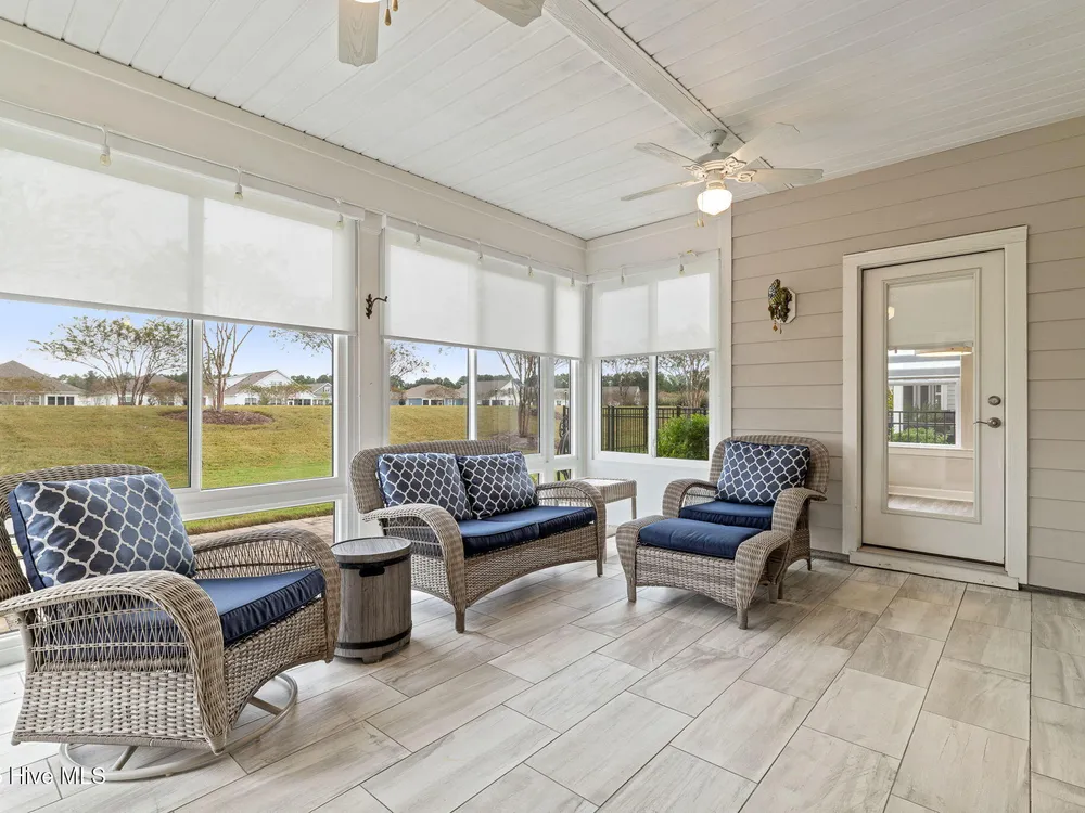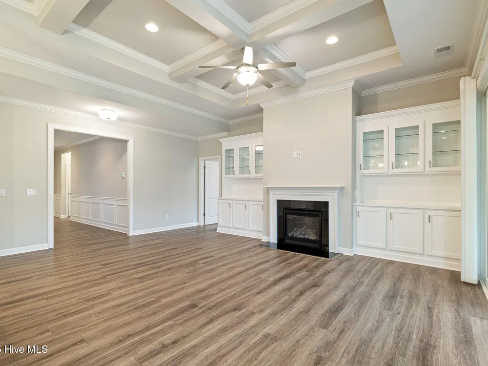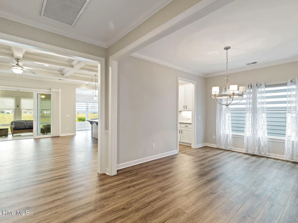 Beautifully maintained and full of thoughtful upgrades, this Brunswick Forest 3 bedroom, 3 bath charming home of 2,445 square feet is a rare find! Built in 2020 in the coveted section of Park West, you will be impressed from the moment you arrive by the lovely landscaping, covered front porch, and elegant entrance. Stepping inside this immaculate home, you'll notice the meticulous craftsmanship, 10-foot coffered ceilings, designer window coverings, contemporary LVP flooring throughout all living spaces and the primary suite, and overall attention to detail. Just past a spacious secondary bedroom with full hall bathroom, you are greeted by the large, open living room featuring a cozy gas fireplace, elegant trey ceiling with ceiling fan, beautifully custom-crafted cabinets, and expansive windows. The light-filled kitchen is a showstopper with abundant cabinets, roll out drawers, stunning granite countertops, subway tile backsplash, stainless steel appliances, butler's pantry/coffee station, large pantry, and center kitchen island. A sunny breakfast nook offers everyday dining, and a formal dining room off the kitchen offers space for all your special occasions. You'll delight in the 8x16 glassed sunroom enclosure with porcelain floors with enough room for relaxing and entertaining year-round. Beyond the enclosed sunroom you will find an enlarged outside rear patio with awning to enjoy your beautiful coastal lifestyle. The downstairs primary bedroom with tray ceiling offers lots of natural light and features a spacious sitting room/office space with direct access to the porch. The upgraded master bathroom boasts a luxurious walk-in shower, dual sinks, and huge custom-designed closet. The spacious laundry room is located off the main entrance. Upstairs, you'll find a private bedroom and a full bathroom. A spacious 2-car garage with shelving features plenty of room for oversized vehicles.