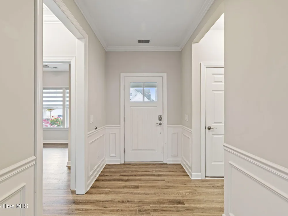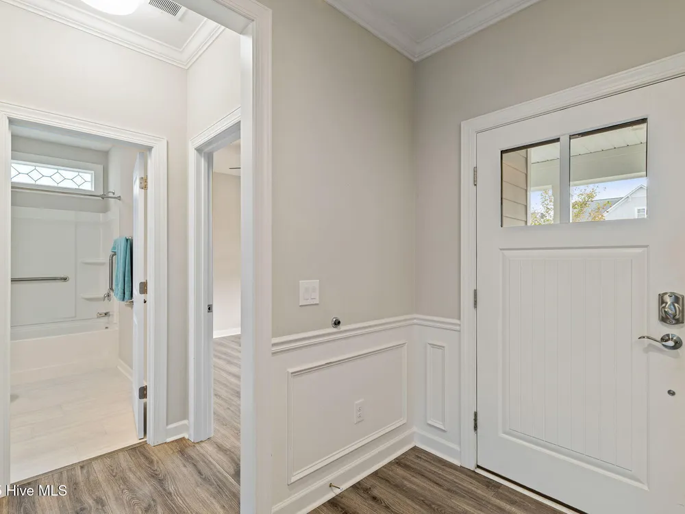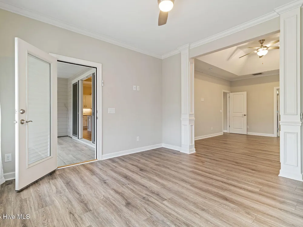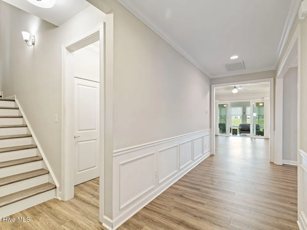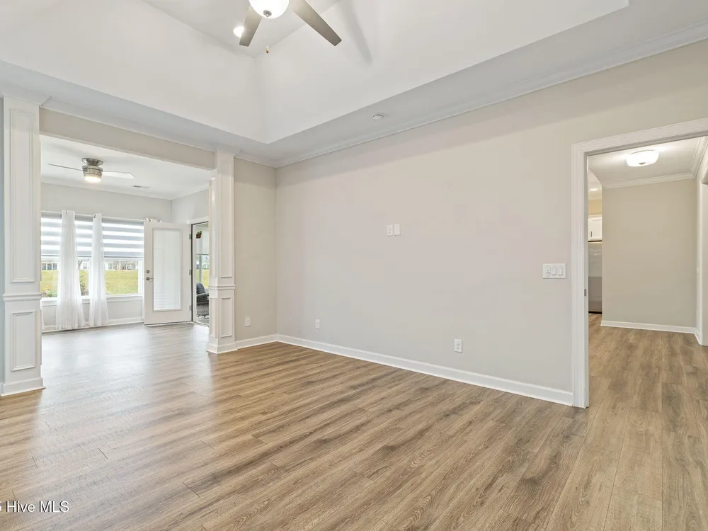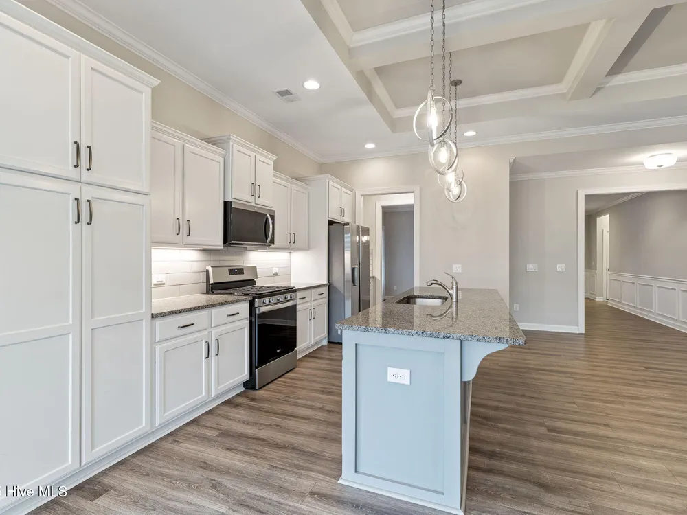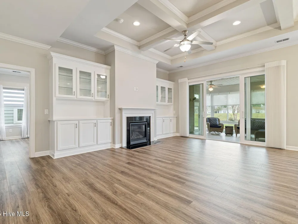 Beautifully maintained and full of thoughtful upgrades, this Brunswick Forest 3 bedroom, 3 bath charming home of 2,445 square feet is a rare find! Built in 2020 in the coveted section of Park West, you will be impressed from the moment you arrive by the lovely landscaping, covered front porch, and elegant entrance. Stepping inside this immaculate home, you'll notice the meticulous craftsmanship, 10-foot coffered ceilings, designer window coverings, contemporary LVP flooring throughout all living spaces and the primary suite, and overall attention to detail. Just past a spacious secondary bedroom with full hall bathroom, you are greeted by the large, open living room featuring a cozy gas fireplace, elegant trey ceiling with ceiling fan, beautifully custom-crafted cabinets, and expansive windows. The light-filled kitchen is a showstopper with abundant cabinets, roll out drawers, stunning granite countertops, subway tile backsplash, stainless steel appliances, butler's pantry/coffee station, large pantry, and center kitchen island. A sunny breakfast nook offers everyday dining, and a formal dining room off the kitchen offers space for all your special occasions. You'll delight in the 8x16 glassed sunroom enclosure with porcelain floors with enough room for relaxing and entertaining year-round. Beyond the enclosed sunroom you will find an enlarged outside rear patio with awning to enjoy your beautiful coastal lifestyle. The downstairs primary bedroom with tray ceiling offers lots of natural light and features a spacious sitting room/office space with direct access to the porch. The upgraded master bathroom boasts a luxurious walk-in shower, dual sinks, and huge custom-designed closet. The spacious laundry room is located off the main entrance. Upstairs, you'll find a private bedroom and a full bathroom. A spacious 2-car garage with shelving features plenty of room for oversized vehicles.
