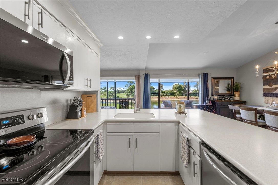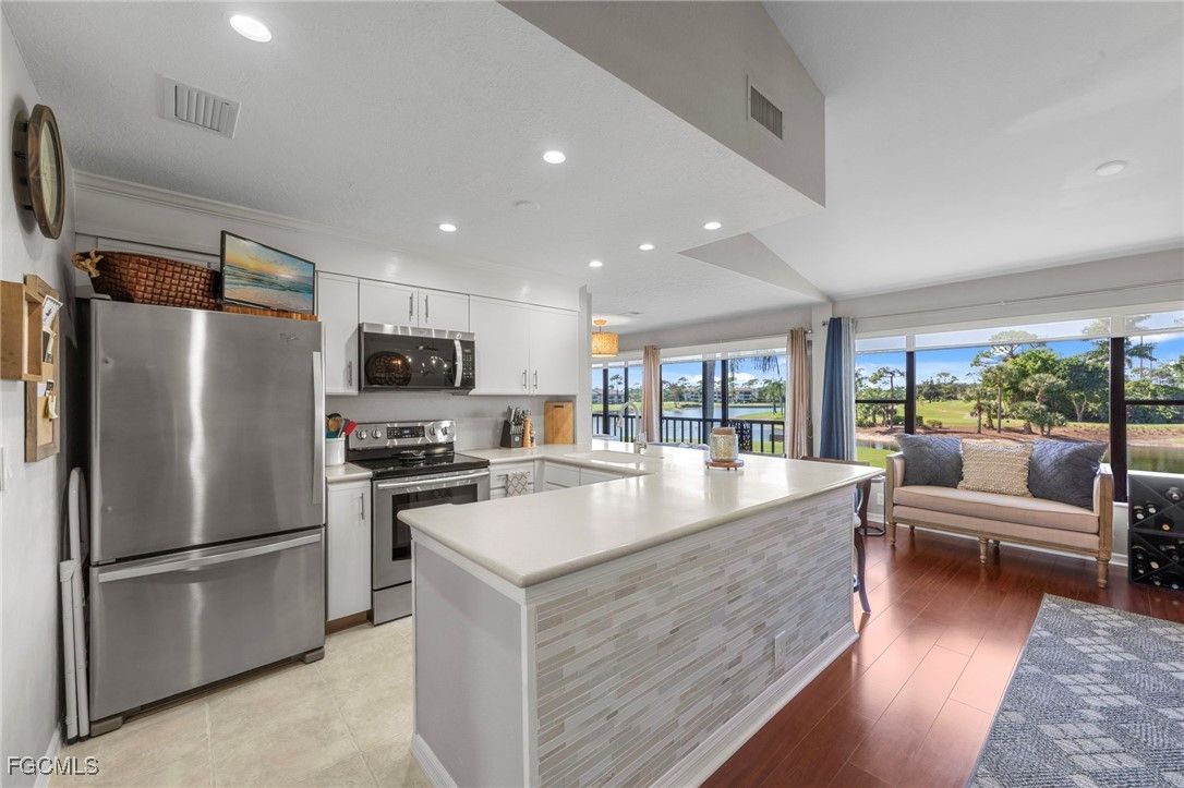The Hideaway Country Club is a tucked away community located in the heart of Fort Myers, Fl. It is a “HIDDEN GEM”, that includes a championship 18-hole golf course. Golf is not mandatory, however, membership is very reasonable. This 3 bedroom, 2 bath, renovated condo is located in Oakmont Village, with beautiful golf course and lake views.This gorgeous property is beautifully appointed and sold Turnkey with high end furnishings and decor. The Master Bed alone was over $10,000! The flooring is of high quality, the big windows make it so light and bright. The lighting and finishes, have been carefully chosen to complement every room. Recent updates include: Storm Door (2024),Water Heater (2025),Microwave (2024), Keyless Entry 2023, New Roof 2024, Soffits & Fascia (2024), Hurricane Impact Glass on Sliders. The exterior of the Buildings will be painted starting November 2025 and parking lot resealed 2025/26. *All paid for. This condo is steps away from the community pool and patio with grills.You also have a private dedicated golf cart parking right outside your door that is equipped with electric for charging. The main clubhouse has a great restaurant and bar, and during season there are plenty of activities and monthly themed parties. If you are a golfer, there are no green or cart fees. A special on membership is running through April 2026. Contact me for details.