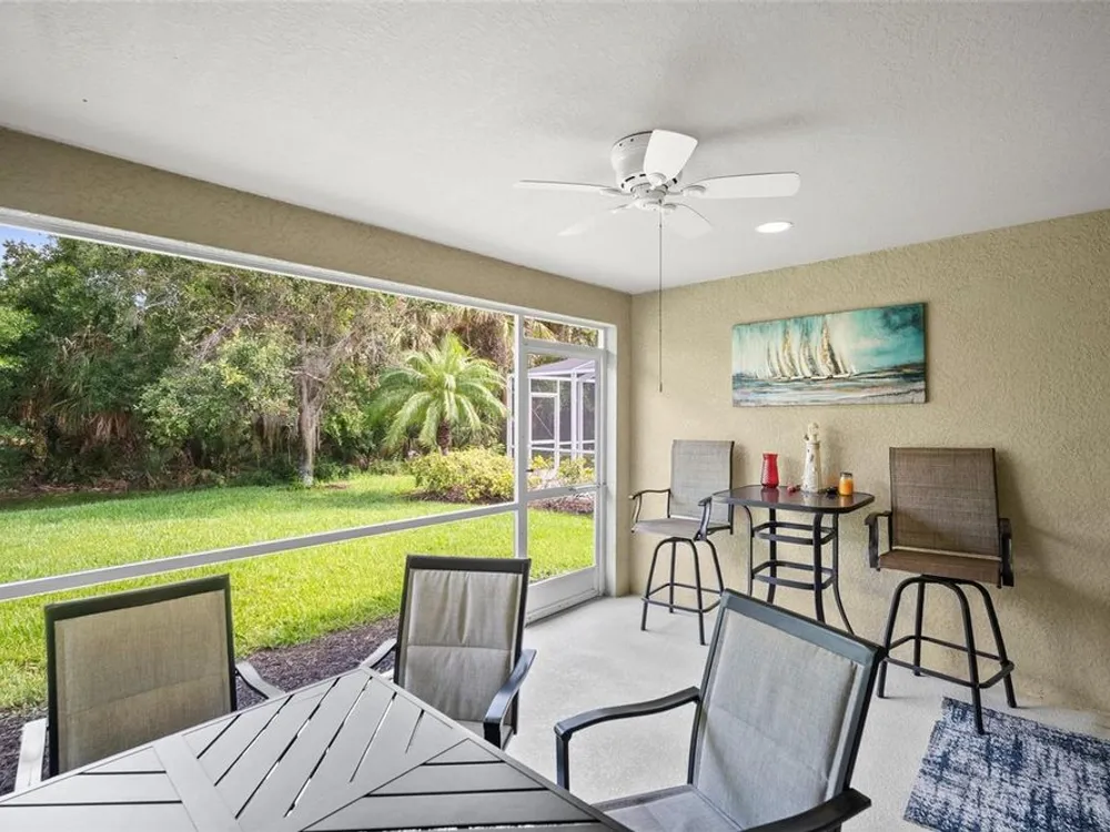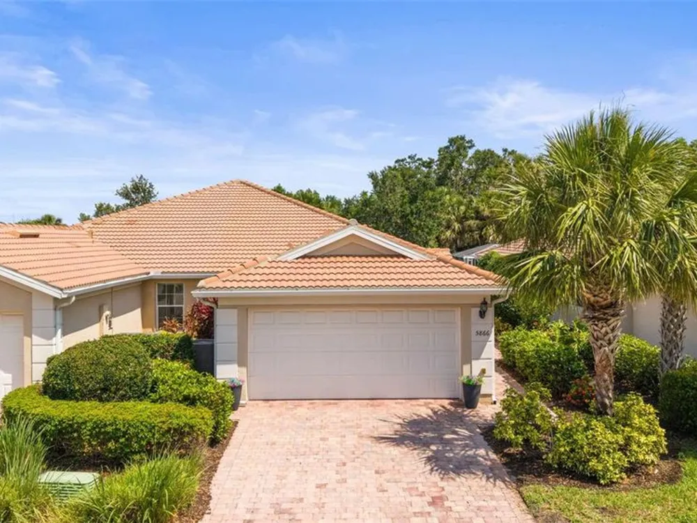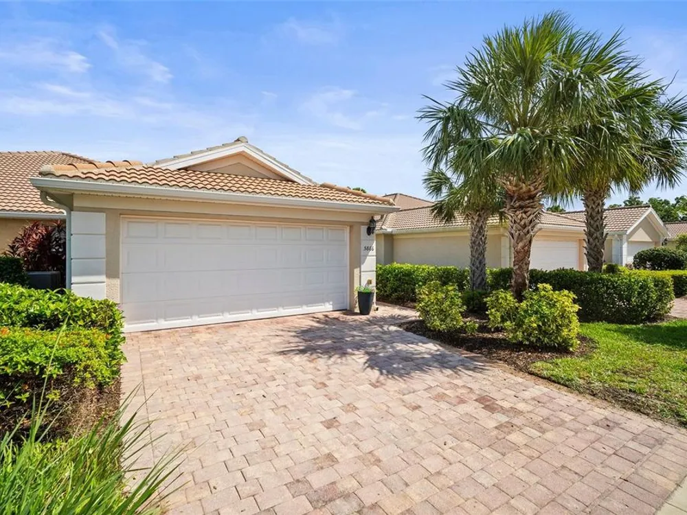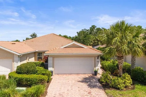 Your next adventure starts here! This immaculate Carrington model 3-bedroom villa is perfectly located in one of Sarasota’s most scenic communities. The open layout features large tile flooring in the main living areas and a bright, welcoming feel throughout. The kitchen offers granite countertops, stainless steel appliances, a closet pantry, plenty of cabinet space, and a newer range and refrigerator—great for everyday living or entertaining. The primary suite includes a walk-in closet and private ensuite bath. The second bedroom also has a walk-in closet and cozy carpet, while the third bedroom—with tile flooring and French doors—works perfectly as a home office or guest room. Enjoy the convenience of a two-car garage with attic storage and a separate laundry room with utility sink and newer dryer. A/C replaced in 2022. Relax on the covered, screened lanai or take advantage of the resort-style amenities: a clubhouse with card room, fitness center, catering kitchen, geothermal heated pool, pickleball and basketball courts, 4 Har-Tru tennis courts, bocce, playground, and full-time activities director and HOA manager. Just minutes from Siesta Key Beach, Legacy Trail, Publix, Costco, and top shopping and dining spots. Don’t miss this one—schedule your private tour today!