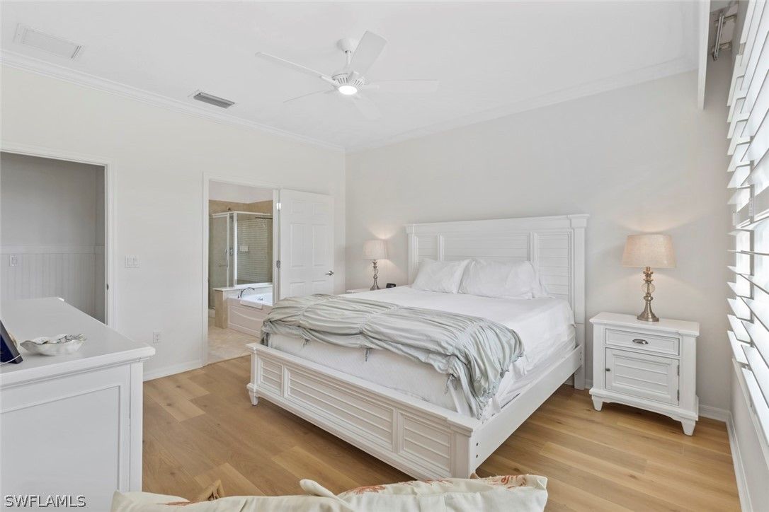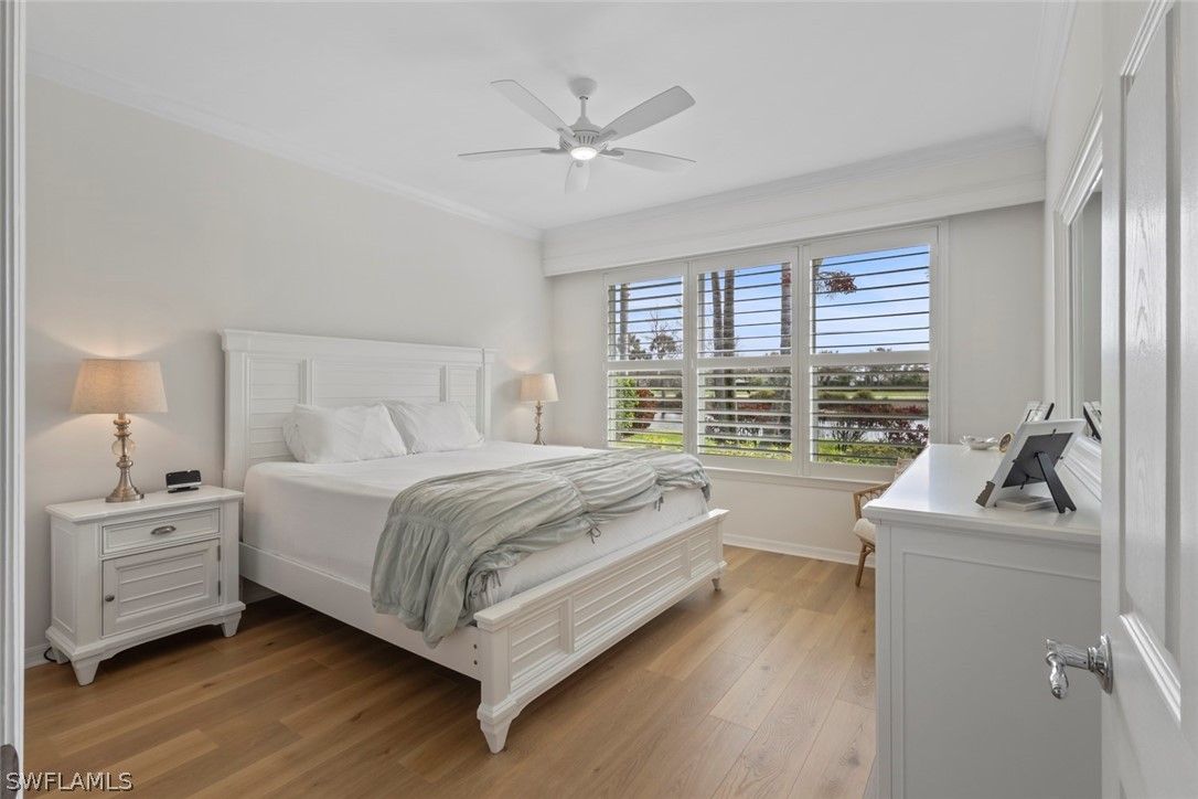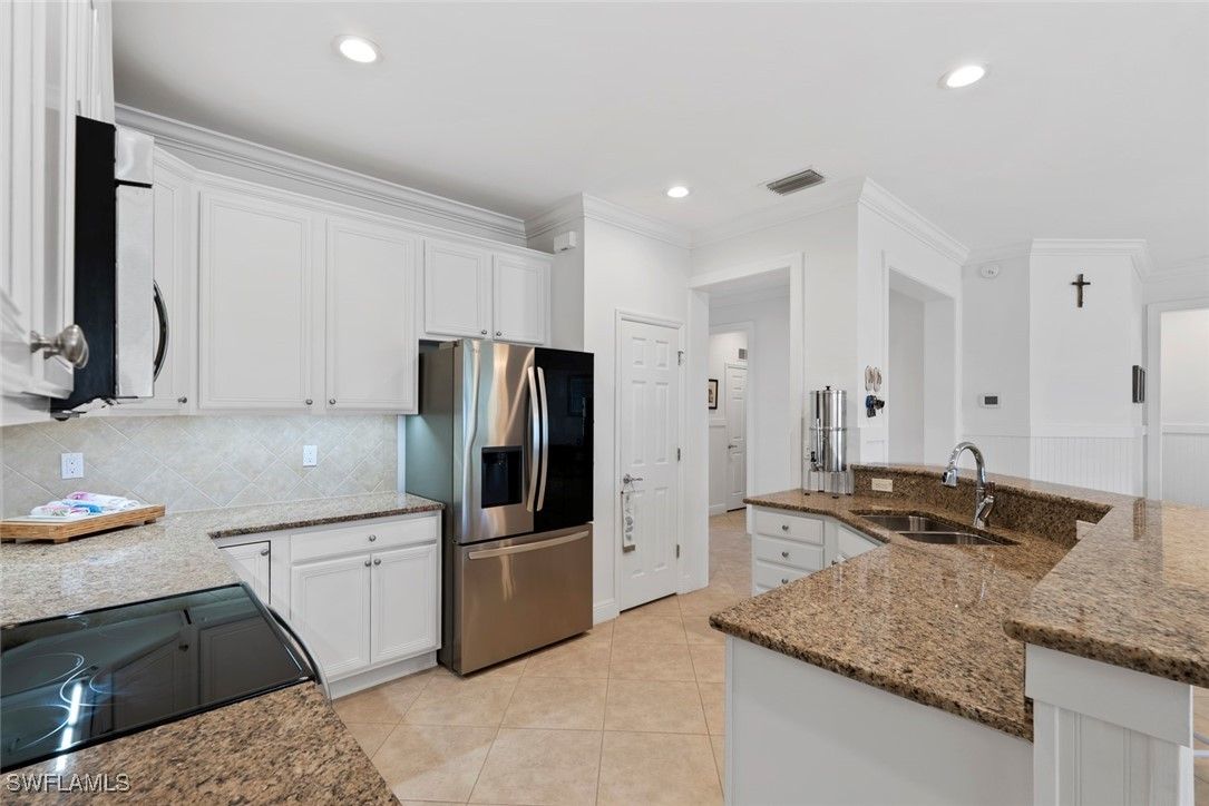 GREAT NEW PRICE - QUICK MOVE-IN! GOLF & WATER VIEWS! Step into this immaculate COPPER RIDGE floor plan located in the desirable 55+ Del Webb Naples golf community, featuring a beautifully RENOVATED KITCHEN that looks and feels brand NEW. Enjoy breathtaking SUNRISES from the oversized EXTENDED LANAI finished with upgraded TRAVERTINE PAVERS - perfect for morning coffee or evening gatherings. Inside, the KITCHEN is appointed with a newer dishwasher, LG refrigerator, and plenty of space for culinary creativity. The PRIMARY SUITE is a private retreat featuring a custom walk-in closet, dual sinks, a walk-in shower, and a relaxing soaking tub. A guest bedroom plus a flexible den provide ideal space for visitors, a home office, or hobbies. ADDITIONAL UPGRADES include a newer washer and dryer, PLANTATION SHUTTERS, wainscoting, luxury vinyl and TILE FLOORING THROUGHOUT, and fresh interior and exterior paint. For peace of mind, the Simply Safe ALARM SYSTEM is equipped with fire and moisture detection, interior/exterior cameras, and motion sensors. With FURNISHINGS NEGOTIABLE, this home is ready to move in NOW!This home comes with the SOCIAL MEMBERSHIP, but take note GOLF LOVERS, Panther Run Golf Club offers optional MEMBERSHIPS with premium golf experiences just steps from your backyard. In Del Webb Naples, you’ll enjoy WORLD-CLASS AMENITIES that rival luxury resorts: dine at the Rusty Putter Restaurant, soak in the RESORT-STYLE or LAP POOLS, break a sweat in the state-of-the-art FITNESS CENTER, and play your way through PICKLEBALL, TENNIS, bocce, billiards - even a top-tier GOLF SIMULATOR! Need groceries, church, or a bite to eat? Just hop in your golf cart and cruise into town - Publix and the heart of Ave Maria are just minutes away. This isn’t just a home - it’s a LIFESTYLE UPGRADE in one of Southwest Florida’s most vibrant 55+ communities. Don’t miss your chance to live where fun, fitness, and friendships flourish year-round!