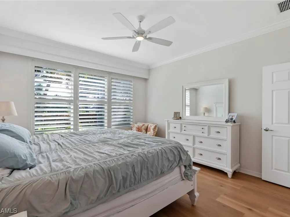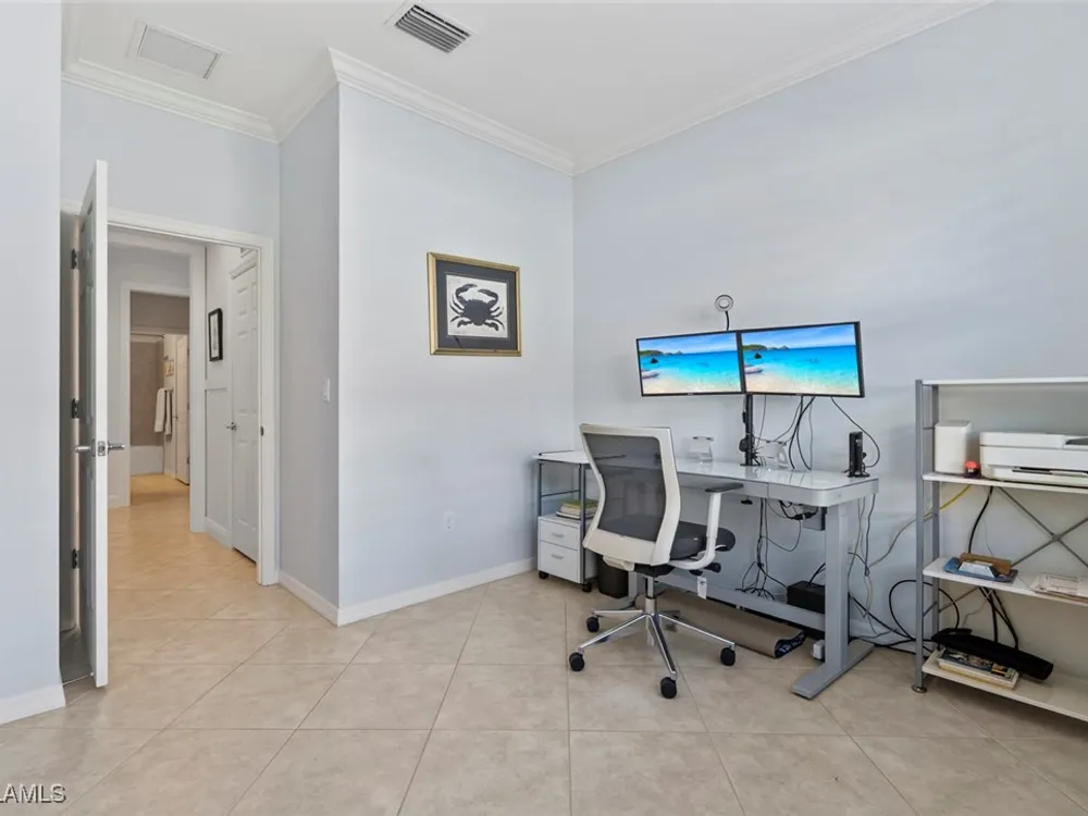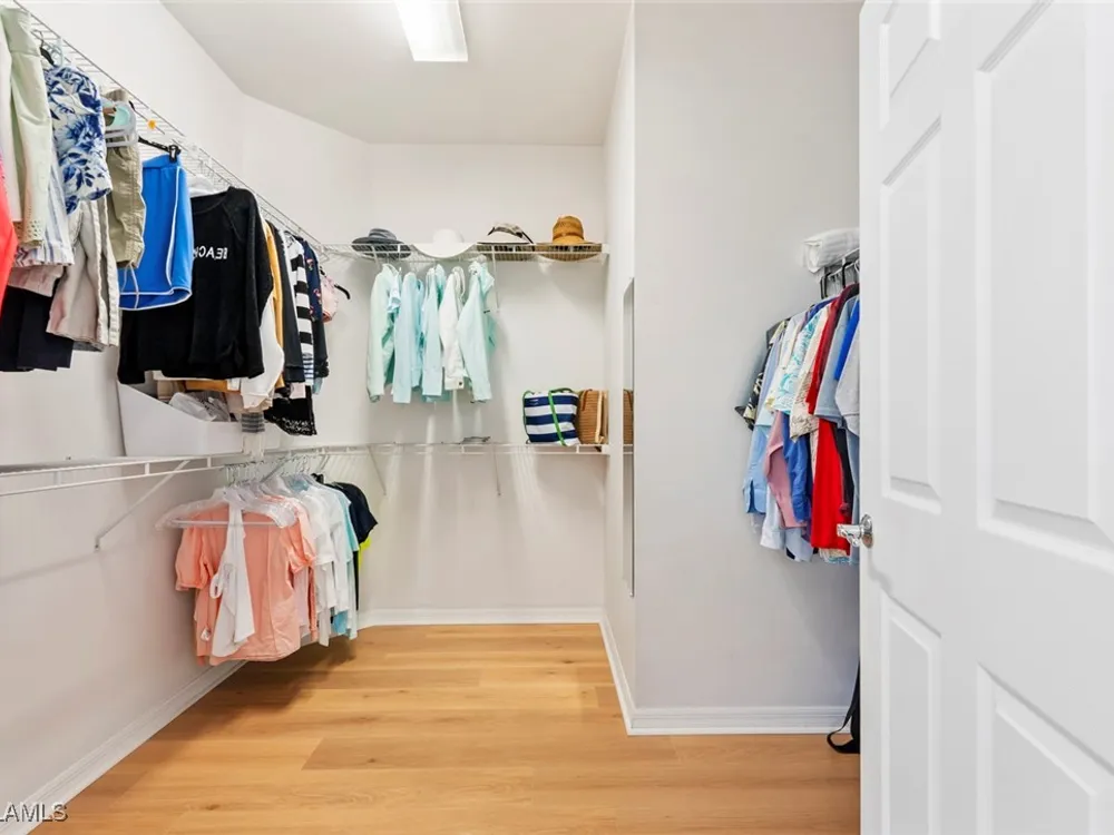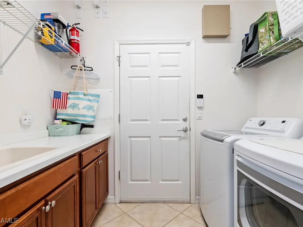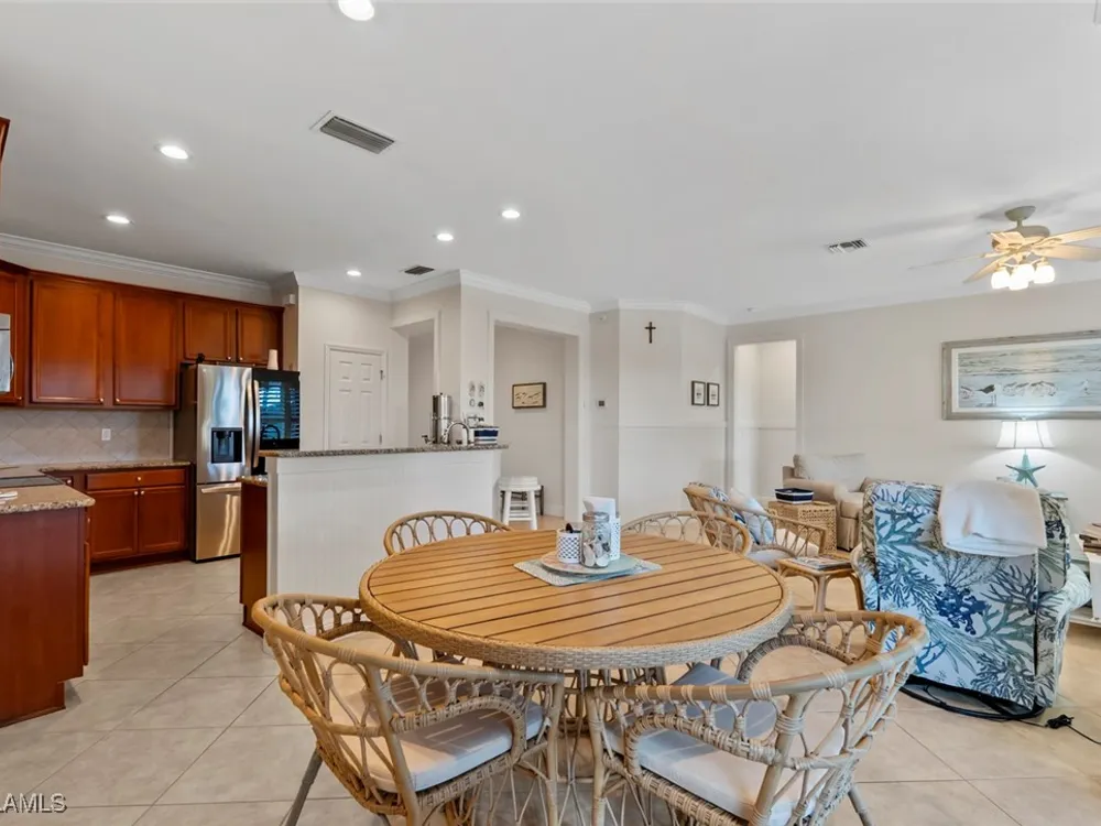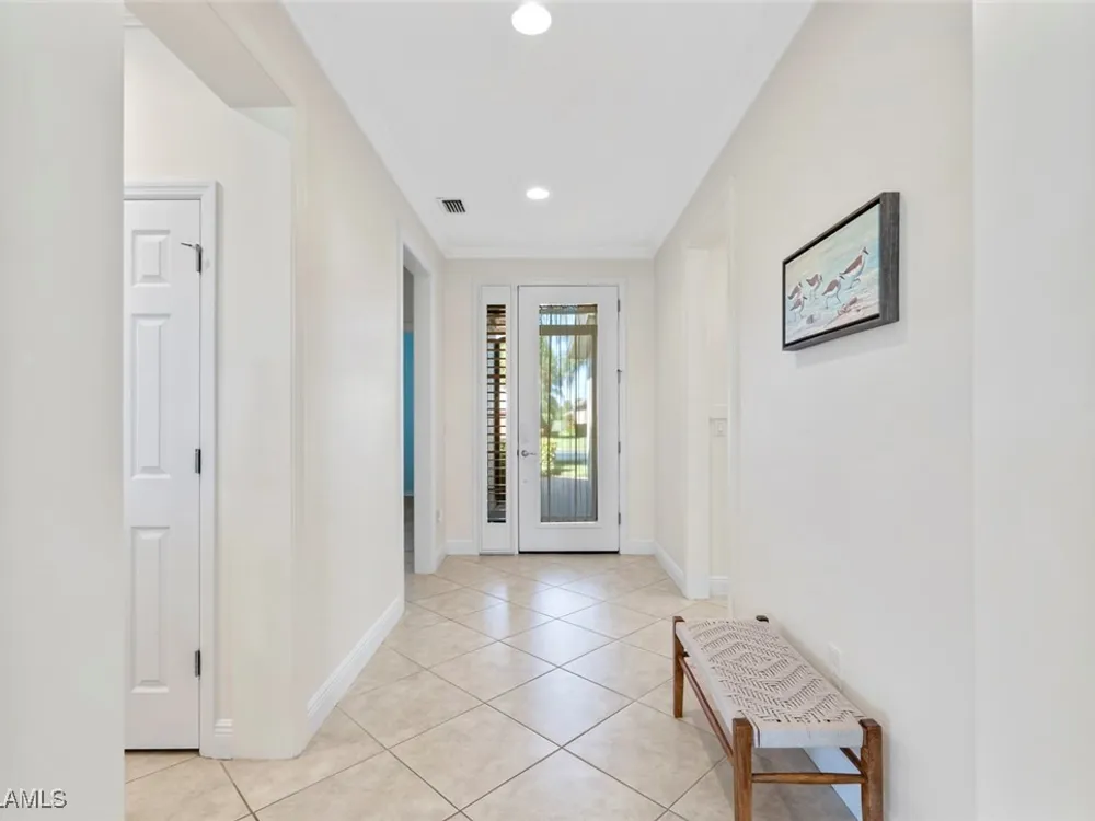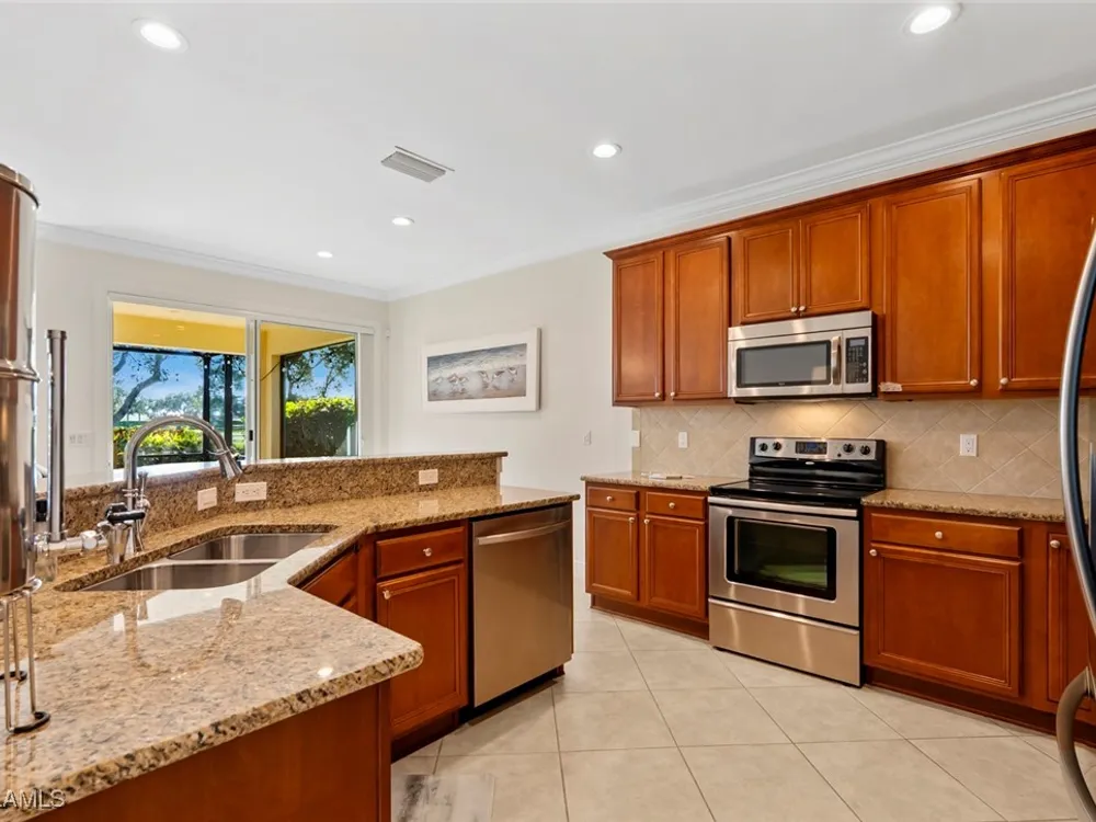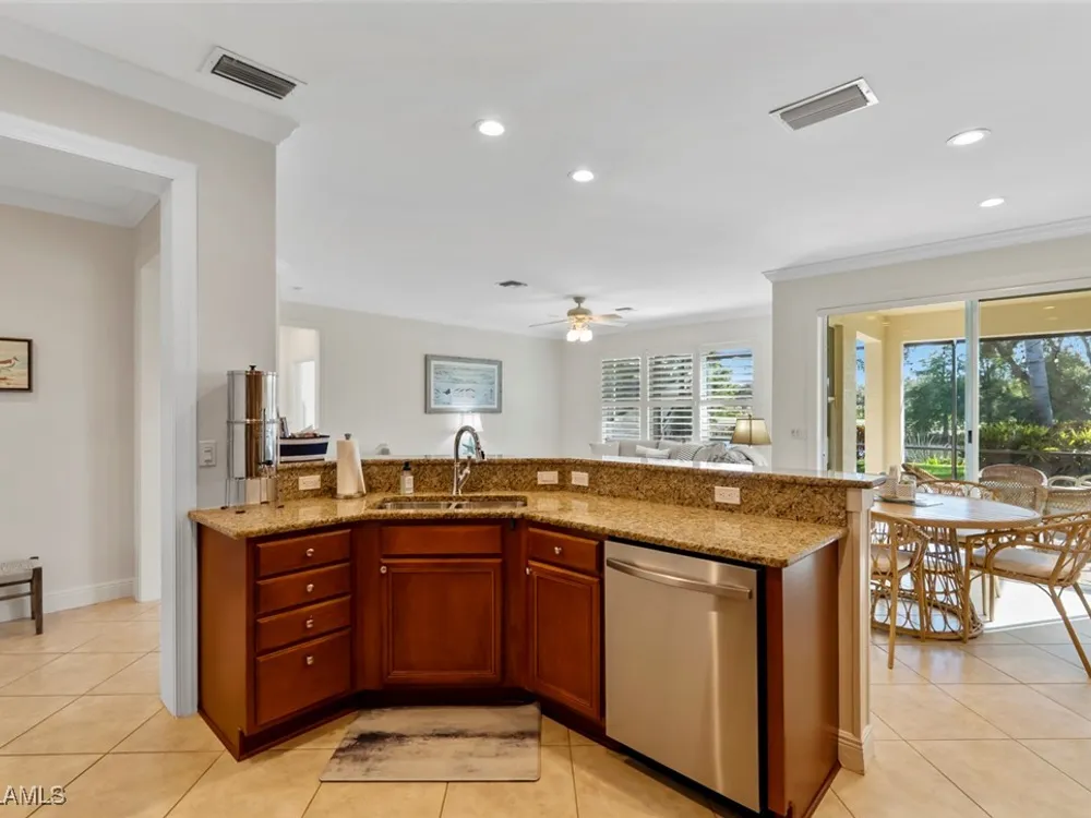 GOLF & WATER VIEWS! Step into this beautifully maintained COPPER RIDGE floor plan in the 55+ Del Webb Naples golf community. Enjoy breathtaking SUNRISES from the oversized EXTENDED LANAI finished with upgraded TRAVERTINE PAVERS - perfect for morning coffee or evening gatherings. Inside, the KITCHEN is appointed with a newer dishwasher, LG refrigerator, and plenty of space for culinary creativity. The PRIMARY SUITE is a private retreat featuring a custom walk-in closet, dual sinks, a walk-in shower, and a relaxing soaking tub. A guest bedroom plus a flexible den provide ideal space for visitors, a home office, or hobbies. ADDITIONAL UPGRADES include a newer washer and dryer, PLANTATION SHUTTERS, wainscoting, luxury vinyl and TILE FLOORING THROUGHOUT, and fresh interior and exterior paint. For peace of mind, the Simply Safe ALARM SYSTEM is equipped with fire and moisture detection, interior/exterior cameras, and motion sensors. With FURNISHINGS NEGOTIABLE, this home is ready to move in NOW!This home comes with the SOCIAL MEMBERSHIP, but take note GOLF LOVERS, Panther Run Golf Club offers optional MEMBERSHIPS with premium golf experiences just steps from your backyard. In Del Webb Naples, you’ll enjoy WORLD-CLASS AMENITIES that rival luxury resorts: dine at the Rusty Putter Restaurant, soak in the RESORT-STYLE or LAP POOLS, break a sweat in the state-of-the-art FITNESS CENTER, and play your way through PICKLEBALL, TENNIS, bocce, billiards - even a top-tier GOLF SIMULATOR! Need groceries, church, or a bite to eat? Just hop in your golf cart and cruise into town - Publix and the heart of Ave Maria are just minutes away. This isn’t just a home - it’s a LIFESTYLE UPGRADE in one of Southwest Florida’s most vibrant 55+ communities. Don’t miss your chance to live where fun, fitness, and friendships flourish year-round!