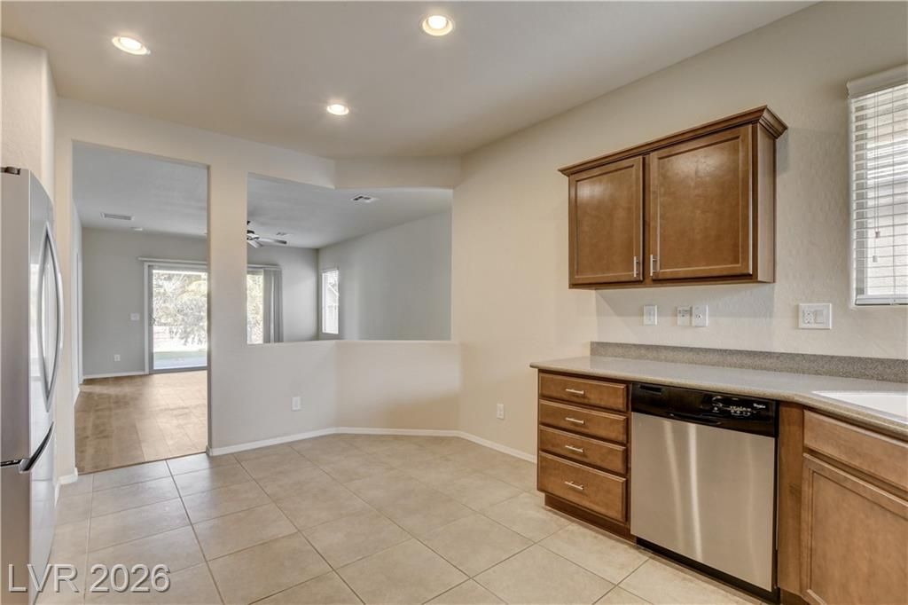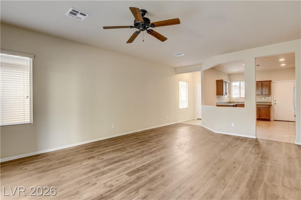 55+ Solera at Stallion Mountain 2-bedroom “Morgan” model. Thoughtfully maintained home with brand new flooring, cozy kitchen, stainless steel appliances, new refrigerator and quiet backyard retreat with pavers. Simple open layout plan that's light and bright. Primary bedroom with large walk-in closet, private bath with dual sinks and separate shower, 2nd bedroom located on opposite side of home and adjacent to 2nd bathroom. Tankless water heater ,water softener and alarm system wired & ready. This move-in ready home is nestled in the vibrant Solera at Stallion Mountain community, where you’ll enjoy resort-style amenities including a pool, spa, clubhouse, fitness center, pickleball and tennis courts, plus a full calendar of social activities.