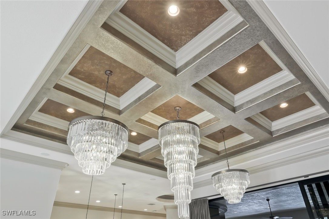 - Breakfast Bar, Bathtub, Coffered Ceiling(s), Dual Sinks, Entrance Foyer, Eat-in Kitchen, Kitchen Island, Pantry, Separate Shower, Cable TV, Walk-In Closet(s), Window Treatments, Split Bedrooms, Smart Home