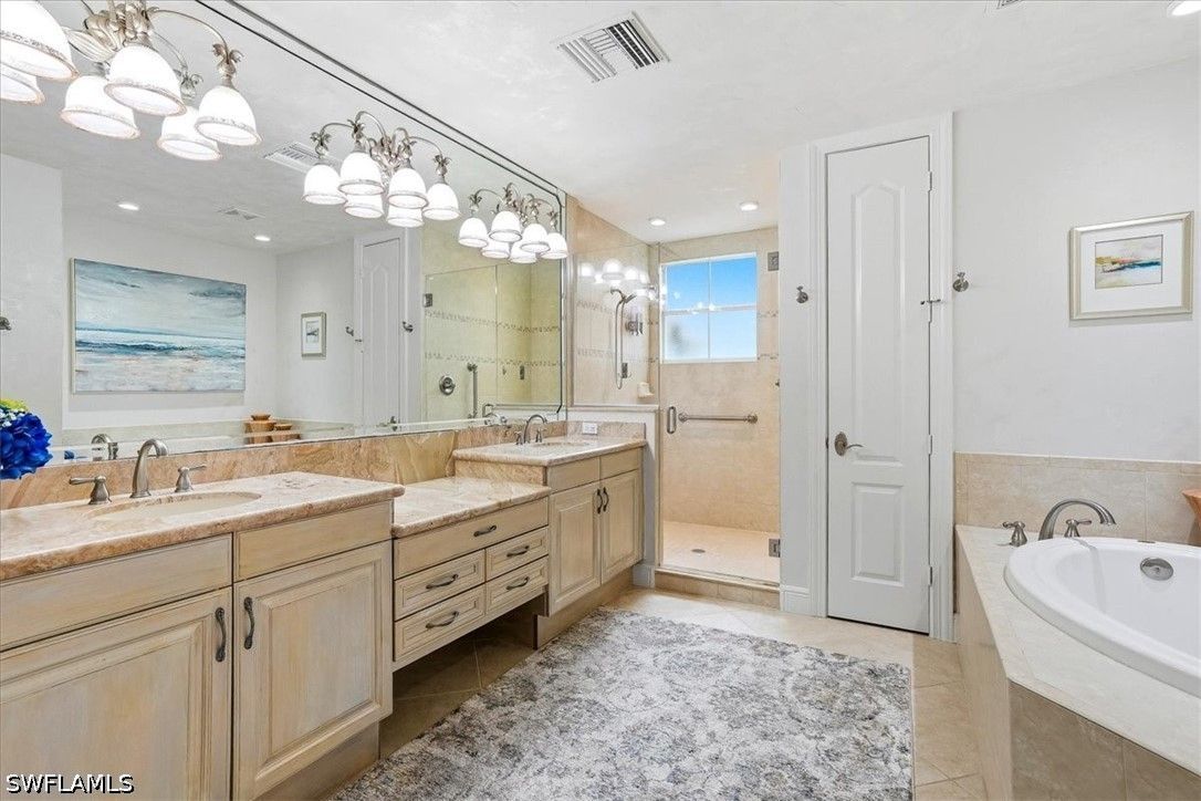 Welcome to 587 Avellino Isles Circle #23101, a beautifully maintained first-floor residence offering an exceptional blend of luxury, comfort, and effortless living in one of Naples’ most sought-after communities, Avellino Isles within the Vineyards. This spacious 3-bedroom + den, 3.5-bath coach home features an open, thoughtfully designed floor plan with refined finishes throughout. The versatile den—appointed with wood-flooring—serves perfectly as a home office, craft room, or formal dining space to suit your lifestyle. The light-filled living area flows seamlessly into a well-appointed newly remodeled kitchen showcasing granite countertops, an abundance of cabinetry and storage, pendant lighting, and newer appliances. A convenient breakfast bar creates an inviting space for both casual dining and entertaining. The primary suite offers a private retreat with generous closet space and a spa-inspired en-suite bath complete with dual vanities, a jetted tub, and a separate shower. Step outside to your screened lanai and take in tranquil partial lake views—an ideal setting for morning coffee or evening relaxation. Additional features include tray ceilings, motorized storm shutters on the lanai, motorized interior blinds on the sliding doors, interior plantation shutters, and an attached two-car garage with an extended driveway providing ample guest parking. Both HVAC systems were replaced in 2020. In 2025, the development completed major renovations with new tile roofs, gutters, downspouts, carriage and coach lights and entrances gates along with a complete paint palette and landscape refresh. Residents enjoy access to resort-style amenities including a clubhouse, pool, spa, fitness center, and beautifully maintained grounds. All of this is just minutes from Naples’ renowned beaches, shopping, dining, and championship golf. Experience the best of Southwest Florida living—schedule your private showing today