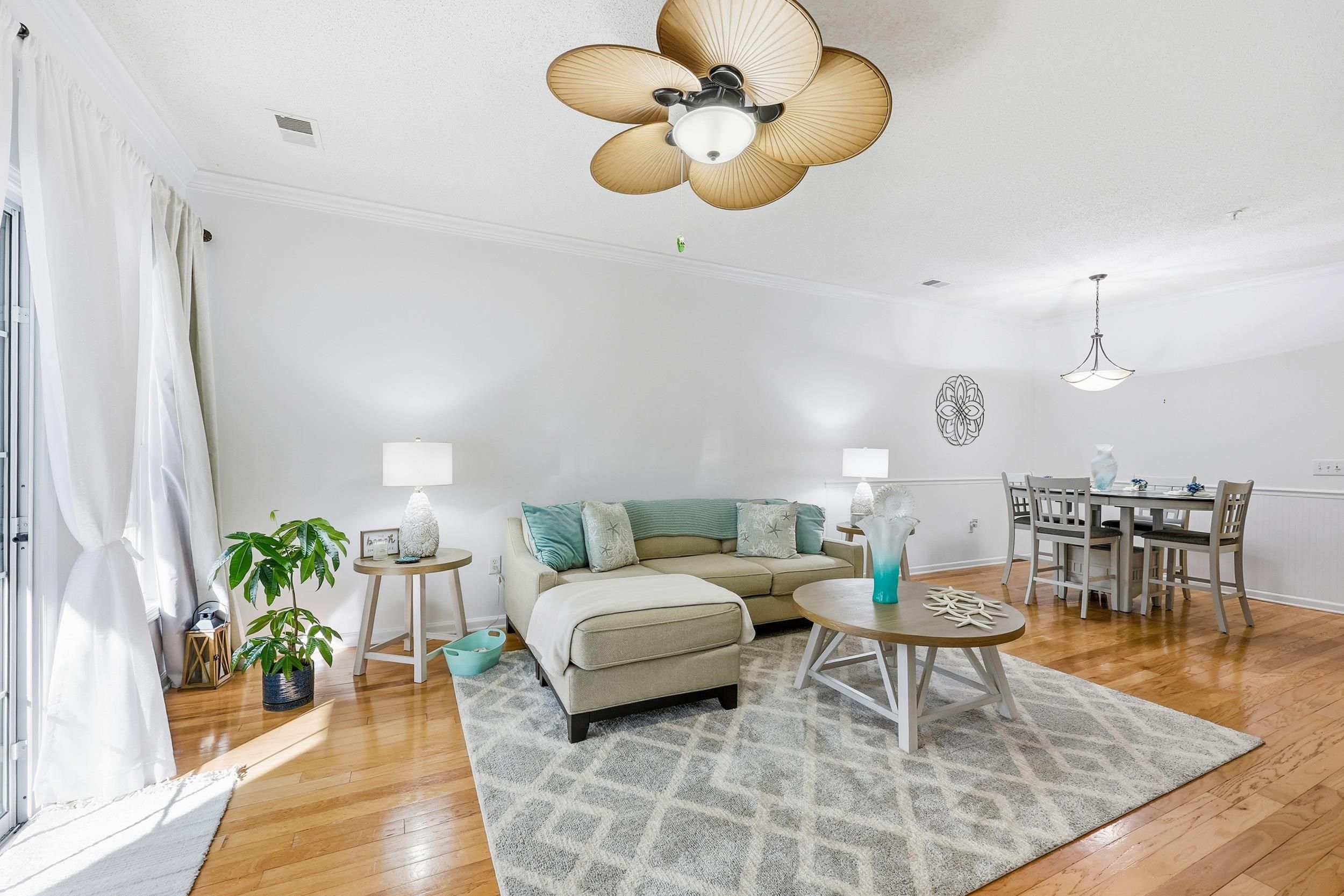 Tucked within the highly desirable south end of the Marcliffe at Blackmoor community, this impeccably maintained 3-bedroom, 2-bath condominium offers refined coastal living in a serene natural setting. A bright, open floor plan is enhanced by crown molding throughout the main living areas, creating a timeless and elegant ambiance. Rich wood flooring and tile extend through the living spaces, while the bedrooms feature brand-new luxury vinyl plank flooring for comfort and style. The residence has been fully repainted, presenting a fresh, move-in-ready interior. The kitchen is both functional and sophisticated, appointed with sleek granite countertops, fully trimmed 42" cabinetry, and classic white appliances, including a bottom-freezer refrigerator for added convenience. The private primary suite is a true retreat, offering a walk-in closet and a spa-inspired ensuite bath with double vanities, a linen closet, and a relaxing garden tub with shower. From the living area, step onto the screened porch and enjoy tranquil wooded views—an ideal setting for morning coffee or evening relaxation surrounded by nature. Significant recent upgrades include a brand-new HVAC system and hot water heater, both installed in 2025, ensuring modern efficiency and peace of mind. Ideally located just minutes from the iconic Murrells Inlet MarshWalk, this home places you close to waterfront dining, live entertainment, and breathtaking coastal scenery. Nearby Huntington Beach State Park offers pristine beaches, scenic trails, and abundant wildlife, while top-rated golf courses, shopping, watersports, and dining complete the ultimate coastal lifestyle. Discover your own place in the sun—where comfort, elegance, and location come together seamlessly. Square footage is approximate and not guaranteed. Buyer responsible for verification.
