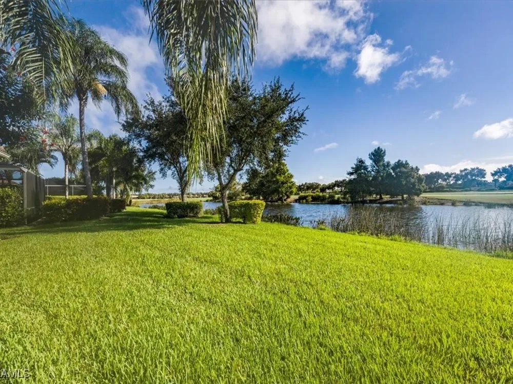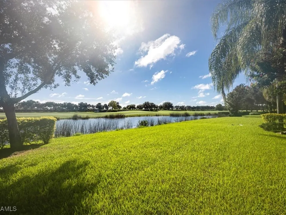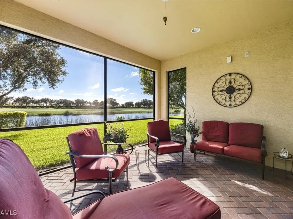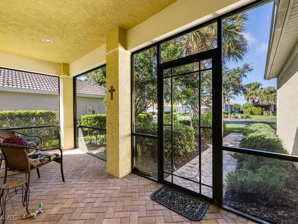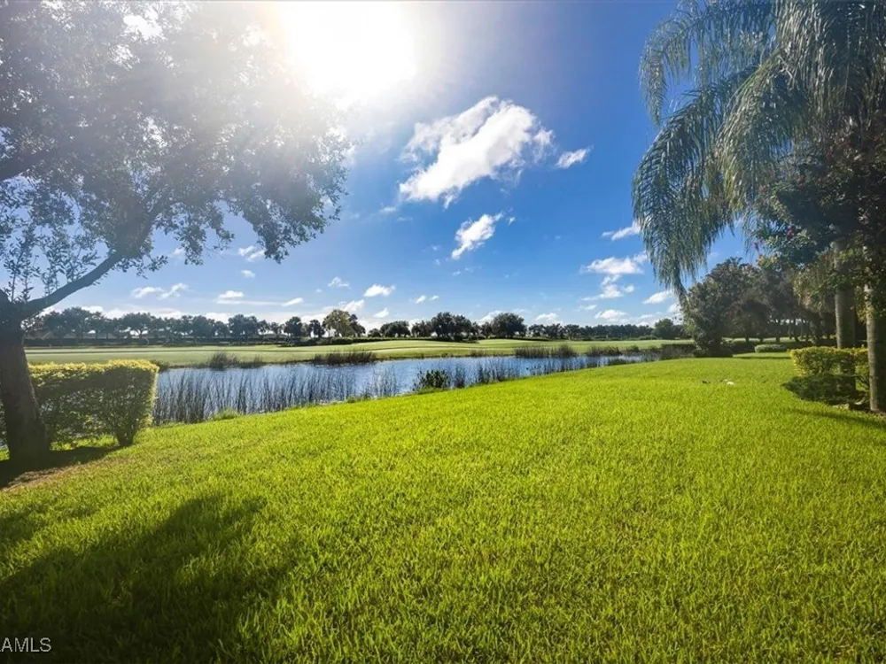 Welcome to this popular “Surrey Crest” 2-bedroom+den, 2-bathroom residence, built in 2011. Step inside and be greeted by a lovely screened in front lanai and a well organized interior floor plan. This home comes with a PAID CDD, UPDATED WATER HEATER 2019, WASHING MACHINE 2019, NEW REFRIDGERATOR 2023 AND NEW DISPOSAL 2024. Premium features include a golf course view facing east; laundry tub; screen door to garage area; upgraded window treatments; and a master closet outside the bathroom area! Enjoy the serene water view, landscaped for privacy from your bedroom window. The garage also features epoxy flooring. This home comes with a 1 year Silver Home Warranty. The Del Webb community offers a wealth of amenities, including a state-of-the-art fitness center, multiple swimming pools, tennis courts, pickleball courts, bocce ball courts, and a beautiful clubhouse. Enjoy walking and biking trails, and participate in various activities and events. Ave Maria offers excellent shopping and dining options, university cultural and sports events, and is just under an hour's drive from Naples' sandy beaches and shopping destinations. Don't miss out on this rare opportunity to own a piece of paradise in this sought-after community.