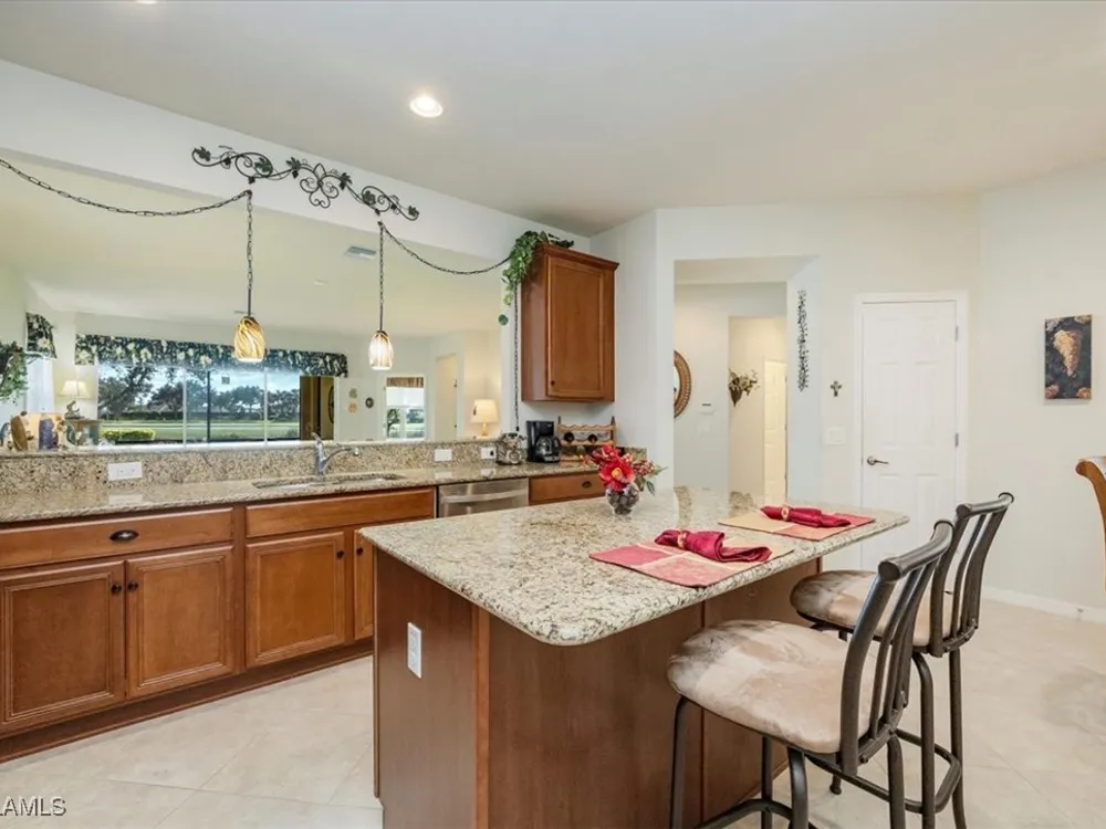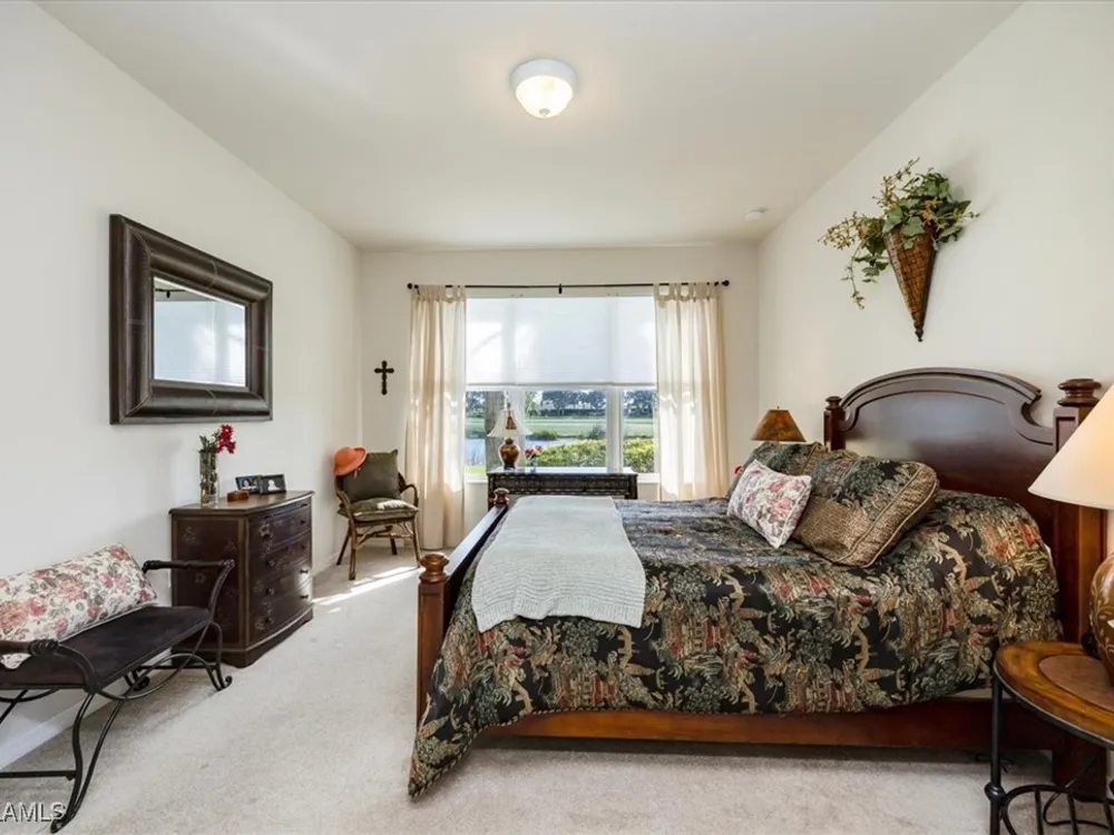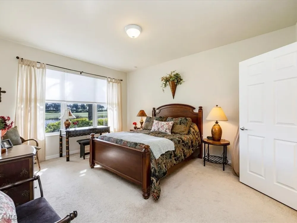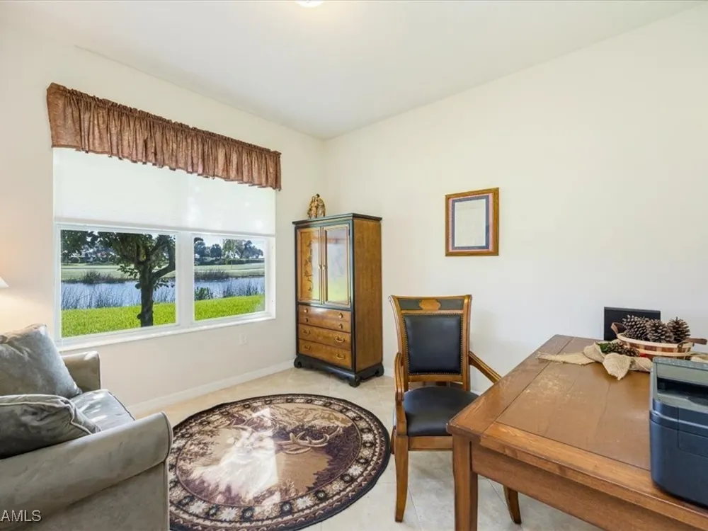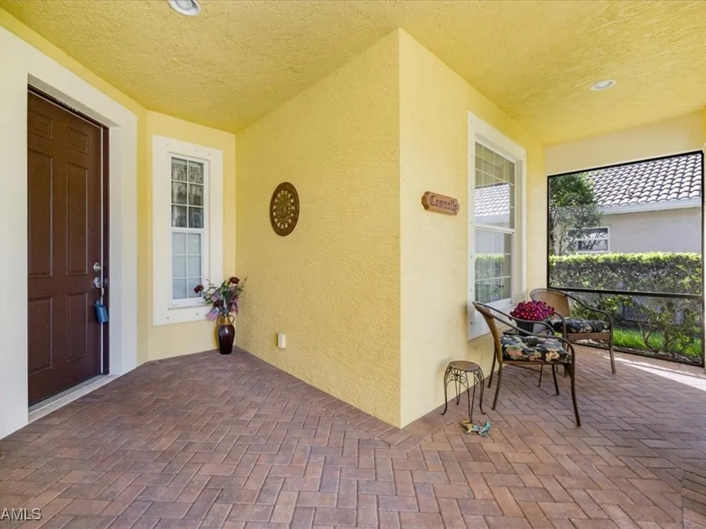 Welcome to this popular “Surrey Crest” 2-bedroom+den, 2-bathroom residence, built in 2011. Step inside and be greeted by a lovely screened in front lanai and a well organized interior floor plan. This home comes with a PAID CDD, UPDATED WATER HEATER 2019, WASHING MACHINE 2019, NEW REFRIDGERATOR 2023 AND NEW DISPOSAL 2024. Premium features include a golf course view facing east; laundry tub; screen door to garage area; upgraded window treatments; and a master closet outside the bathroom area! Enjoy the serene water view, landscaped for privacy from your bedroom window. The garage also features epoxy flooring. This home comes with a 1 year Silver Home Warranty. The Del Webb community offers a wealth of amenities, including a state-of-the-art fitness center, multiple swimming pools, tennis courts, pickleball courts, bocce ball courts, and a beautiful clubhouse. Enjoy walking and biking trails, and participate in various activities and events. Ave Maria offers excellent shopping and dining options, university cultural and sports events, and is just under an hour's drive from Naples' sandy beaches and shopping destinations. Don't miss out on this rare opportunity to own a piece of paradise in this sought-after community.