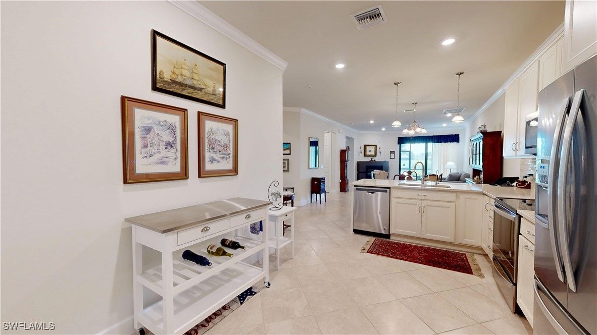 Del Webb Naples, Like New, Immaculately Maintained, “Seagrove” Model Vista Series Villa, Heavily Optioned, Premium Waterside Lot, Stunning Long Water & Golf Views. Two Bedrooms, Den, Large Walk-In-Closet, Two Full Baths, Garage to Kitchen Entry, Breakfast Nook, Formal Dining Area, Screened Front & Rear Lanai, Large Two Car Garage. Options Include; Whole House Glass Impact Doors & Windows, Den Glass French Doors Option, Plumbed Garage Utility Sink, Upgraded 42” Kitchen Cabinets w/Crown, SS Appliances, Quartz Tops, Tile Backsplash, Pendant Lighting, Comfort Height Vanities, Heavy 3/8 Frameless Glass Master Shower, Shower Grab Bar, Porcelain Tile on Diagonal Through Most, Upgraded Interior Doors 8’ & 5 ¼” Baseboards, Garage Floor Epoxy, LED Downlighting, Window Coverings. Property is Social Membership. Truly a Must See. Property Complimented by Oasis Club Resort Style Amenity Center – Resort Pool/Lap Pool/Jacuzzi, Fitness Center, 12 Pickleball Courts /2 Tennis Courts/ 4 Bocce Courts, Large Catering Hall, Golf Sim, Billiards, Movement Rm, Library, Activities Director, and Much More. Semi-Private Championship Style Golf Course, Golf Pro Shop, On-Site Golf Pro, Restaurant. “Come Experience the Beauty that is Ave Maria”.