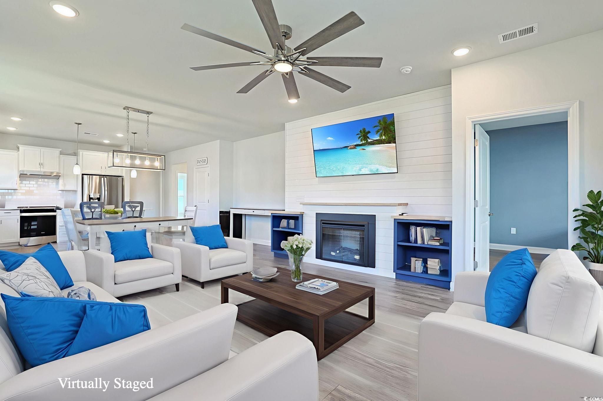 Take a look at this delightful 2 bedroom 2 bath home located in the desirable 55+ Del Webb at the Grand Dunes community. This home features wood look LVP, tile, & carpet flooring, smooth flat ceilings, French door access to the office/day parlor or 3rd bedroom, a large living/dining room combo with recessed lighting along with an upgraded ceiling fan, and showcases access to the delightful screen-in porch. The kitchen is equipped with a stainless steel appliance package that includes a gas range, cabinets topped with crown moulding, granite counter tops, a kitchen island with a breakfast bar, and a practical pantry. The primary bedroom offers a ceiling fan, private access to the primary bath hosting a vanity with dual sinks, a water closet, a linen closet, a walk-in closet, and a deluxe step-in shower. this home is finished with an additional bedroom, a full guest bath, a practical laundry room, and a two car attached garage. This home affords you easy access to the beach and golfing along with all of the other activities and happenings in Myrtle Beach including fun eateries, award winning off-Broadway shows, public fishing piers, and intriguing shopping adventures along the Grand Strand. Conveniently located to your everyday needs, including grocery stores, banks, post offices, medical centers, doctors’ offices, and pharmacies. Check out our state ofthe art 3-D Virtual Tour.