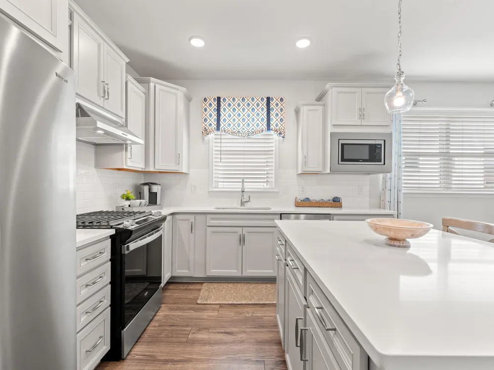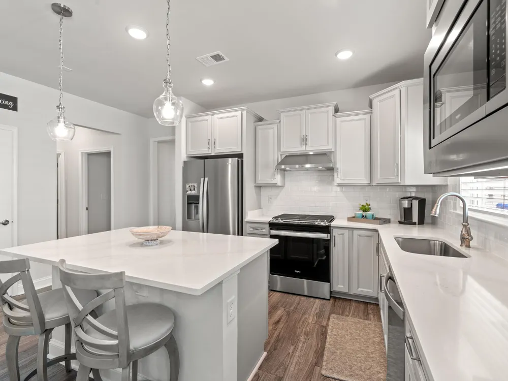 - Bedroom on Main Level, Kitchen Island, Stainless Steel Appliances, Solid Surface Counters