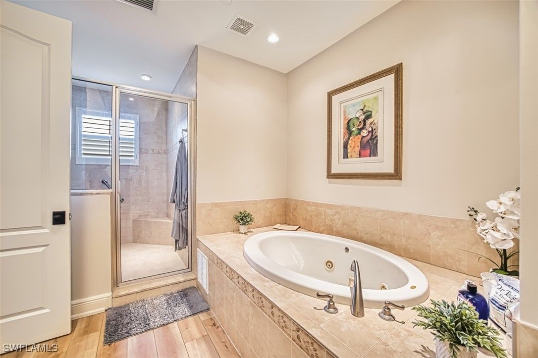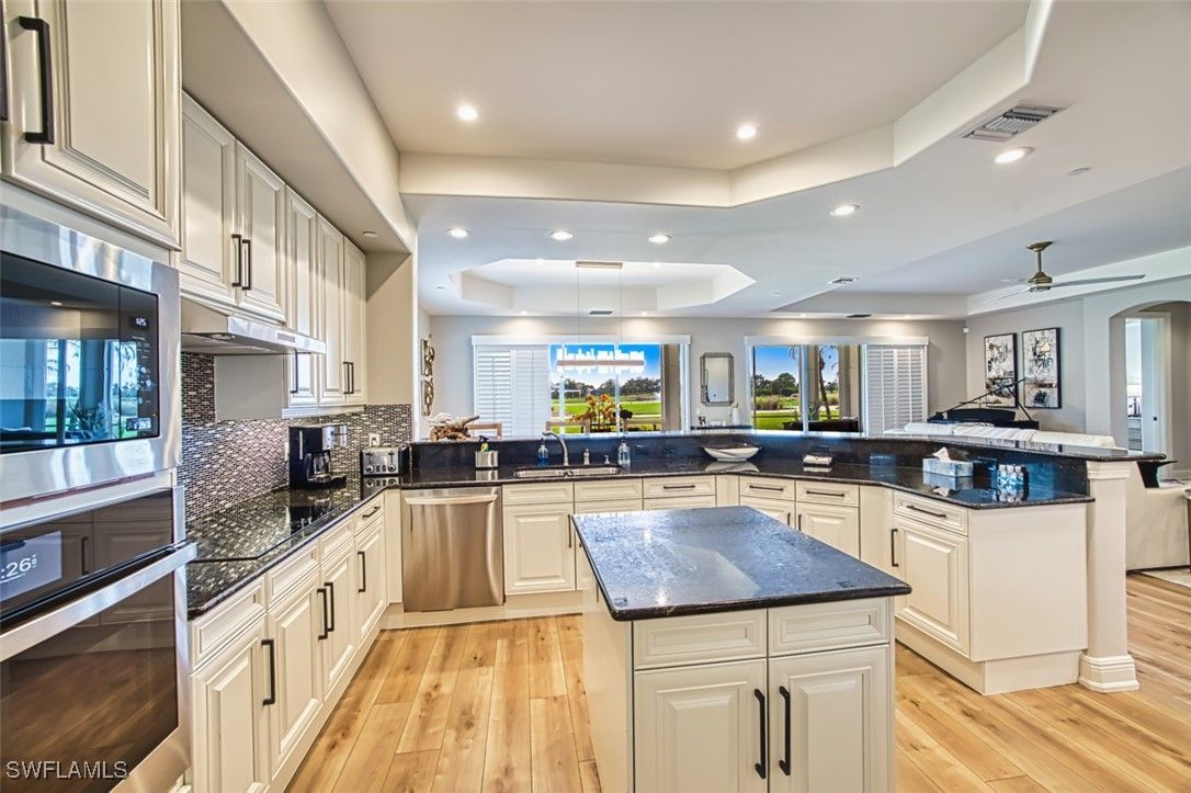 Located within the prestigious Avellino Isles Vineyards community is this turnkey, first floor coach home with a private driveway and attached garage. As you walk into the home, you will notice the $100,000+ in high end updates just recently completed, including new floors, stunning light fixtures, updated appliances and kitchen, new water closets, and electric hurricane roll-down shutters. The home features 2 spacious bedrooms, a den, and 2 1/2 bathrooms. The heart of the home is the beautifully updated kitchen featuring stainless steel appliances, quartz countertops, a breakfast bar, and a separate dining area. The great room opens effortlessly into the screened lanai overlooking the Vineyards golf course, arguably one of the best views in the entire community. The primary suite offers high ceilings, an oversized walk-in closet, and a luxurious master bath featuring dual sinks and a separate tub and shower. Right across the street you will find the community’s exceptional amenities, including the Avellino Isles clubhouse, exercise facility, and resort-style infinity pool and spa. The expansive pool deck, equipped with grills and a bar area, is perfect for hosting gatherings and is included in your HOA fees. This stunningly remodeled home has all the bells and whistles and is in an ideal location within this sought-after community. Additionally, Vineyards offers optional golf and social memberships, including their newly redesigned 18-hole golf courses, resort style pools, clubhouse, restaurant/bar, and award winning exercise and spa.