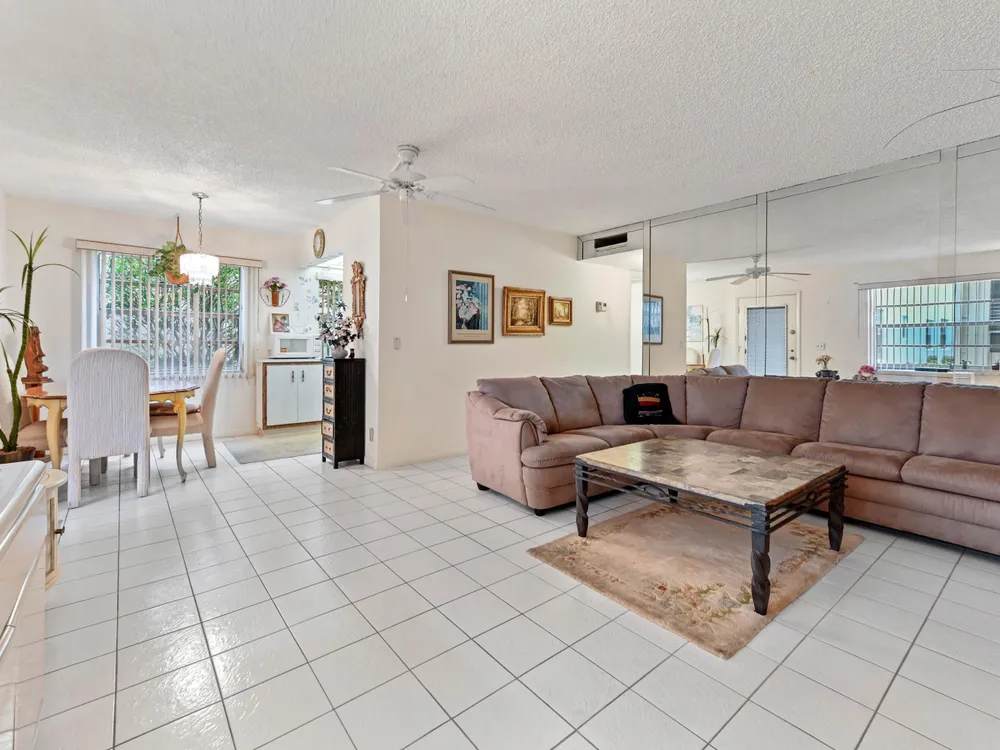 Welcome inside a vibrant first-floor unit located in the wonderful Kings Point 55+ community in Delray Beach, conveniently positioned in Normandy M. Marrying the harmony of residential comfort and community, this handsome property offers a unique and enticing opportunity.Upon entering the well-kept complex, you are met with meticulously maintained landscapes and paved walkways leading to the unit. As you walk through the front door of the lower-level unit, the spacious living room extends a warm greeting, adorned with sleek, modern flooring that effortlessly complements the neutral-toned paint. The large windows facilitate the abundant infusion of natural daylight, creating a lively and bright atmosphere.