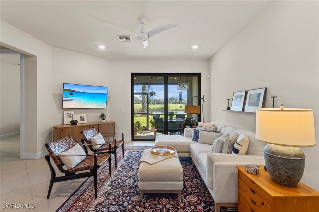 ASSUMABLE LOAN of over $214k @ 2.25% and a PREMIUM LOT set this exceptional villa apart in the sought-after 55+ Del Webb Naples community. This impeccably maintained SEAGROVE floor plan offers breathtaking LAKE AND GOLF COURSE VIEWS, overlooking the 2nd fairway of Panther Run Golf Course, enjoyed from the SCREENED-IN LANAI complete with a convenient LANAI ROLLER SHADE. Designed for both comfort and style, this 2-BEDROOM PLUS DEN, 2-BATH home features TILE FLOORING LAID ON THE DIAGONAL throughout the main living areas, PLANTATION SHUTTERS, and a bright, well-appointed kitchen with GRANITE COUNTERTOPS and UPGRADED CABINETRY. CEILING FANS, CUSTOM LIGHTING, a GLASS FRONT DOOR, and a SCREENED-IN FRONT LANAI create a warm and welcoming atmosphere from the moment you arrive. There are over with OVER $7,000 IN UPGRADES AFTER CLOSING. The spacious PRIMARY SUITE serves as a peaceful retreat, offering DUAL VANITIES, a WALK-IN SHOWER ENCLOSURE, and GENEROUS CLOSET SPACE. Enjoy added peace of mind with IMPACT RESISTANT WINDOWS throughout the home. The 2 car GARAGE is equally impressive, featuring an INSULATED GARAGE DOOR, EPOXY FLOOR, OVERHEAD STORAGE RACKS, and a GENERATOR JUNCTION BOX. This home comes with the SOCIAL MEMBERSHIP, but take note GOLF LOVERS, Panther Run Golf Club offers optional MEMBERSHIPS with premium golf experiences just steps from your backyard. In Del Webb Naples, you’ll enjoy WORLD-CLASS AMENITIES that rival luxury resorts: dine at the Rusty Putter Restaurant, soak in the RESORT-STYLE or LAP POOLS, break a sweat in the state-of-the-art FITNESS CENTER, and play your way through PICKLEBALL, TENNIS, bocce, billiards - even a top-tier GOLF SIMULATOR! Need groceries, church, or a bite to eat? Just hop in your golf cart and cruise into town - Publix and the heart of Ave Maria are just minutes away. This isn’t just a home - it’s a LIFESTYLE UPGRADE in one of Southwest Florida’s most vibrant 55+ communities. Don’t miss your chance to live where fun, fitness, and friendships flourish year-round!