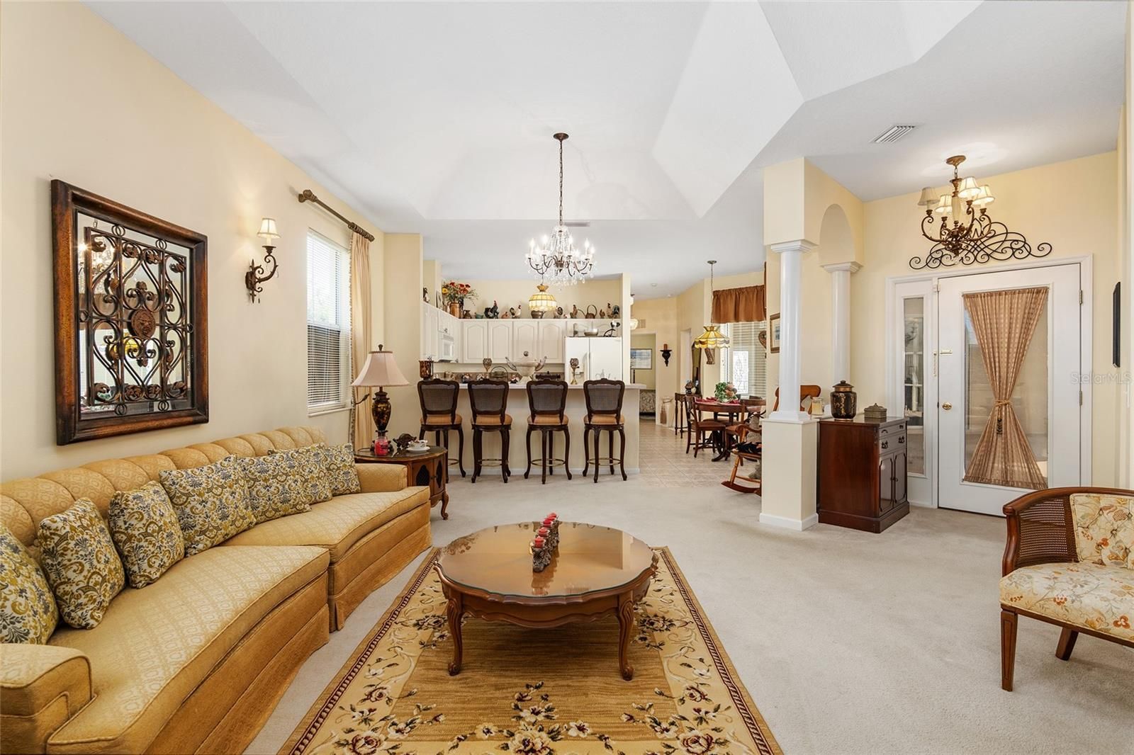 Rare Ponytail Model with In-Law Suite in Ocala Palms! Discover this hard-to-find Ponytail model in the highly sought-after, gated 55+ golf course community of Ocala Palms. This spacious 3-bedroom, 3-bathroom home offers an ideal layout, including a spacious 2 car garage, private in-law suite complete with a full bathroom, walk-in shower, and walk-in closet—perfect for guests or extended family. The large open kitchen seamlessly flows into the expansive living room, featuring an elegant tray ceiling—ideal for entertaining. The huge master suite boasts sliding doors for easy outdoor access, a generously sized walk-in closet, and a luxurious en-suite bathroom with double sinks, a walk-in shower, and a separate soaking tub for ultimate relaxation. Additional highlights include: Big laundry room with sink and extra storage, Washer and dryer convey, And new spa/pool pump installed in 2024. Enjoy the resort-style amenities and golf course living that Ocala Palms has to offer. Don’t miss this rare opportunity—schedule your showing today!