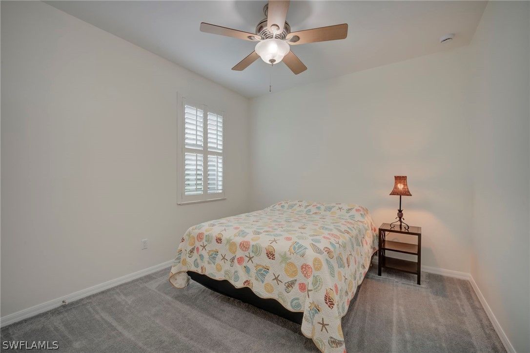Welcome to 5894 Plymouth Place in Del Webb Naples at Ave Maria, a thoughtfully designed home in a GATED 55+ COMMUNITY known for its vibrant lifestyle and exceptional amenities. This residence offers 3 BR + DEN/3 FULL BATHS, and 2,338 SQFT of living space, along with a 2-CAR GARAGE + ADDITIONAL GOLF CART BAY for added convenience. The SPLIT FLOOR PLAN places bedrooms in separate corners of the home, creating comfort and privacy. In addition to the spacious primary suite, a SECONDARY BEDROOM INCLUDES ITS OWN EN-SUITE BATHROOM, making it ideal for guests or multi-purpose use. The main living area includes a LARGE GREAT ROOM with a DINING SPACE, complemented by an additional CASUAL DINING AREA IN THE KITCHEN. The REMODELED KITCHEN is equipped with a DOUBLE OVEN, a EXTRA WIDE 48-INCH REFRIGERATOR/FREEZER, and NUMEROUS PULL-OUT DRAWERS AND ORGANIZERS, enhancing functionality and storage, and ALASKA WHITE GRANITE COUNTERTOPS, enhancing esthetics. TWO SLIDING DOORS and windows bring in natural light while framing pleasant VIEWS OF THE POOL AND GOLF COURSE OVERLOOKING THE 1ST HOLE, creating a seamless connection between indoor and outdoor living. Outdoor living is enhanced by an OVERSIZED LANAI OF APPROXIMATELY 330 SQFT , complete with METAL SHUTTERS that can be closed to help protect outdoor furnishings during storms. The private pool and golf course setting provide a relaxing backdrop for everyday enjoyment or entertaining. GOLF MEMBERSHIPS ARE AVAILABLE at the golf club, offering access to additional recreational opportunities. Residents of Del Webb Naples enjoy access to TWO STATE-OF-THE-ART CLUBHOUSES, RESORT-STYLE AND LAP POOLS, FITNESS FACILITIES, TENNIS, PICKLEBALL, BOCCE BALL, CLUBS, and ORGANIZED ACTIVITIES, all within the dynamic master-planned community of Ave Maria, which also features shopping, dining, parks, recreational paths, and year-round events. Discover comfortable living paired with an active community environment. Ave Maria: where community meets paradise.