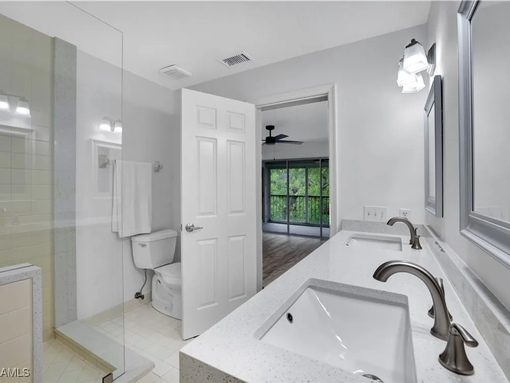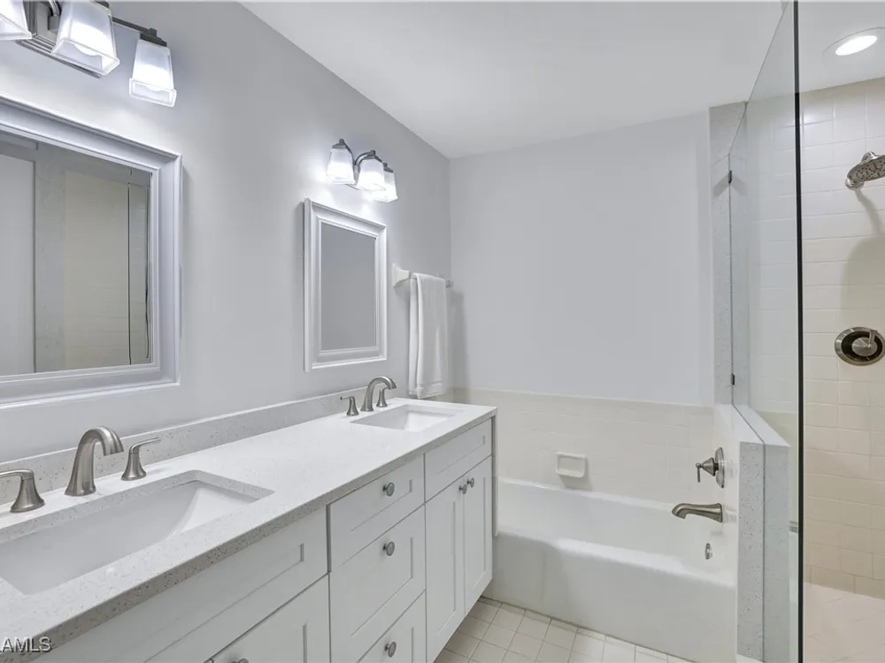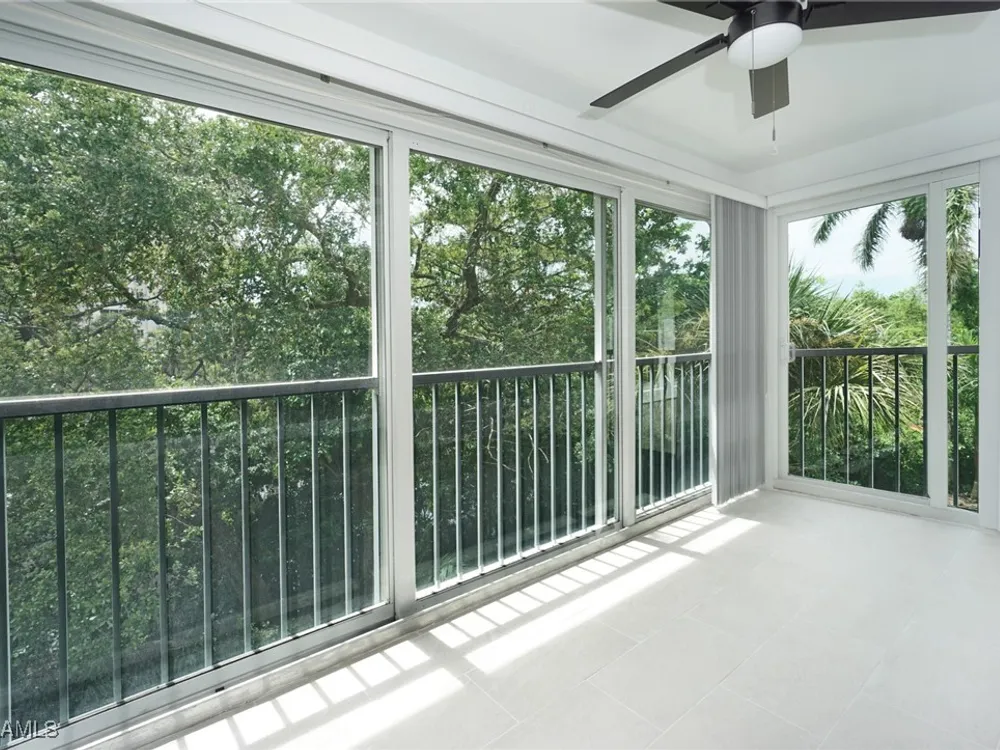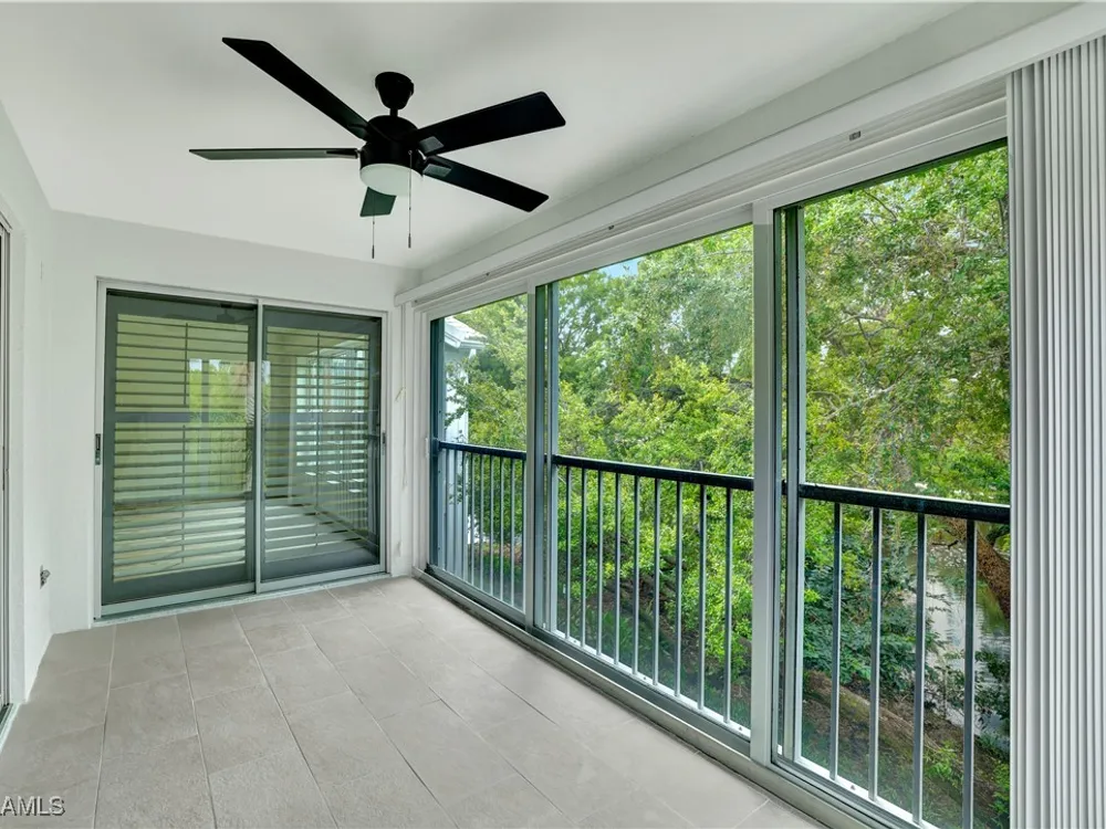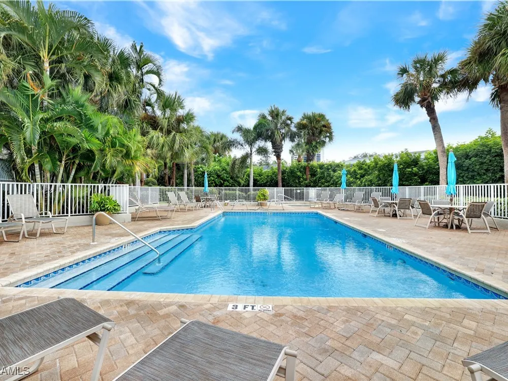 Lovely Bright southern exposure second floor unit enjoys lake and lush tropical landscape views. Tastefully refreshed decor throughout includes new paint, LVP light wood flooring, ceiling fans, closets , baths, newer appliances and kitchen backsplash . Opportunity to own in this low density low rise coastal community. This is a spacious, 2 bedroom plus den with 2 baths with an enclosed lanai that provides year round use. Chanteclair Maisonettes is at the south end of Pelican Bay close to Artis-Naples and Upscale Waterside Shops. This residence is only steps away to the community heated pool. Located close to the tram for beach access. Pelican Bay amenities include three miles of beachfront, two private beachfront pavilions, kayaks and canoes for resident use, miles of walking paths, fitness center, tennis. Located between upscale Waterside shops, restaurants and the Ritz Carlton Beach Resort.
