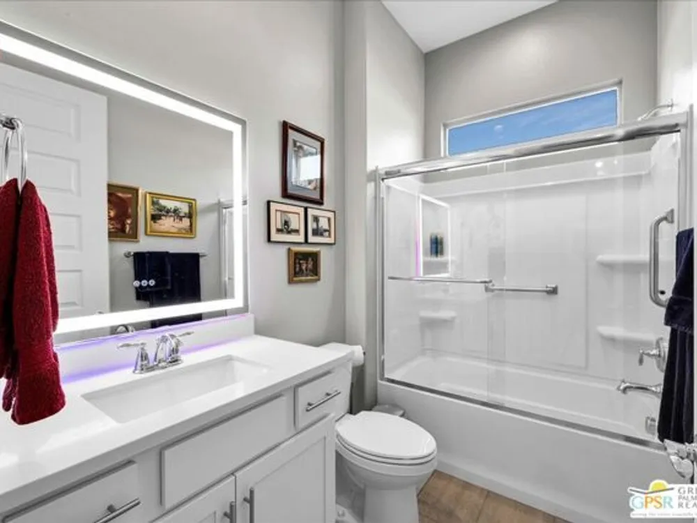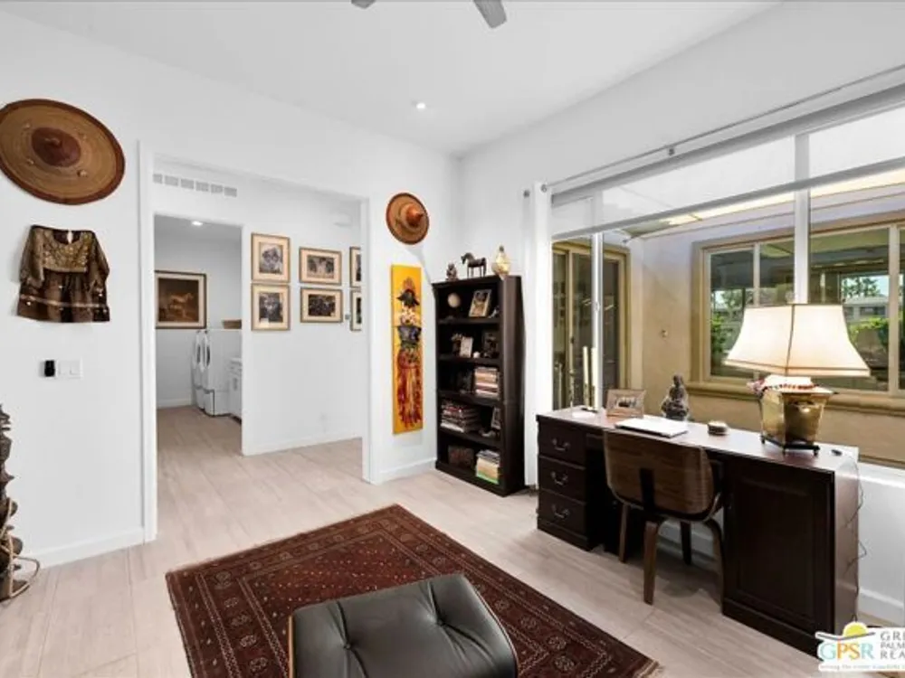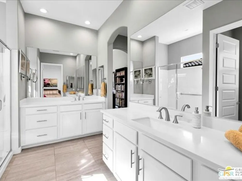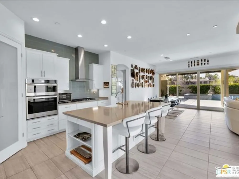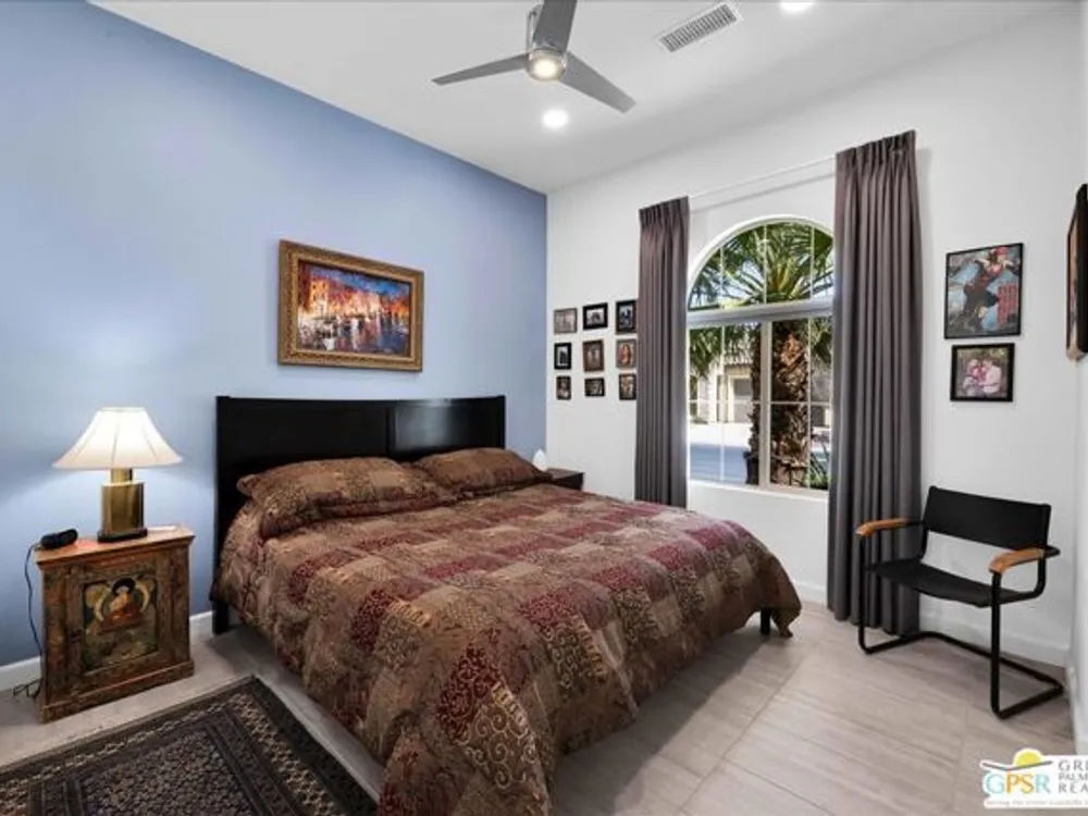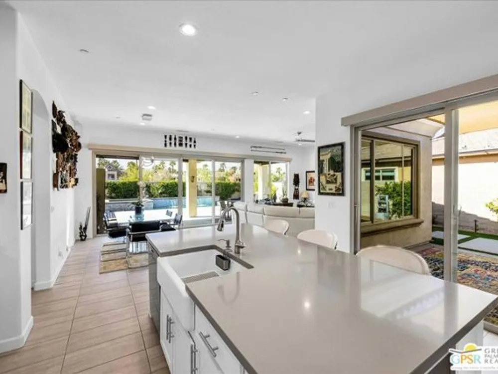 Experience the pinnacle of luxury and modern convenience in this stunning home, nestled within the prestigious 55+ community of Del Webb Rancho Mirage. Situated in Phase 2, this exquisite Spanish-inspired HAVEN floorplan showcases unobstructed south and west mountain views, offering a breathtaking backdrop for daily living and entertaining. Step through the custom iron and glass entry door into an ambiance of sophistication, where an elegant accent tile wall sets the tone. The seamless flow of 12"x24" porcelain tile flooring, an arch package, and modern six-paneled doors create a refined aesthetic. A unique center courtyard, perfectly positioned adjacent to the kitchen, invites moments of tranquility and seamless indoor-outdoor living. Designed for culinary excellence, the chef's kitchen features an expansive EXECUTIVE ISLAND, sleek 42" upper cabinetry, a stylish FARM SINK, quartz countertops, and a custom glass tile backsplash extending to the ceiling. Premium appliances, including a Sub-Zero glass-door refrigerator and a MIELE dishwasher, and spacious walk-in pantry provides ample storage. The open-concept design is highlighted by a DOUBLE CENTER-OPENING SLIDING DOOR, seamlessly blending indoor and outdoor spaces. Step onto the full-length covered patio and immerse yourself in resort-style living. The backyard oasis features a sparkling pool and spa, a stylish pergola, a cozy fire pit, a fully equipped grilling station, roller shades for added comfort, and a serene water featurecreating the perfect setting for unforgettable gatherings. The Owner's Suite is a retreat of its own, boasting sound-insulating windows, motorized drapes, and mesmerizing mountain views. The spa-like ensuite offers dual vanities, a spacious walk-in shower with a built-in bench, and an oversized custom closet. Smart home features, including voice and app-controlled lighting, sound, and more, allow you to set the perfect ambiance with ease. The oversized 2.5-car garage comes complete with an ENERGY UPGRADE, custom storage solutions, and non-slip floor tiling. Plus, with a Tesla Solar Lease at just $112/month, energy savings are built right in. Beyond the home, the Del Webb Rancho Mirage community offers a world-class lifestyle with a state-of-the-art clubhouse, fitness center, resort-style pool and spa, tennis courts, pickleball, and so much more. This is more than a homeit's a luxurious retreat designed for effortless living. Don't miss the opportunity to make it yours!