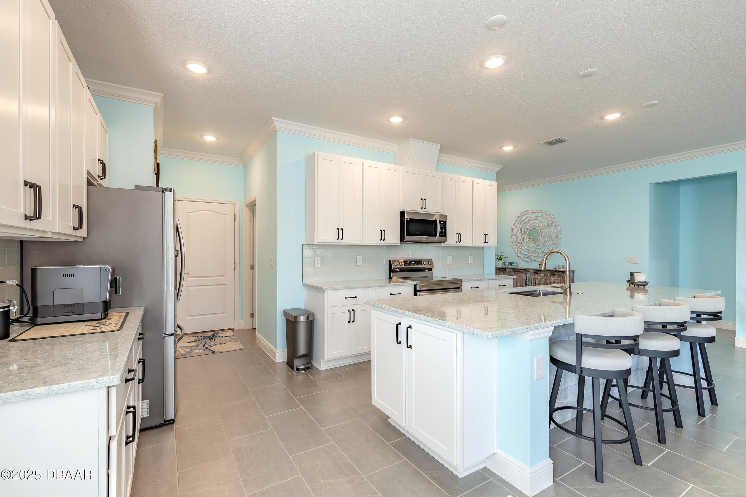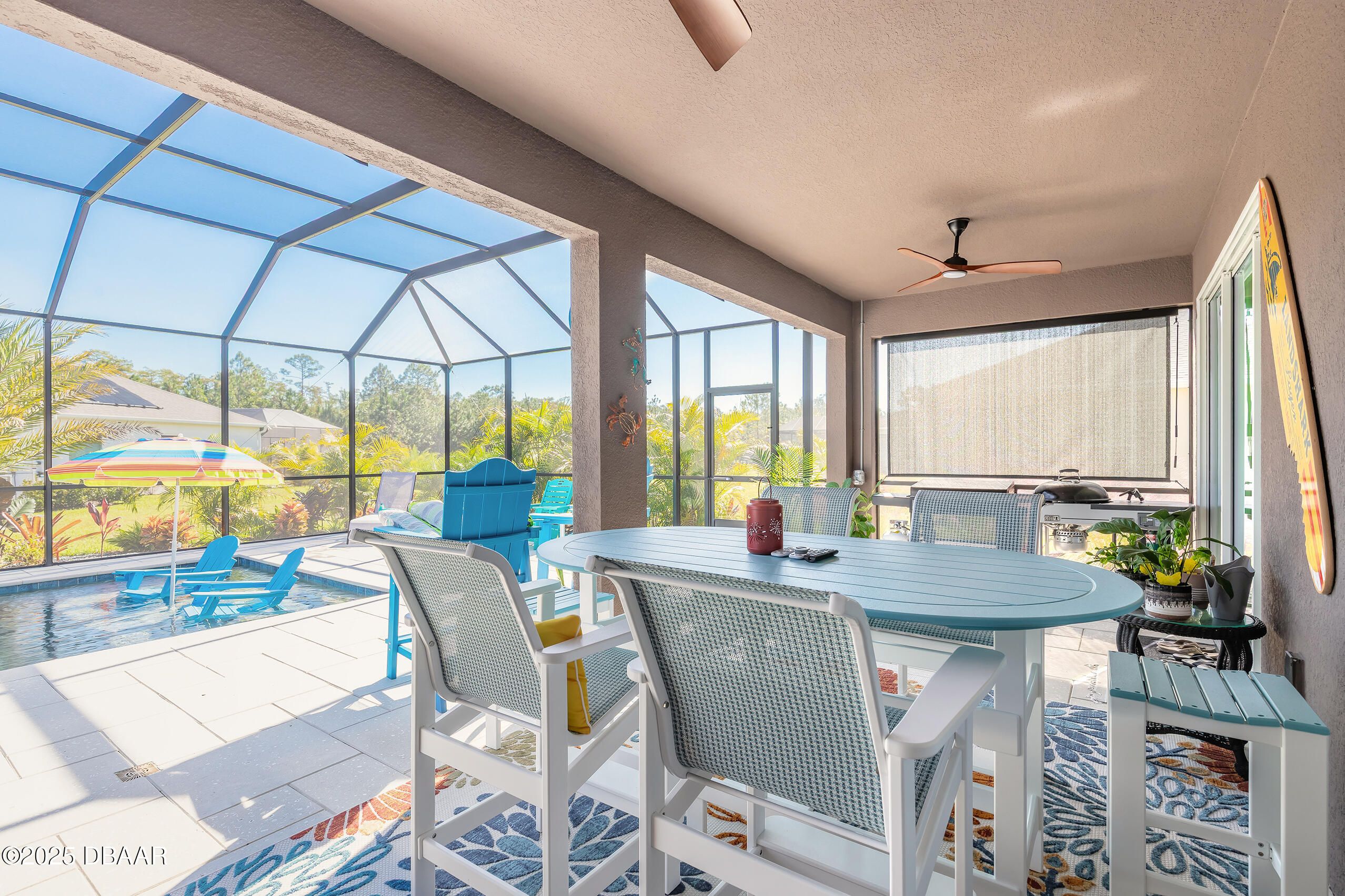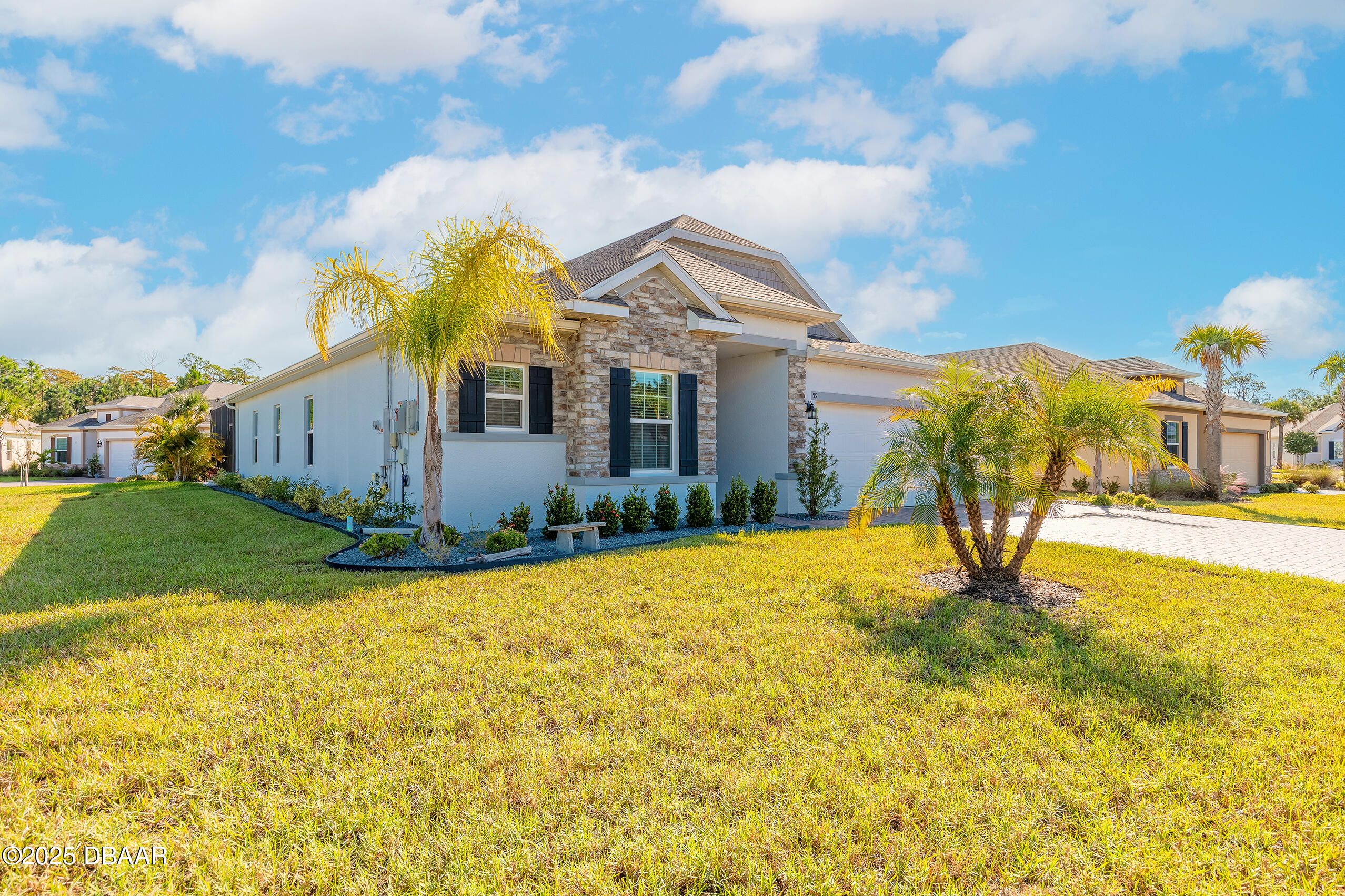 Say ''Hello'' to carefree living in the highly desirable 55+ community of Huntington Green at Hunters Ridge, in Ormond Beach, Florida! This 2 year old Maronda built home with expansive 9 ft. ceilings has 3 bedrooms and 2 bathrooms, a highly sought after 3 car garage with overhead storage space, and a heated Salt Water POOL with cool deck pavers that never get hot! The premium solar panels on the roof ($25,000 cost) keep the electricity bill down to an amazingly low price of $33 a month!!! White kitchen cabinets with abundant storage, stainless appliances, new Quartz countertops in the kitchen and the bathrooms, plus new sinks and faucets. Don't miss the cool feature wall in the living room made out of reclaimed wood, ship lap in the bedroom and wainscoting in the bathroom. Feel a cool tropical vibe when you step outside with the luxurious landscaping of palm trees, shrubs, rock beds and paver walkway...it's like your own private resort! HOA dues cover mowing, irrigation, cable and internet plus access to 3 community pools, gyms and the clubhouse.