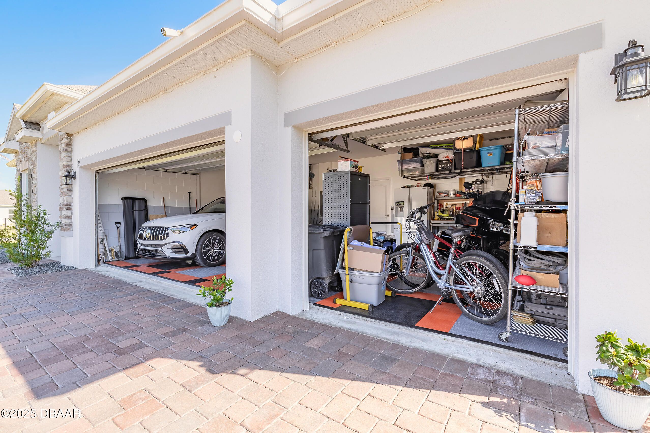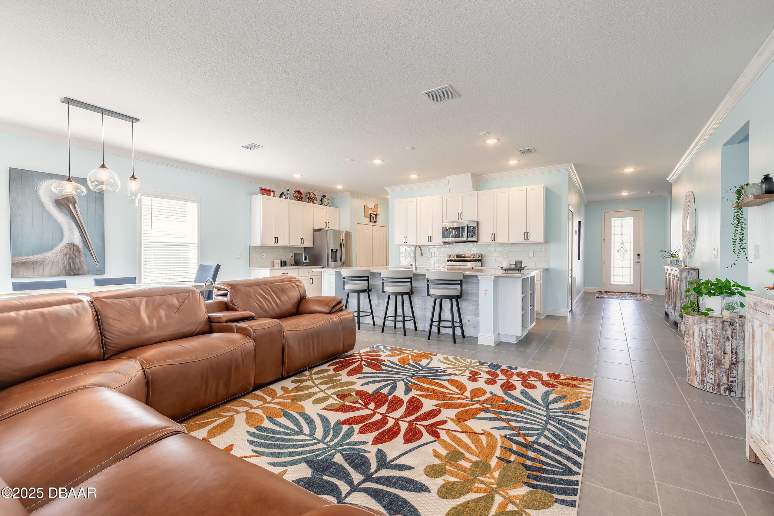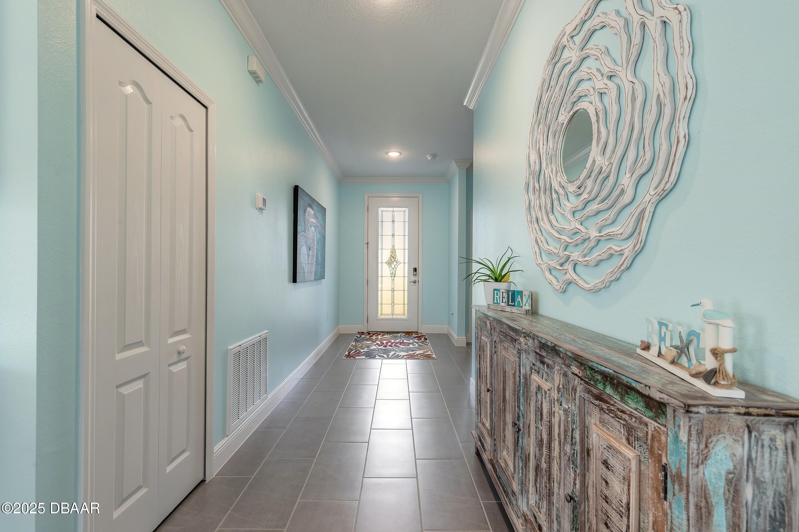 Say ''Hello'' to carefree living in the highly desirable 55+ community of Huntington Green at Hunters Ridge, in Ormond Beach, Florida! This 2 year old Maronda built home with expansive 9 ft. ceilings has 3 bedrooms and 2 bathrooms, a highly sought after 3 car garage with overhead storage space, and a heated Salt Water POOL with cool deck pavers that never get hot! The premium solar panels on the roof ($25,000 cost) keep the electricity bill down to an amazingly low price of $33 a month!!! White kitchen cabinets with abundant storage, stainless appliances, new Quartz countertops in the kitchen and the bathrooms, plus new sinks and faucets. Don't miss the cool feature wall in the living room made out of reclaimed wood, ship lap in the bedroom and wainscoting in the bathroom. Feel a cool tropical vibe when you step outside with the luxurious landscaping of palm trees, shrubs, rock beds and paver walkway...it's like your own private resort! HOA dues cover mowing, irrigation, cable and internet plus access to 3 community pools, gyms and the clubhouse.