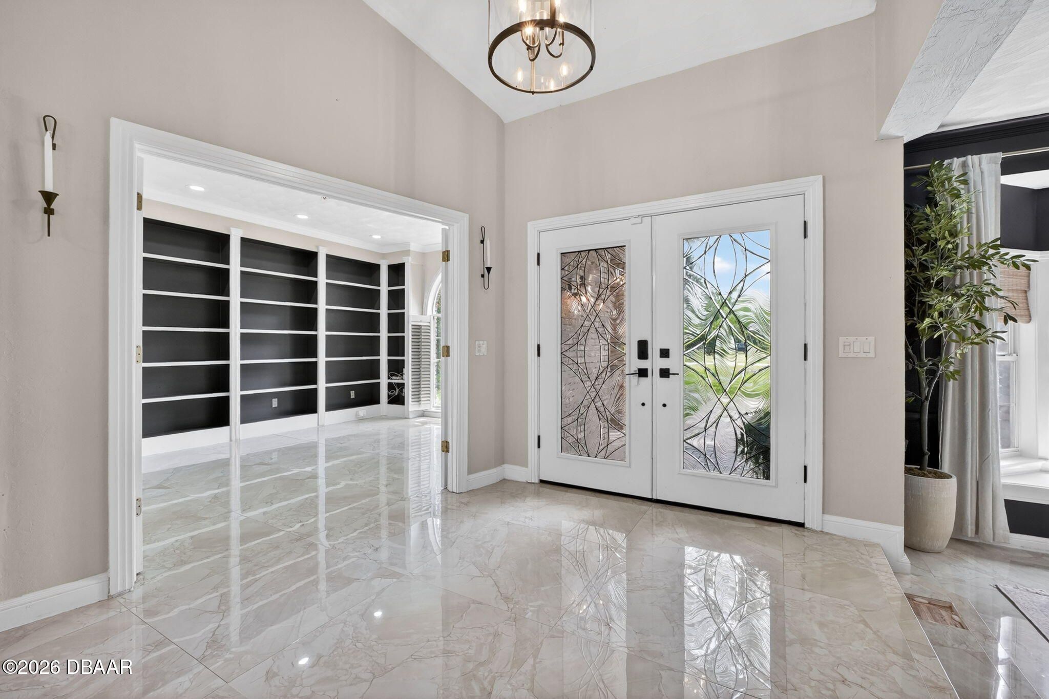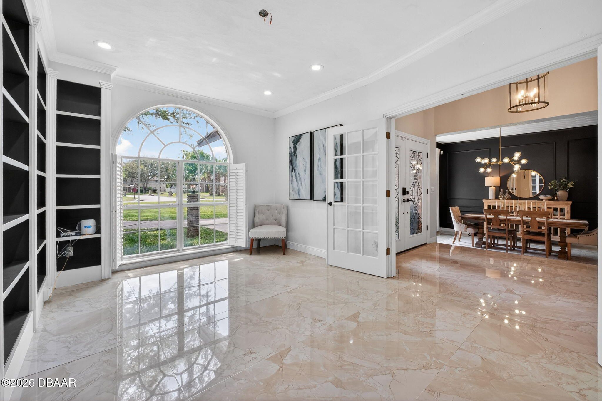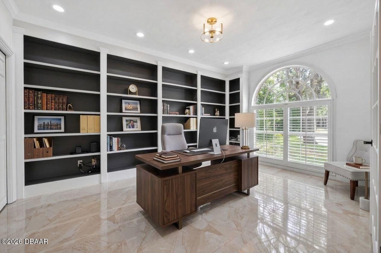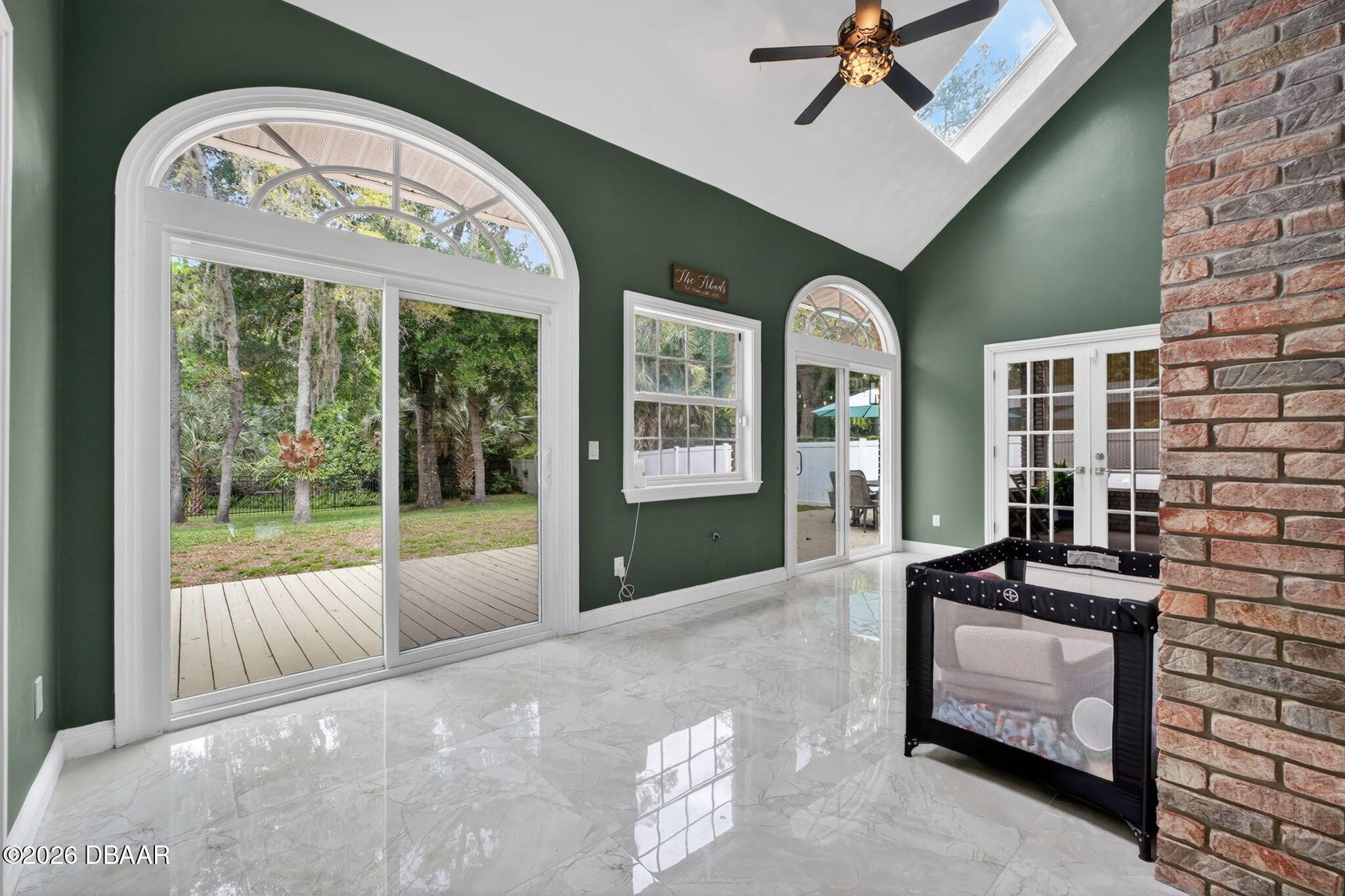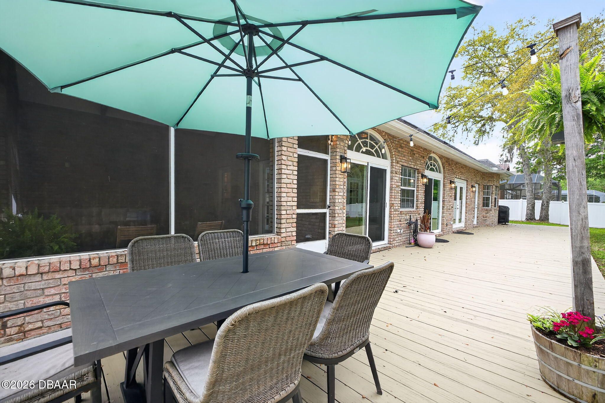Stunning Custom Brick Home on Half-Acre Preserve Lot Nestled on a spacious half-acre homesite with peaceful preserve views, this beautifully crafted custom brick home offers the perfect combination of privacy, space, and upscale features. With 4 bedrooms, 2.5 bathrooms, and a versatile bonus room, there is plenty of room to live, work, and entertain. At the center of the home, the thoughtfully designed kitchen features granite countertops, stainless steel appliances, a large center island, and a cozy breakfast nook--ideal for everyday living. The adjoining great room makes a striking impression with its soaring cathedral ceilings, classic brick wood-burning fireplace, and expansive Italian porcelain tile flooring. The oversized primary suite serves as a private retreat, complete with luxury vinyl plank flooring, dual walk-in closets, and a bay window overlooking the tranquil backyard. Stunning Custom Brick Home on Half-Acre Preserve Lot Nestled on a spacious half-acre homesite with peaceful preserve views, this beautifully crafted custom brick home offers the perfect combination of privacy, space, and upscale features. With 4 bedrooms, 2.5 bathrooms, and a versatile bonus room, there is plenty of room to live, work, and entertain. At the center of the home, the thoughtfully designed kitchen features granite countertops, stainless steel appliances, a large center island, and a cozy breakfast nook--ideal for everyday living. The adjoining great room makes a striking impression with its soaring cathedral ceilings, classic brick wood-burning fireplace, and expansive Italian porcelain tile flooring. The oversized primary suite serves as a private retreat, complete with luxury vinyl plank flooring, dual walk-in closets, and a bay window overlooking the tranquil backyard. The fourth bedroom, currently set up as an office, includes custom built-ins and French doors, offering both functionality and style. Upstairs, a generously sized 20x18 bonus room provides endless flexibility--perfect for a media room, playroom, guest space, or potential fifth bedroom. The formal dining room adds charm with its bay window and built-in window seating, creating a warm and inviting space for gatherings. Significant updates add value and peace of mind, including solar panels installed in 2020, a new roof in 2020, updated exterior doors and sliders, and a new A/C system in 2021. Outdoor living is just as impressive, with a large deck overlooking the expansive backyard--ideal for entertaining or relaxing. A separate screened lanai offers a quiet space to enjoy the natural surroundings year-round, with plenty of room to design and build your dream pool. Located within the gated community of Breakaway Trails, residents enjoy convenient access to I-95 and I-4, as well as close proximity to shopping, dining, medical facilities, and the beautiful beaches the area is known for. All information is deemed to be accurate but cannot be guaranteed.