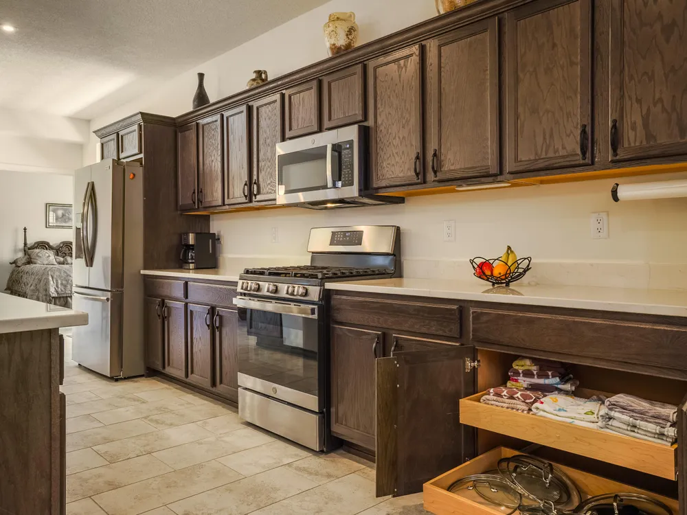 - Breakfast Bar, Dual Sinks, Great Room, Home Office, Kitchen Island, Main Level Primary, Pantry, Separate Shower, Utility Room, Walk-In Closet(s)