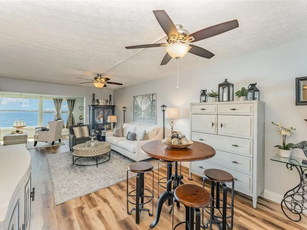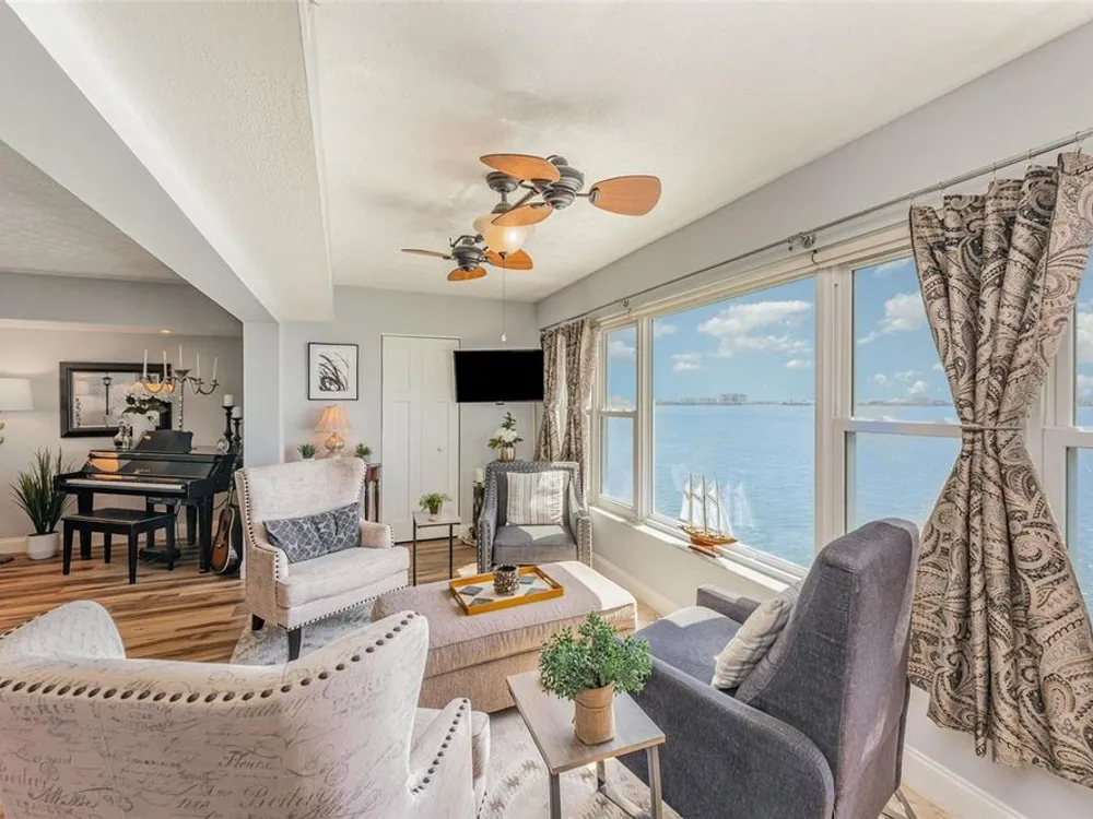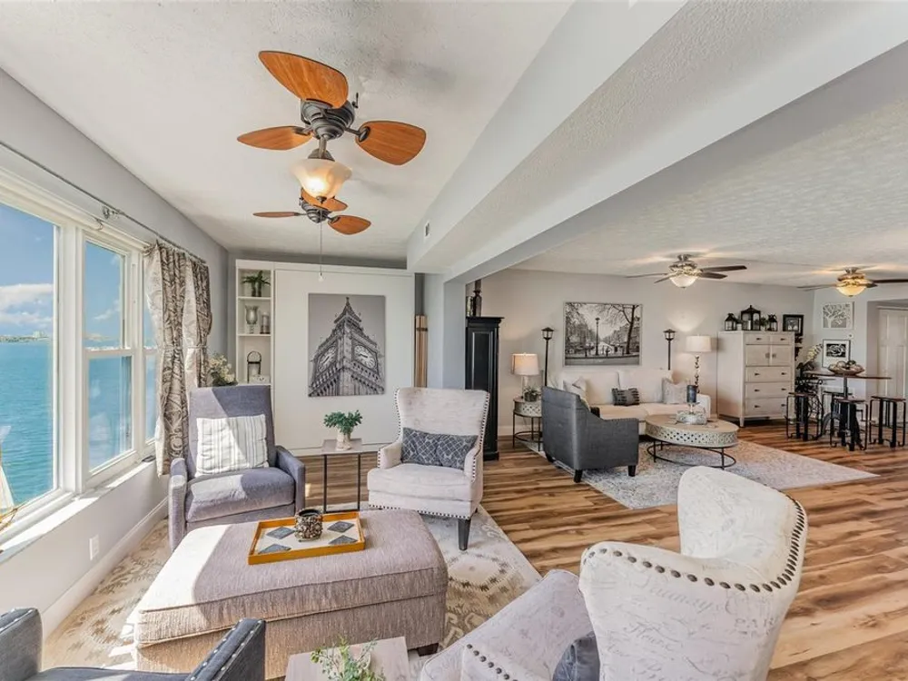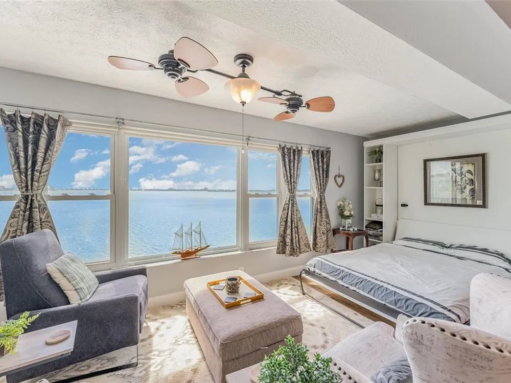 Top-Floor Waterfront Living in the Heart of the Gulfport Waterfront District! From the moment you step inside, you’re greeted with sweeping, unobstructed views of Boca Ciega Bay from this top-floor condo located directly within the Gulfport Waterfront District. Walls of windows fill the space with natural light, creating a serene backdrop of sparkling water and unforgettable sunsets. The open layout offers generous living and dining areas, along with a well-equipped kitchen featuring ample counter space, appliances, and plenty of storage. A spacious bedroom provides a peaceful retreat, while the sunroom offers even more flexibility—just pull down the queen-size Murphy bed to instantly create a second bedroom for guests with quite a view! All furnishings and décor are available for negotiation with the sale, offering a move-in-ready opportunity. Milestone engineering has been completed, and everything checked out beautifully, providing added peace of mind for the new owner. Enjoy the best of Gulfport living—just steps from the beach recreation area, boutique shops, art galleries, and local restaurants that make the Waterfront District so beloved. Outdoor adventures also await at nearby Clam Bayou Nature Preserve, where you can kayak, hike, or simply soak in the natural beauty. Blending top-floor privacy, breathtaking bayfront views, and Gulfport’s vibrant lifestyle, this residence offers an ideal opportunity for full-time living or a seasonal escape.