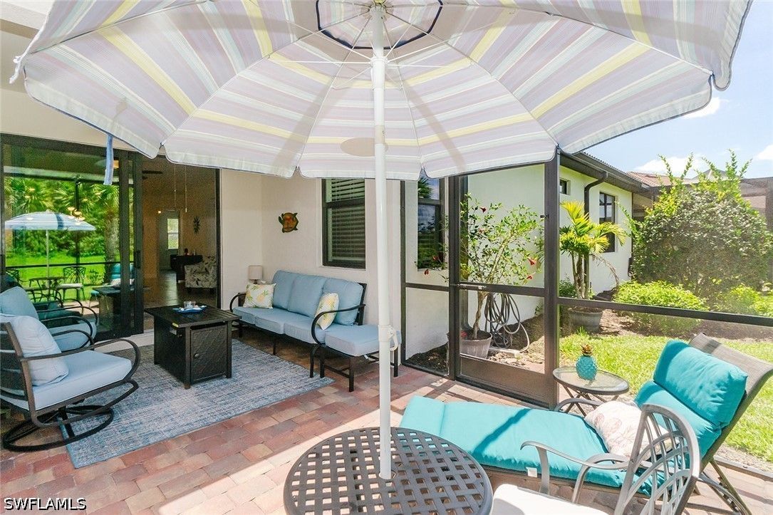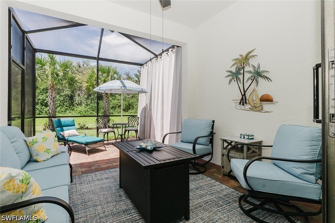 UNMATCHED SUNSET PRESERVE LOT • EXTENDED LANAI • IMPACT GLASS • TILE THROUGHOUT Stop looking—this is one of the best values on a private preserve lot in Del Webb Naples. 2BR + den / 2BA / 2-car garage with western rear exposure delivering unobstructed sunset views every night. This home hits where it matters: tile floors throughout (no carpet), impact glass, and a seamless open layout that lives bigger than expected. The space flows straight out to a screened lanai PLUS extended screened in paver patio—giving you true indoor-outdoor living with privacy you won’t find on other lots. The kitchen is open with 42" white cabinets and pull out shelves in base cabinets. Large breakfast bar with quartz countertops and spacious dining area as well. The den adds flexibility for office or overflow guests with glass french doors. Guest bath is upgraded with a walk-in shower (no tub)—clean, modern, and functional. Master bath has dual sinks and large shower with integrated bench. And the lot? No rear neighbors. No distractions. Just preserve and sky. Home includes a social membership in Del Webb’s active lifestyle community featuring pickleball, tennis, bocce ball, golf simulator, resort pool, lap pool, fitness center, steam room, sauna, billiards, library, and numerous social activities. Optional golf memberships available through Panther Run Golf Club. Situated in the town of Ave Maria, you can bike, walk, or golf cart into town for restaurants, shopping, dining, groceries, and more. As we say: "Ave Maria ~ Once you get here you "get it."