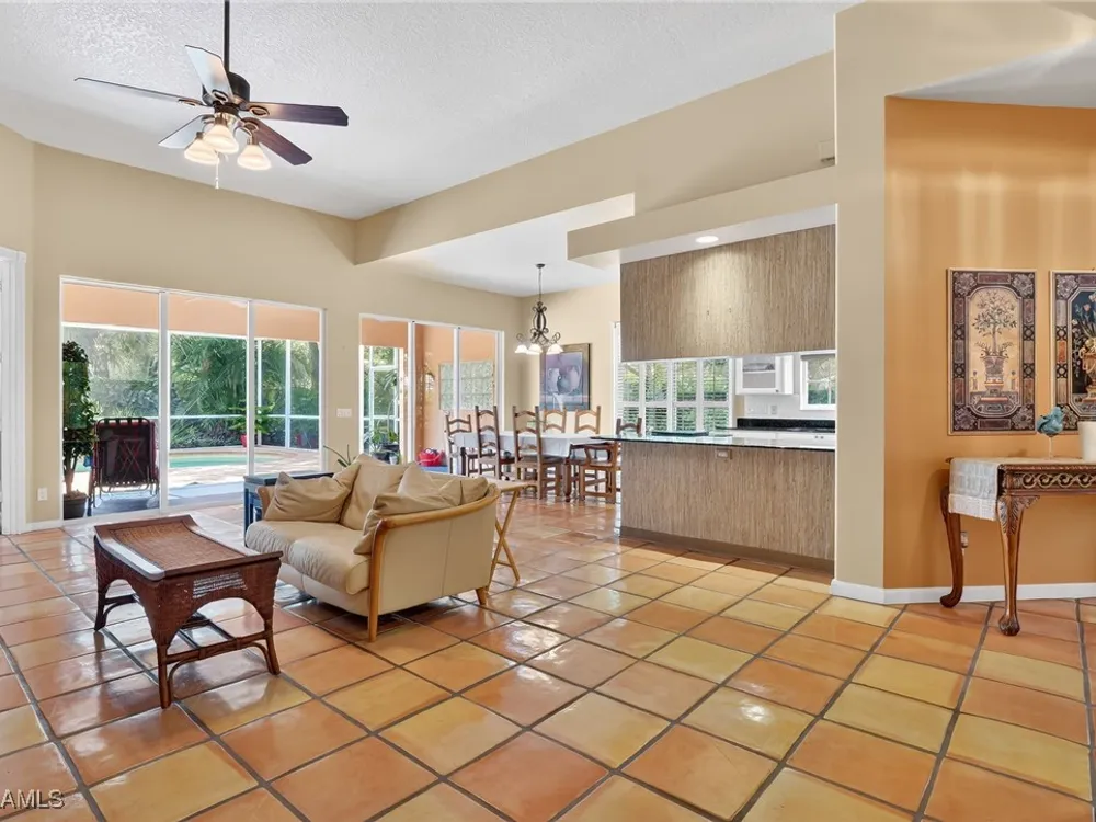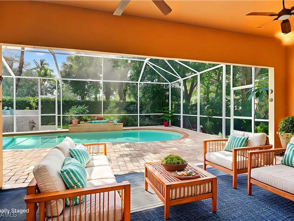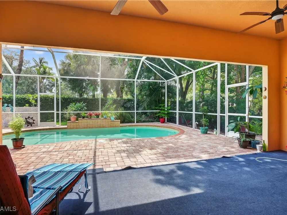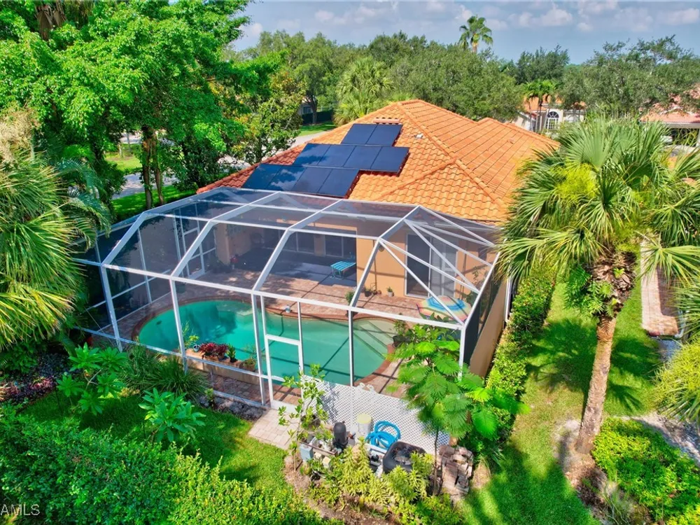 STUNNING OAKMONT "CROWN JEWEL" OF ISLAND WALK! REMODELED ($150,000+/-) PARTIALLY FURNISHED 3 BEDROOM, DEN, 3 BATH, 2 CAR GARAGE, POOL HOME WITH COMPLETE (PAID) SOLAR SYSTEM FOR EXTREME ENERGY SAVINGS ($THOUSANDS IN SAVING YEARLY). SHOWS LIKE A DESIGNERS SHOWCASE HOME. BEAUTIFUL CUSTOM MEXICAN "TERRA-COT TA" TILE FLOORS THROUGHOUT MAIN LIVING AREAS AND RICH "ROSEWOOD" WOOD FLOORING IN THE BEDROOMS. OPEN FLOOR PLAN WITH 12' CEILINGS AND LOTS OF GLASS WINDOWS AND SLIDERS KEEPS HOME LIGHT-BRIGHT-SUNNY ALL YEAR ROUND. "CHEFS" Kitchen with all Wood Cabinetry, Level 5 Granite Tops, All Stainless Steel High End Appliances. MASTER BEDROOM HAS HIS & HERS WALK-IN CLOSETS, 2 COMPLETE SEPARATE HIS & HERS BATHROOMS, GRANITE SINKS AND ALL TILE AND GLASS WALK-IN SHOWER. Pool, is custom designed HEATED (new) with all paver pool deck and paver tile on Lanai. This is a corner "OVERSIZED" lot with "LUSH" LANDSCAPING throughout both the front and back of the home. With all the custom landscaping, "PRIVACY" is the key word for this home in the Community! Located close to entry gate, makes for easy IN & OUT access to the Community, very important with the size of the Community and even better a short walk to TOWN-CENTER. Low HOA fees gives you upgraded HD TV and Internet Service and amenities galore which include and a Town Center with 2 resort-style community pools, 8 lighted "HAR-TRU" tennis courts, BOCCE COURTS, BEAUTIFUL HEALTH & WELLNESS CENTER, STAFFED,FULL SERVICE RESTAURANT, GAS STATION, HAIR & NAIL SALON and POST OFFICE. Community is close to all the best of Naples, including the Beaches, Restaurants, Churches, Hospitals and Entertainment. Only 7 miles to the breathtaking “white sand” gulf beaches. Come and see for yourself what Resort Living is like! HOME COMES WITH A ONE YEAR "HOME WARRANTY" FOR TOTAL BUYER COMFORT. THIS HOME MUST BE SEEN!