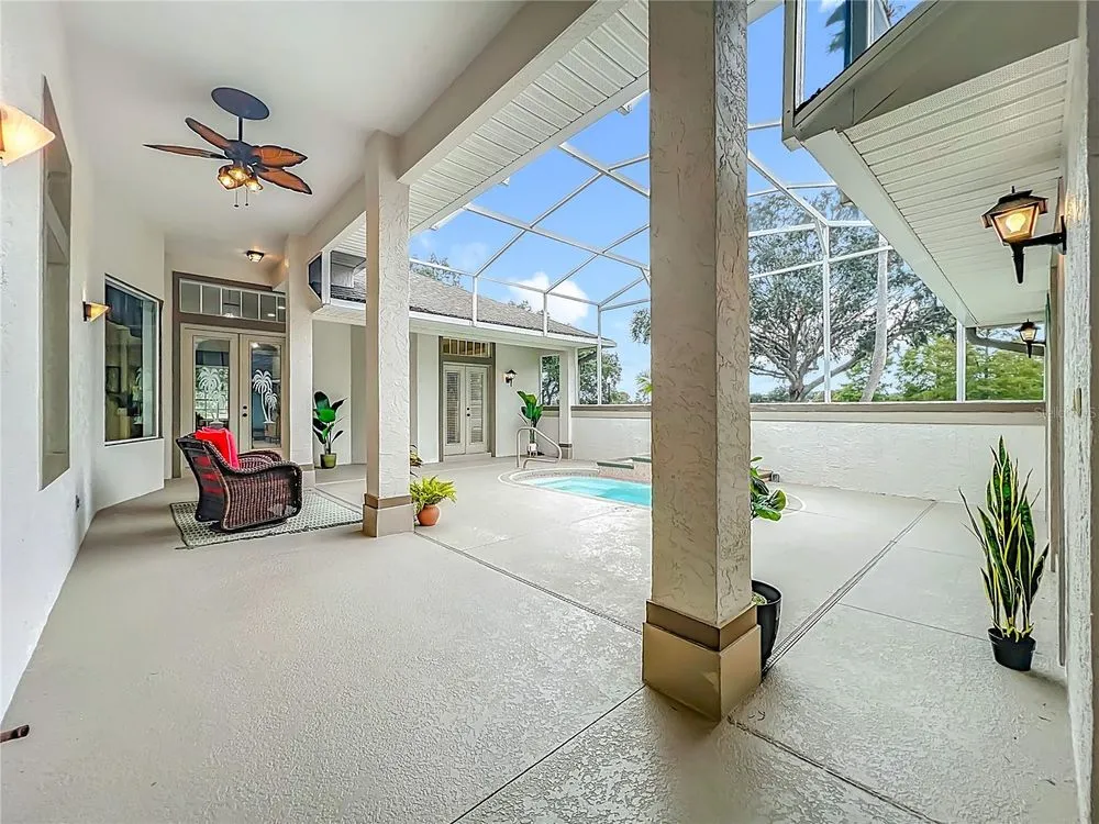 Welcome to Royal Highlands! This stunning 3-bedroom, 3-bath “DUKE” model is one of the community’s most desirable floor plans—complete with a private Casita! Nestled on a quiet cul-de-sac with peaceful views of Royal Lake, this home offers resort-style living with your very own screened-in swimming pool and access to exceptional community amenities. The separate Casita suite is perfect for guests or extended family, featuring a private entrance from the pool deck, a full bathroom, walk-in closet, and Murphy bed. Step inside the main home and be greeted by soaring ceilings, abundant natural light, and an open, split floor plan designed for both comfort and privacy. The primary suite is a true retreat, offering French doors to the pool area, walk-in closet, and a spa-like en-suite bathroom with dual vanities, a soaking tub, and a walk-in shower. The spacious eat-in kitchen is perfect for entertaining—complete with granite countertops, shaker-style cabinetry, stainless steel appliances, and a bright dinette overlooking the pool. Additional features include a formal living/dining combo, a large guest bedroom with a walk-in closet, a third full bathroom, and an inside laundry room leading to a 2-car garage with a dedicated workspace. Enjoy peace of mind knowing a brand-new roof is being installed next week, and the AC system (2020) includes a 3-zone thermostat for year-round comfort. The gas water heater was replaced in 2024. Located in the gated Royal Highlands community, residents enjoy world-class amenities including the Monarch Golf Club, restaurant and pro shop, softball field, indoor and outdoor pools, four lakes, nature trails, tennis, pickle ball, corn hole, and countless social clubs and activities. Experience the best of Florida living—a spacious pool home with lake views, a private guest suite, and a vibrant community lifestyle, all in one. Call today for your private tour!