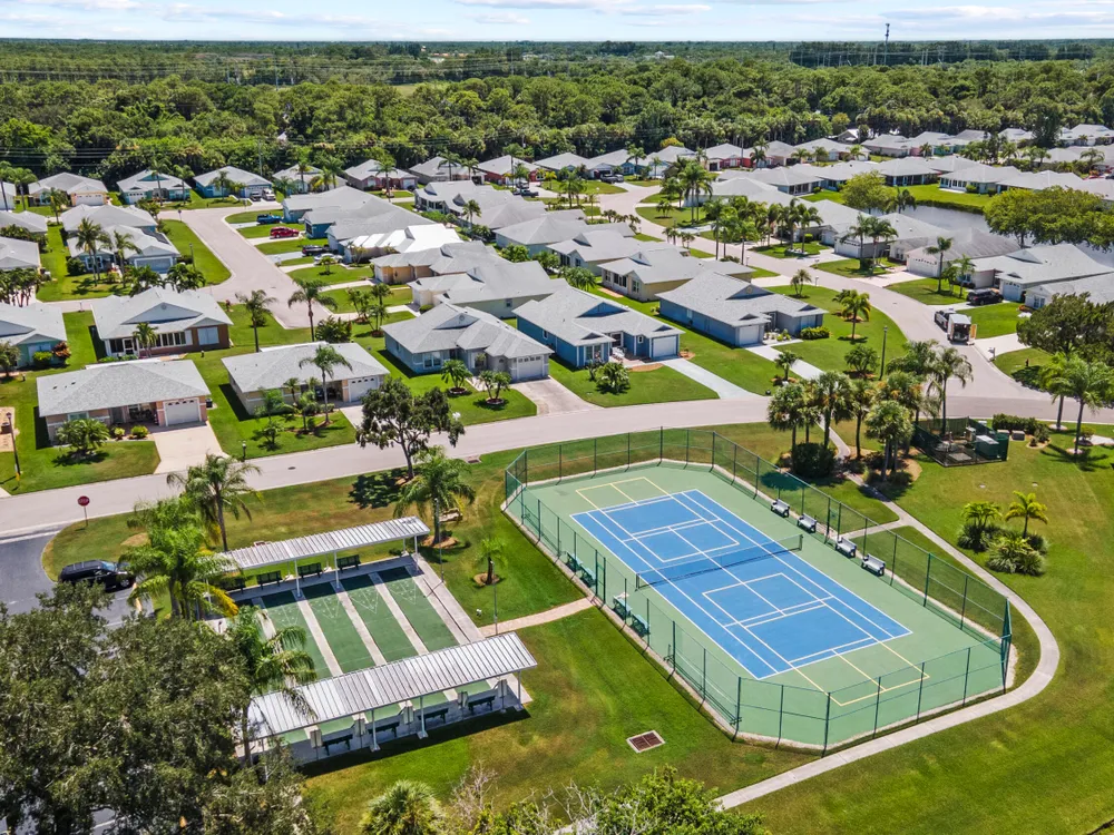 - Bocce, Clubhouse, Community Room, Property Manager On Site, Pickleball, Pool, Shuffleboard, Street Lights, Tennis Court(s)