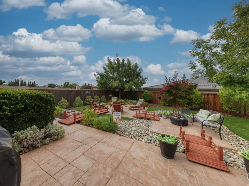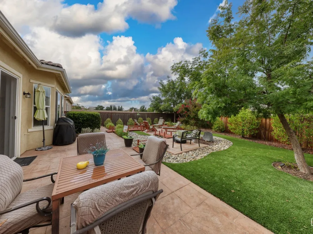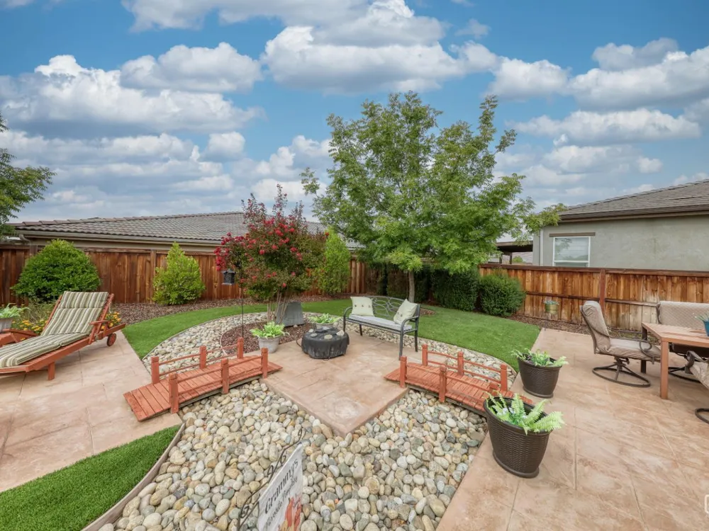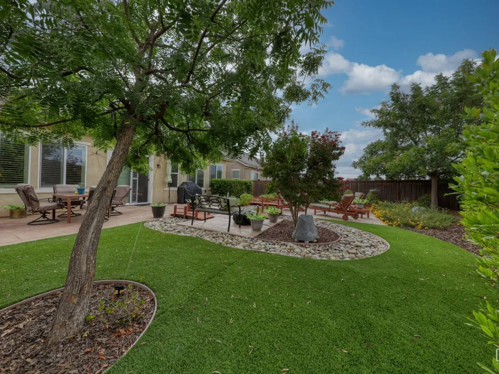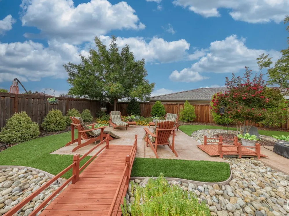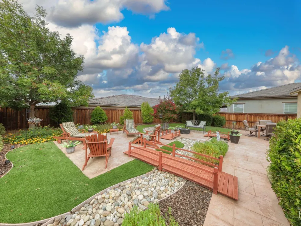 Start living your best life in the esteemed Four Seasons gated adult community. Open floor plan on quiet cul-de-sac. Gorgeous wood like flooring. Carpet in bedrooms and office. Kitchen has granite, pantry and stainless appliances plus a pantry. Spacious primary bedroom has room for a sitting area. Large walk-in closet and walk-in shower and soaking tub. Split wing. Spacious laundry room with loads of storage. Beautiful, very private, park like maintenance free backyard with small bridges, fire pit and artificial turf that saves on your water bill. The Four Seasons Lodge is exceptional with many events planned for residents. It has a fitness center, movie theater, billiards/games and rooms for computers, library, crafts and ballroom. Also a cafe, plus weekly Bingo. Outside is pool, spa, pickle ball, bocci ball, patio with large fire pit, beauty salon. Many activities such as dance and water aerobics, cards, board games, Mahjong. What's not to love!