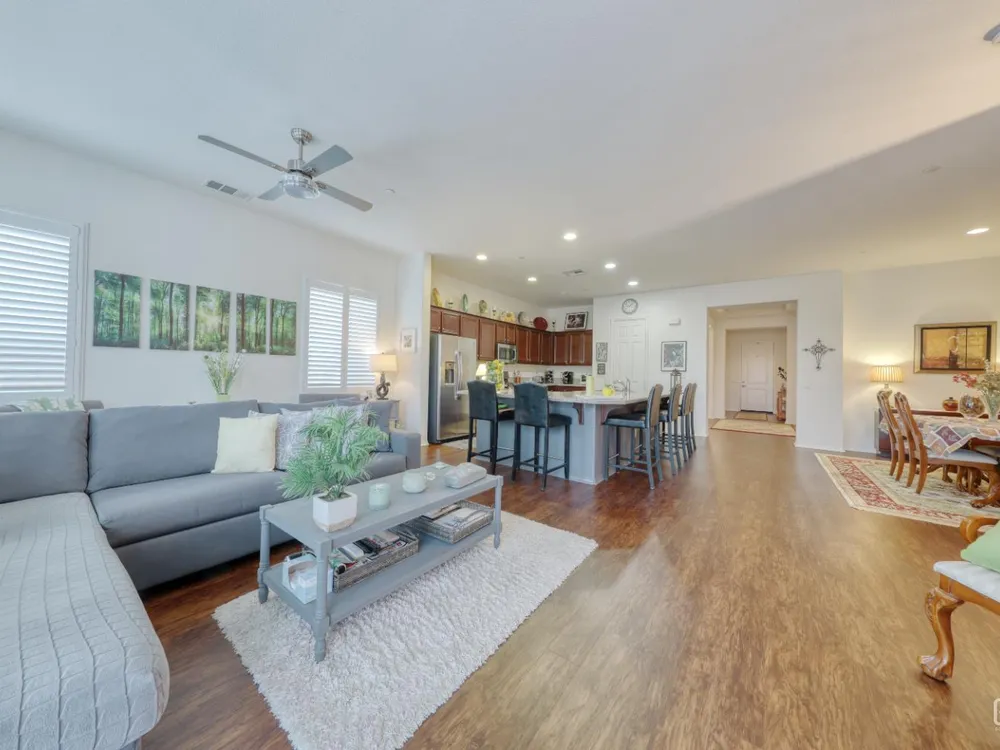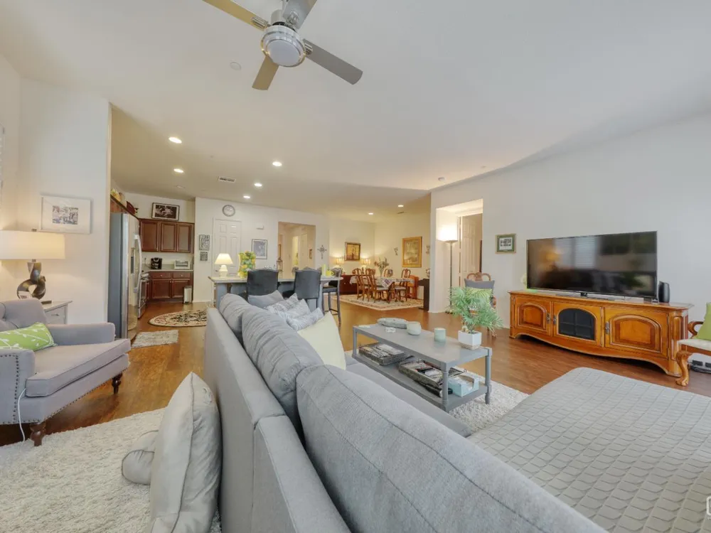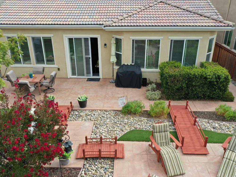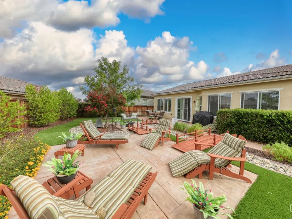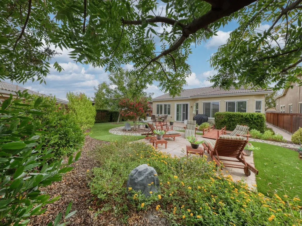 Start living your best life in the esteemed Four Seasons gated adult community. Open floor plan on quiet cul-de-sac. Gorgeous wood like flooring. Carpet in bedrooms and office. Kitchen has granite, pantry and stainless appliances plus a pantry. Spacious primary bedroom has room for a sitting area. Large walk-in closet and walk-in shower and soaking tub. Split wing. Spacious laundry room with loads of storage. Beautiful, very private, park like maintenance free backyard with small bridges, fire pit and artificial turf that saves on your water bill. The Four Seasons Lodge is exceptional with many events planned for residents. It has a fitness center, movie theater, billiards/games and rooms for computers, library, crafts and ballroom. Also a cafe, plus weekly Bingo. Outside is pool, spa, pickle ball, bocci ball, patio with large fire pit, beauty salon. Many activities such as dance and water aerobics, cards, board games, Mahjong. What's not to love!