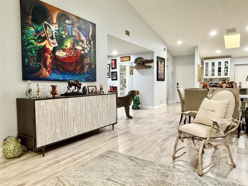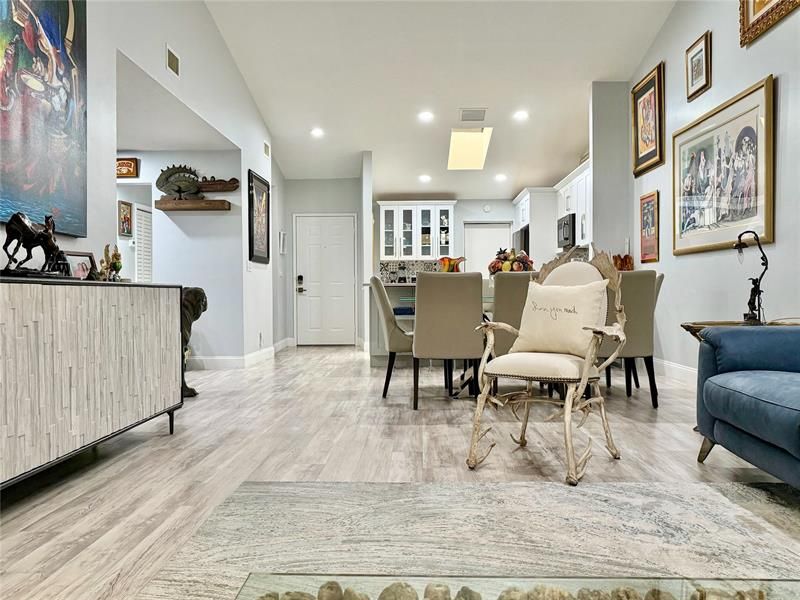 MAGNIFICENT RENOVATED VILLA!! 3-Bed 2-Bath with Versatile Den. Located in PALM CHASE LAKES on Quiet Cul-De-Sac. IMPRESSIVE KITCHEN Features a Skylight, NEW High-End GE Black Stainless Appliances & Built-in Pantry Wine/Coffee Bar. Quartz Countertops/Snack Bar & Beautiful Backsplash Design. HURRICANE IMPACT WINDOWS & DOORS. GREAT ROOM Vaulted Ceilings, NEW Recessed Lighting/Fixtures/Ceiling Fans. NEW A/C SYSTEM & WATER HEATER (7/2025) NEW Electric Blinds including the Skylight & Vinyl Wood Plank Flooring. Luxurious Master Retreat w/Large Walk-in Shower/Closet. Expansive GLASS ENCLOSED FLORIDA ROOM with A/C (300 sqft). NEW WASHER & DRYER. Oversized Garage & Attic. Clubhouse includes Olympic Size Pool, Hot tub, Pickleball Courts & More! WALK TO PLACES OF WORSHIP! 55+ Community. Pets Welcome!!
