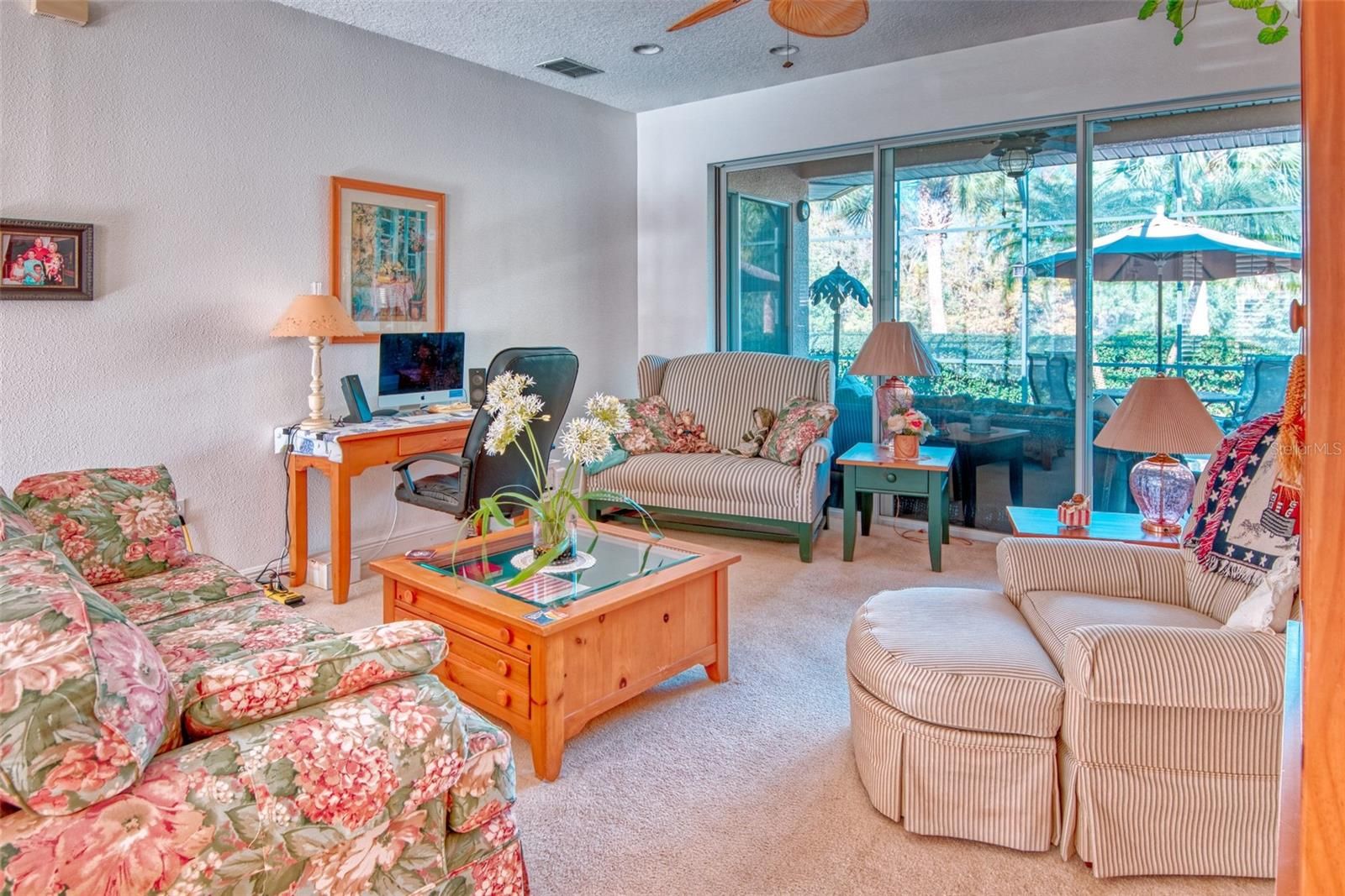 Welcome to your slice of paradise in the highly sought-after, award winning Solivita community! This beautifully maintained 2-bedroom, 2-bathroom home offers serene, unobstructed views of the 5th tee of the beautiful Oaks course and the peaceful conservation area beyond, perfect for golfers and nature lovers alike. Step inside to discover an open, light-filled floor plan highlighted by elegant crown molding throughout. The heart of the home is the gorgeous custom-updated kitchen featuring gleaming quartz countertops, abundant cabinetry, and a cozy breakfast nook, ideal for morning coffee while watching the sunrise over the fairway. Relax or entertain in style with both a bright Florida room and an extended screened lanai (14 x 42) that maximizes those breathtaking golf and conservation views. Whether sipping evening cocktails or hosting friends, this outdoor living space feels like a private oasis. Additional standout features: plantation shutters throughout, spacious extended garage with attic storage and convenient work sink. New HVAC (2021) New roof (2022) CDD debt fully paid – big savings for the new owner! Low-maintenance Florida living at its finest in a gated golf community with resort-style amenities. Don’t miss this rare opportunity to own a move-in-ready home on one of the best lots in Solivita. Schedule your private showing today – this one won’t last long!**See the MATTERPORT VIDEO on Tour Link 1.*****Solivita is an active adult 55+ community located in Kissimmee, Florida. It is approximately 50 minutes from Disney World & the Orlando International Airport. Solivita has a total of 5470 homes. Approximately 10,000 – 11,000 residents live in Solivita during the winter while approximately 7,500 live in Solivita during the summer. Enjoy your active years in this piece of paradise. Solivita’s amenities include: a manicured SOFTBALL Diamond & Field - 36 holes of CHAMPIONSHIP GOLF that can be played by joining the Stonegate Golf Club or paying as you go – 2 STATE of the Art AMENITY centers with updated exercise equipment, yoga studio and meeting rooms – 3 restaurants - 14 HEATED POOLS – 17 PICKLEBALL courts – 9 TENNIS courts -4 BOCCE BALL courts – 4 Corn Hole – Tot Lot PLAYGROUND – COMMUNITY GARDEN – over 250 resident clubs. Pharmacy and Spa in the Village. The HOA: - maintains the LANDSCAPING & IRRIGATION systems in the common areas as well as at individual homesites – maintains the roads throughout the community – provides SECURITY with gate guards and mobile patrols including the Polk County Sheriff – allows AUTOMATED GATE ACCESS for residents via license plate readers – provides residents with Fiber Optic Internet & TV service. ***Poinciana Lakes Plaza is a MAJOR NEW SHOPPING CENTER directly across from the Solivita Main Gate. It features Sprouts Grocery, TJ Maxx, Ross, Burlington, Ulta, Outback, First Watch, 5 Guys, Jersey Mikes, Panda Express, Petco, Urgent Care, Dentist & More!
