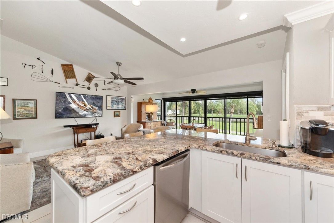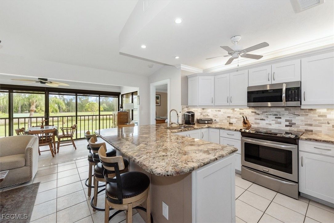 This ia a beautiful D UNIT in the Greenbriar community within the Hideaway Country Club. The D UNIT is the most spacious condo and rarely available. This unit has been totally renovated with new cabinets and a gorgeous granite that has been carried into the bathrooms. The air handler that is usually in the closet with the Hot Water Heater has been relocated to the attic, which allows for extra storage and easy access with pull down stairs. The view is exceptional with no condos behind you. The view is the beautiful landscape, the golf course and the lake, along with a wooded area which provides privacy. Best and most affordable gated golf course community in SW Florida, all the amenities, golf, heated pool, tennis, fitness, clubhouse/restaurant and convenient to everything.