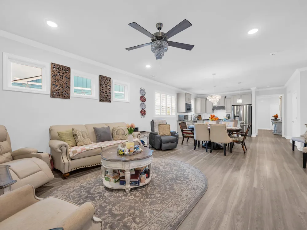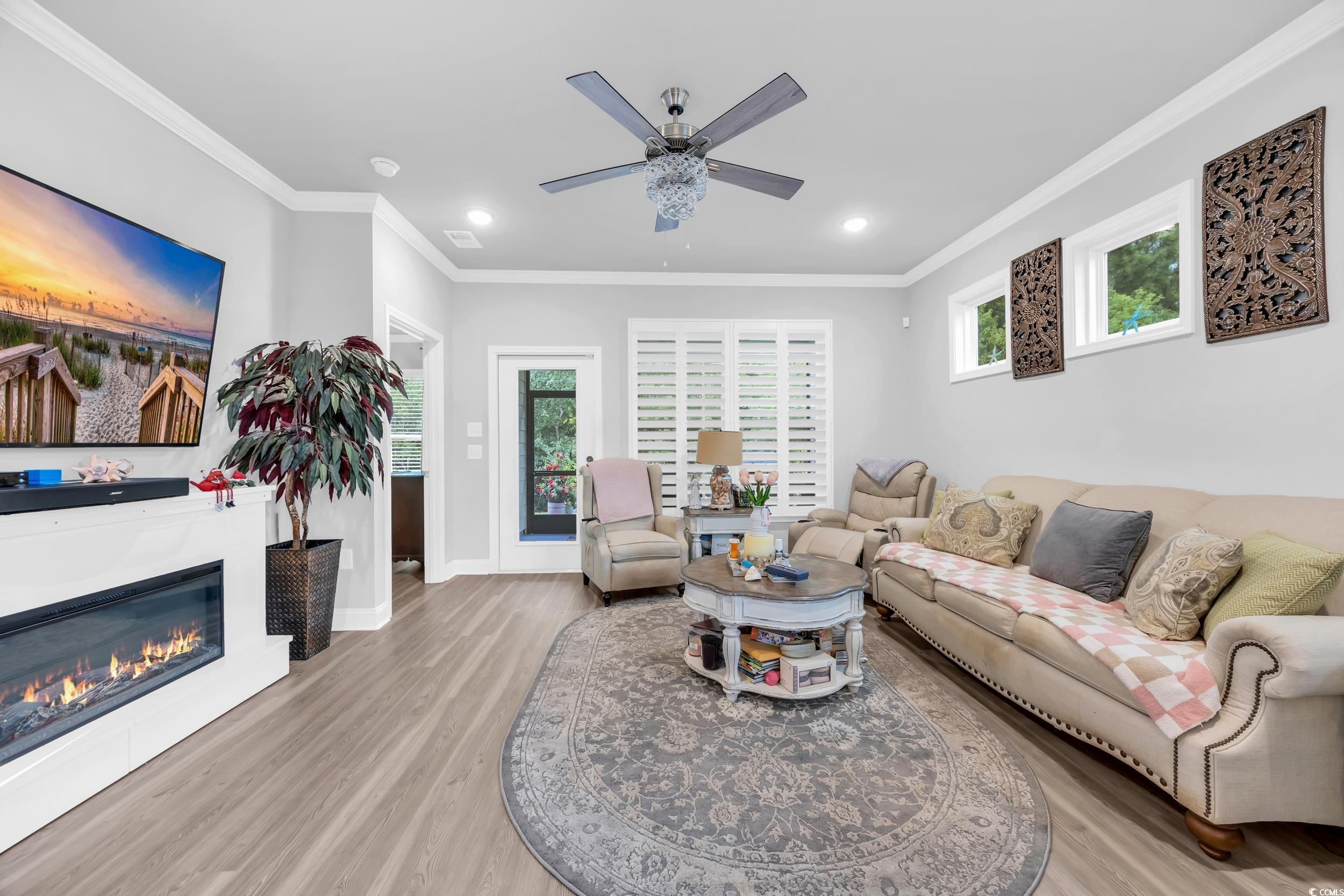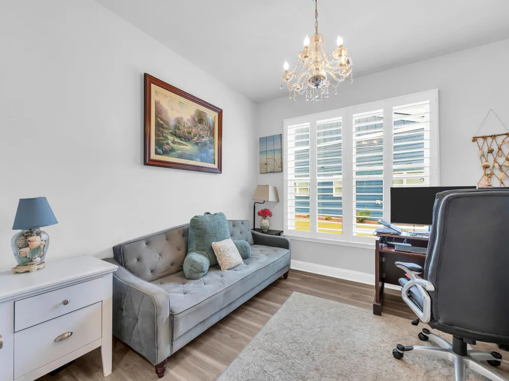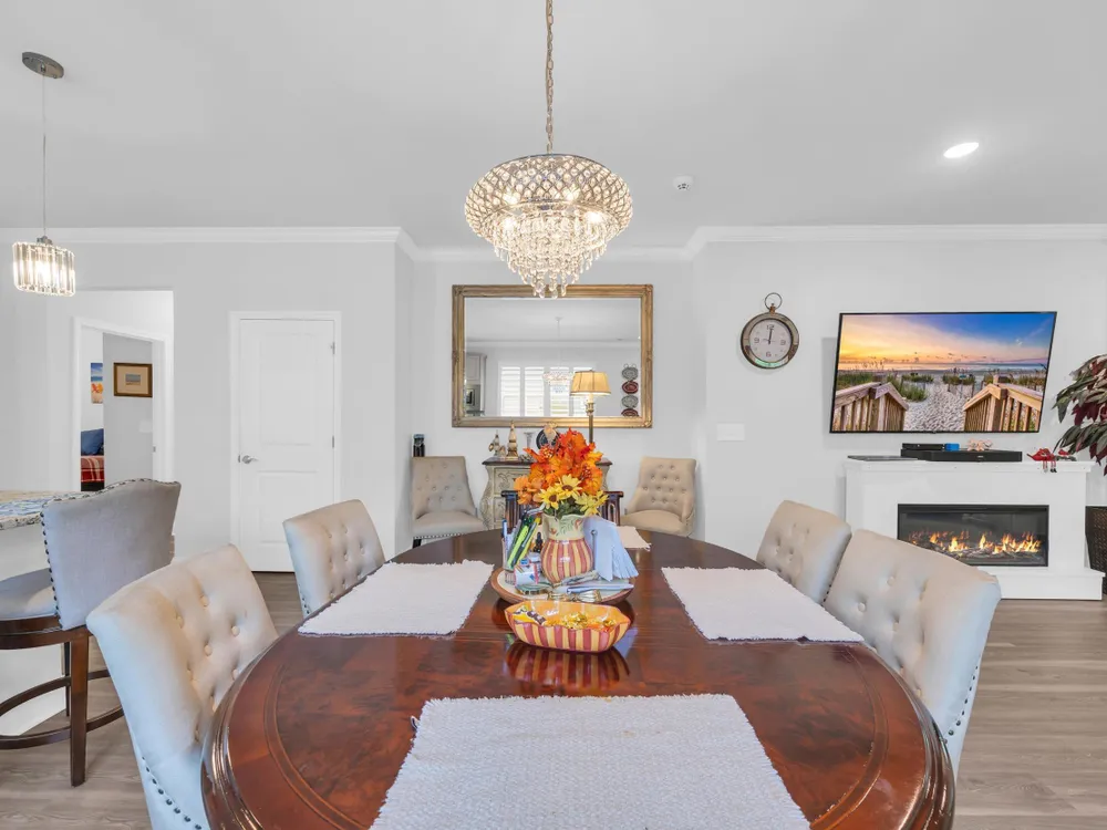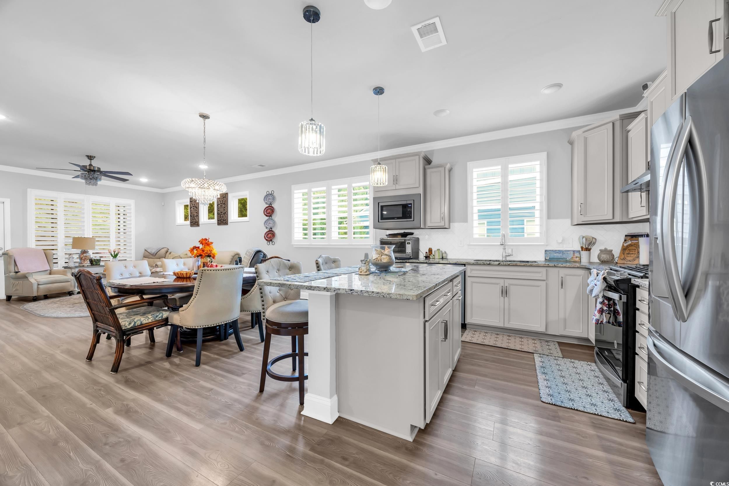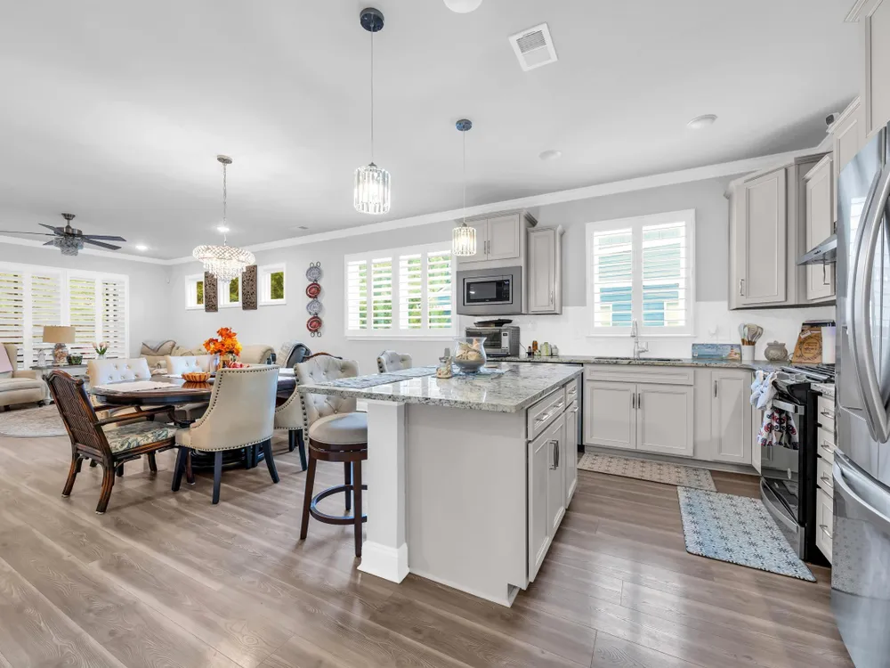 Welcome to 5911 Cremona Dr, located in the sought-after 55+ gated community of Del Webb at Grande Dunes. Built in 2023, this home blends modern design with low-maintenance living, just minutes from the beach, golf, dining, and medical facilities. The open floor plan features a gourmet kitchen with solid surface countertops, stainless steel appliances, a gas range, and a large island that flows into the dining and living areas. Plantation shutters, abundant natural light, and thoughtful finishes create a comfortable yet elegant space. A versatile flex room offers the perfect spot for a home office, den, or guest bedroom to suit your lifestyle needs. The owner’s suite includes tray ceilings, a spa-inspired bath, and a spacious walk-in closet. A covered patio extends your living area outdoors—perfect for relaxing with morning coffee or entertaining friends in the evening. Del Webb residents enjoy unmatched resort-style amenities: indoor and outdoor pools, a fitness center, pickleball and tennis courts, bocce ball, walking trails, a fire pit overlooking the Intracoastal Waterway, and a private day dock. A full-time lifestyle director organizes activities and events, and membership includes access to the exclusive Grande Dunes Ocean Club. This property offers the perfect combination of comfort, convenience, and community in one of Myrtle Beach’s premier active-adult neighborhoods.