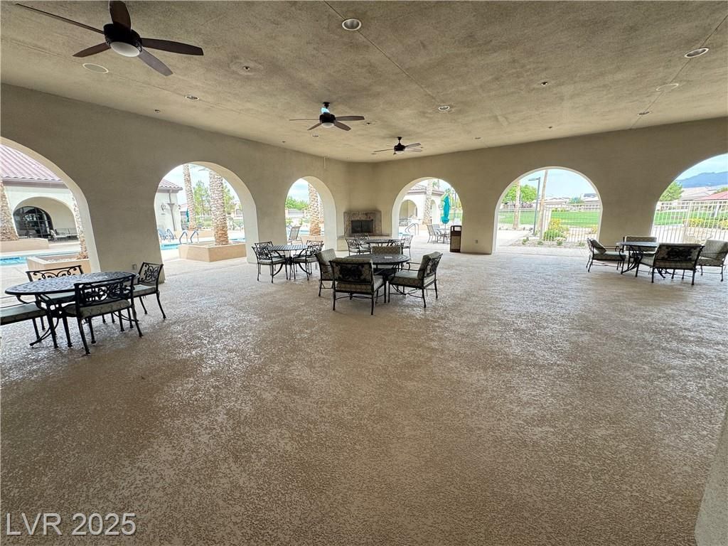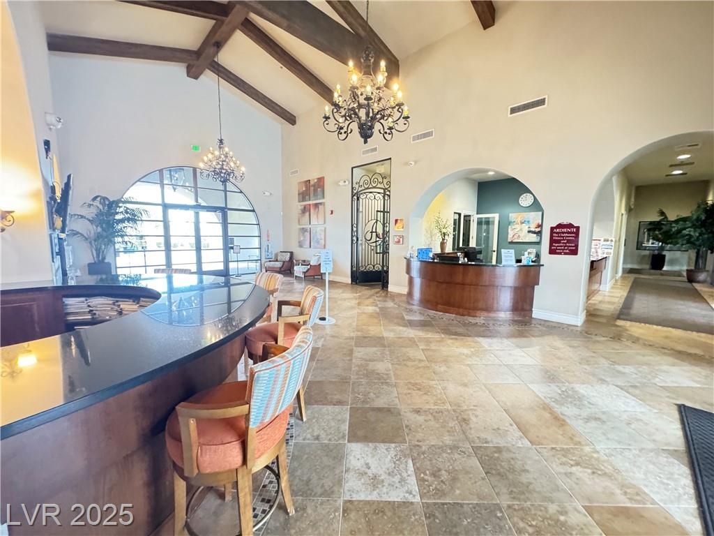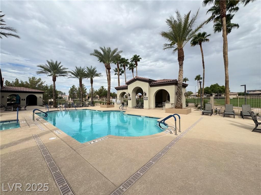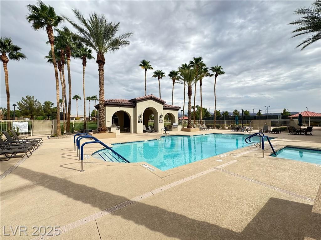 AGE QUALIFIED 55+ Resort Style Living in Ardiente! Welcome to this single-story home in the prestigious, gated Ardiente community. 2 bedrooms + den, 2 baths, 2 car garage. Enjoy an open floor plan, chef’s kitchen granite counters, breakfast bar and nook, pantry, and upgraded cabinetry. Title floors through except the 2 bedrooms! Primary w/dual closets, slider to backyard, bath w/walk-in shower, dual vanities. Guest suite w/walk-in closet. Den/office w/double doors. Outdoor living is an entertainer’s dream nice sized backyard, covered patio w/ceiling fan, BBQ stub, low-maintenance landscaping! Community Amenities: 22,000 sq. ft. clubhouse, two resort-style pools & spa, lap pool, fitness center, pickleball, tennis, bocce, basketball, putting green, parks, dog park, walking trails, billiards, BBQ areas, full social calendar. Prime location near VA Medical Center, shopping, dining, I-15 & 215 access, just minutes to the Strip. Active adult lifestyle you’ve been waiting for, priced to sell!