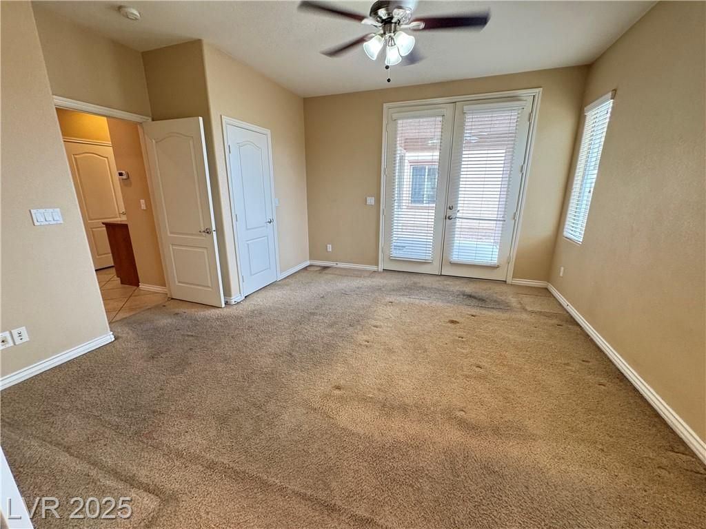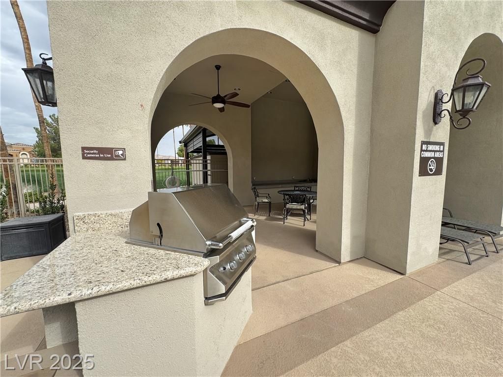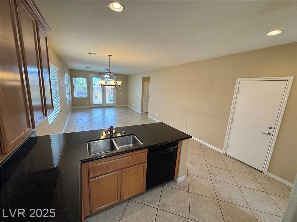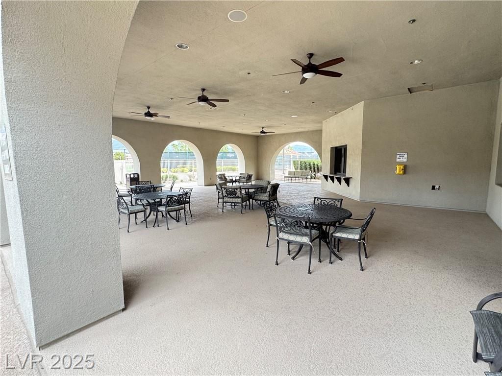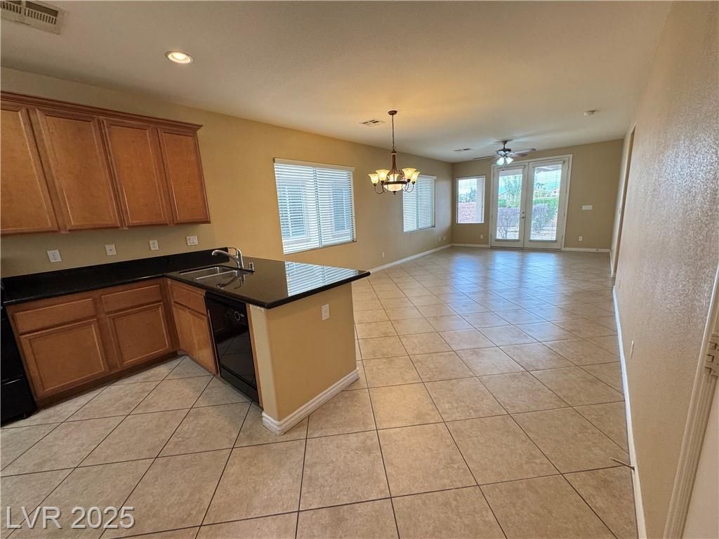AGE QUALIFIED 55+ Resort Style Living in Ardiente! Welcome to this single-story home in the prestigious, gated Ardiente community. 2 bedrooms + den, 2 baths, 2 car garage. Enjoy an open floor plan, chef’s kitchen granite counters, breakfast bar and nook, pantry, and upgraded cabinetry. Title floors through except the 2 bedrooms! Primary w/dual closets, slider to backyard, bath w/walk-in shower, dual vanities. Guest suite w/walk-in closet. Den/office w/double doors. Outdoor living is an entertainer’s dream nice sized backyard, covered patio w/ceiling fan, BBQ stub, low-maintenance landscaping! Community Amenities: 22,000 sq. ft. clubhouse, two resort-style pools & spa, lap pool, fitness center, pickleball, tennis, bocce, basketball, putting green, parks, dog park, walking trails, billiards, BBQ areas, full social calendar. Prime location near VA Medical Center, shopping, dining, I-15 & 215 access, just minutes to the Strip. Active adult lifestyle you’ve been waiting for, priced to sell!