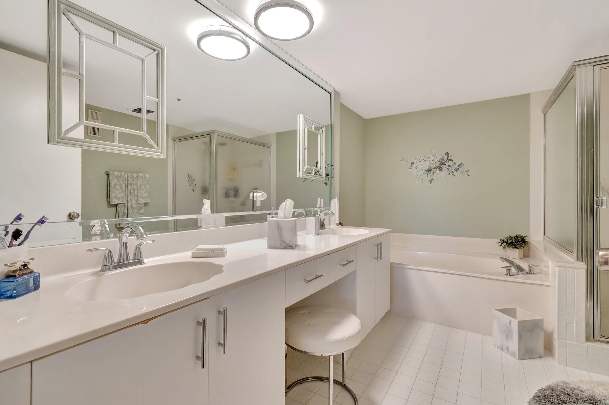 - Entrance Foyer, Pantry, Walk-In Closet(s), Split Bedrooms, Breakfast Area, Living/Dining Room, Eat-in Kitchen, Dual Sinks, Main Level Primary, Separate Shower