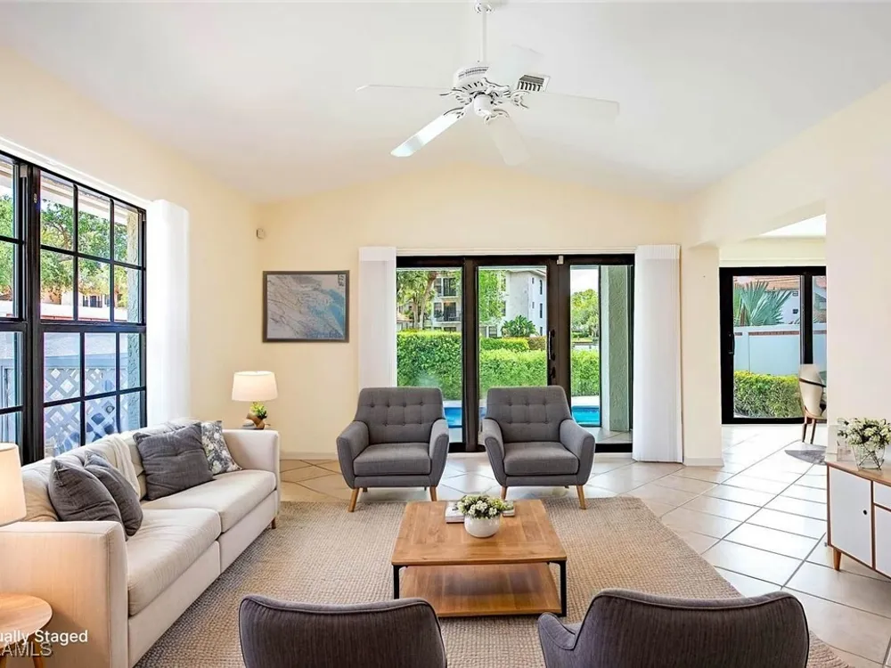 Tucked within the private enclave of Lugano in the prestigious community of Pelican Bay, this beautifully maintained two-story villa offers refined privacy and tranquil lake and golf course views from inside the home and its private pool and lanai. Thoughtfully designed with tasteful finishes, the residence features three bedrooms plus a den, a two-car attached garage, and abundant storage throughout. Impact-resistant glass, a tankless water heater, whole-home generator, and a 500-gallon buried propane tank provide modern comfort and peace of mind. The first-floor master suite offers generous closet space and a serene escape, while the open dining and living areas are ideal for entertaining, complemented by a convenient powder bath. Upstairs balconies capture sweeping views and invite warm breezes and vibrant sunset skies. Now available for immediate occupancy—don’t miss this exceptional opportunity to secure this remarkable residence. As a resident of Pelican Bay, enjoy exclusive access to private beachfronts with two beach clubs, beachfront dining, tennis, pickleball, a state-of-the-art fitness and wellness center, kayaking, and miles of picturesque walking and biking trails—all just minutes from the world-class shopping and dining of Waterside Shops and the cultural performances at Artis—Naples.