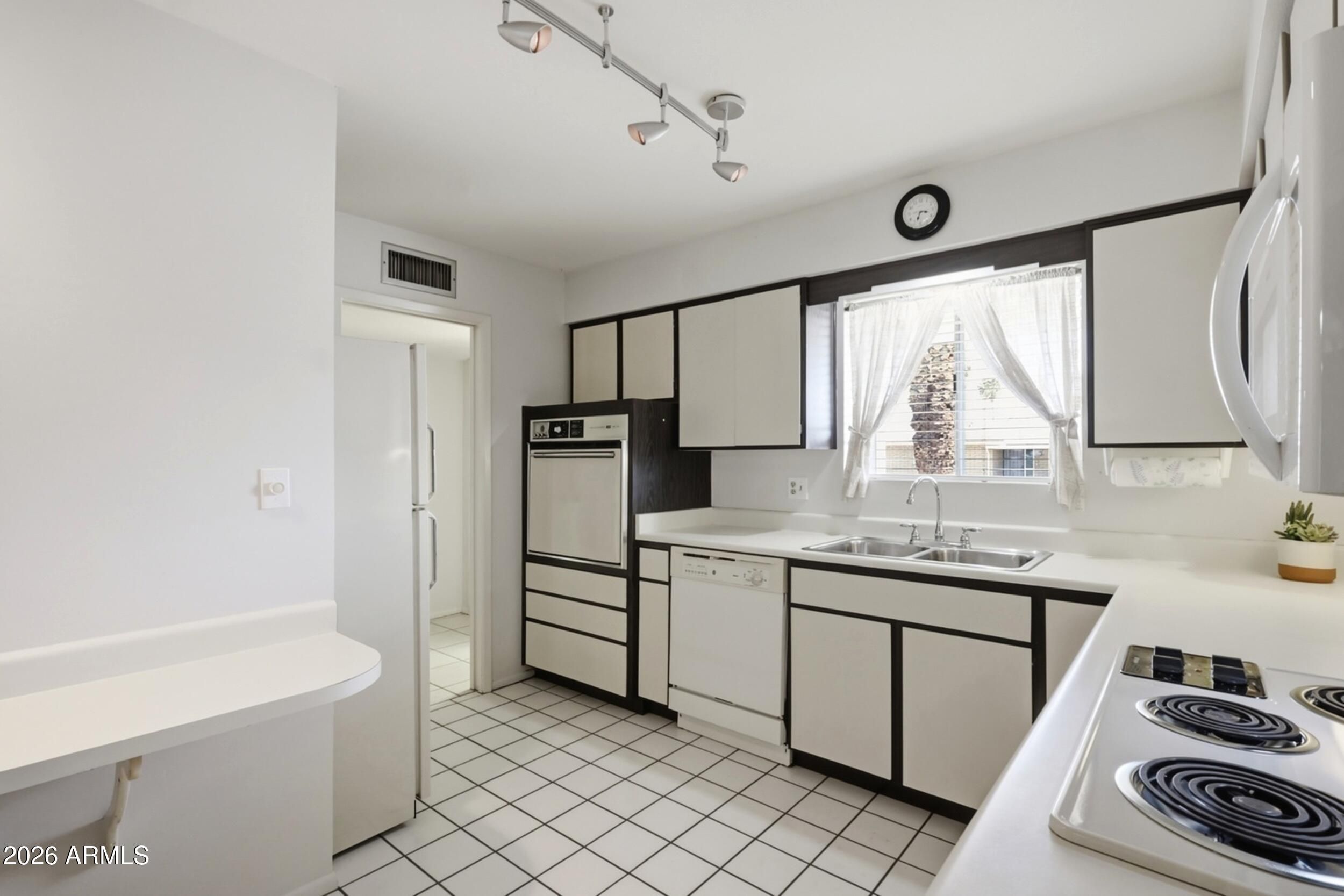 - Dryer, Washer, Refrigerator, Built-in Microwave, Dishwasher, Electric Oven, Electric Cooktop