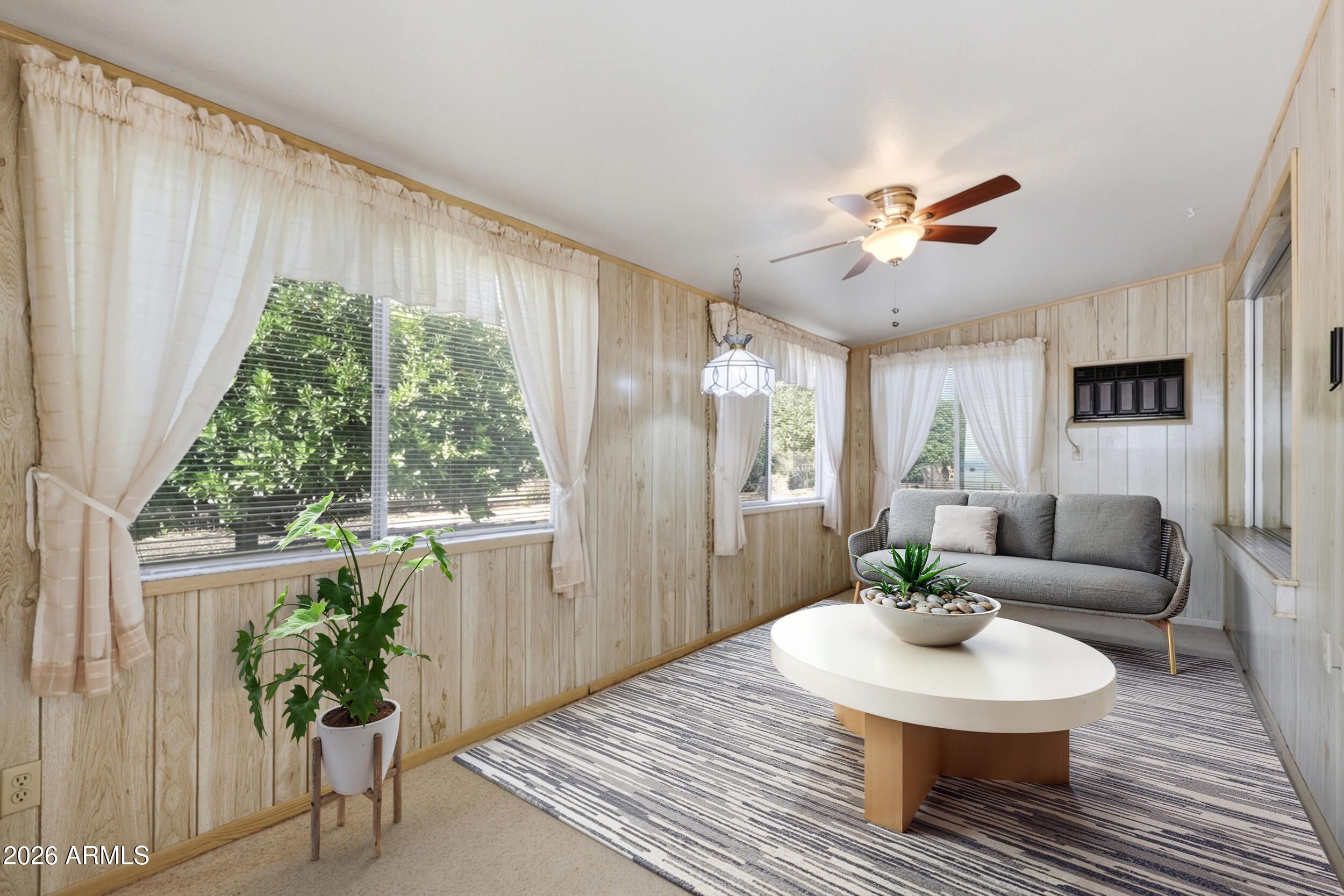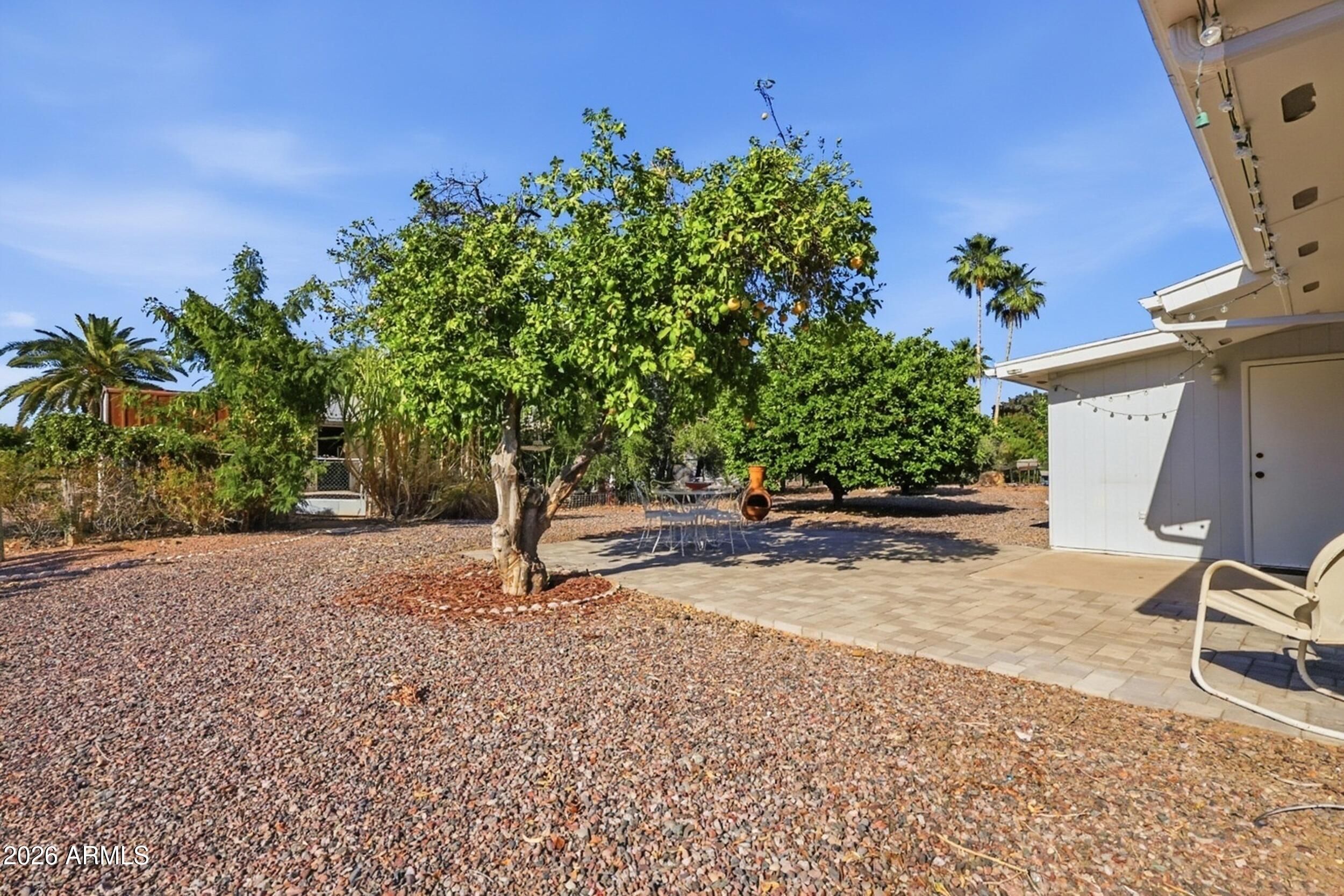Welcome to this 2-bedroom, 2-bath home in the sewer-connected section of Dreamland Villa, a Mesa 55+ community! This move-in-ready home features beautiful fresh interior and exterior paint (both completed in 2025), offering a bright, clean canvas for your next chapter. Relax, unwind, or entertain guests in your spacious Arizona room, perfectly designed for comfortable indoor-outdoor living year-round. The property includes a convenient individual laundry room with the washer and dryer included, plus a backyard with citrus trees for fresh fruit all season long. Enjoy ultimate freedom with Dreamland Villa's optional HOA--join only if you want access to the clubhouses, pools, and endless activities!