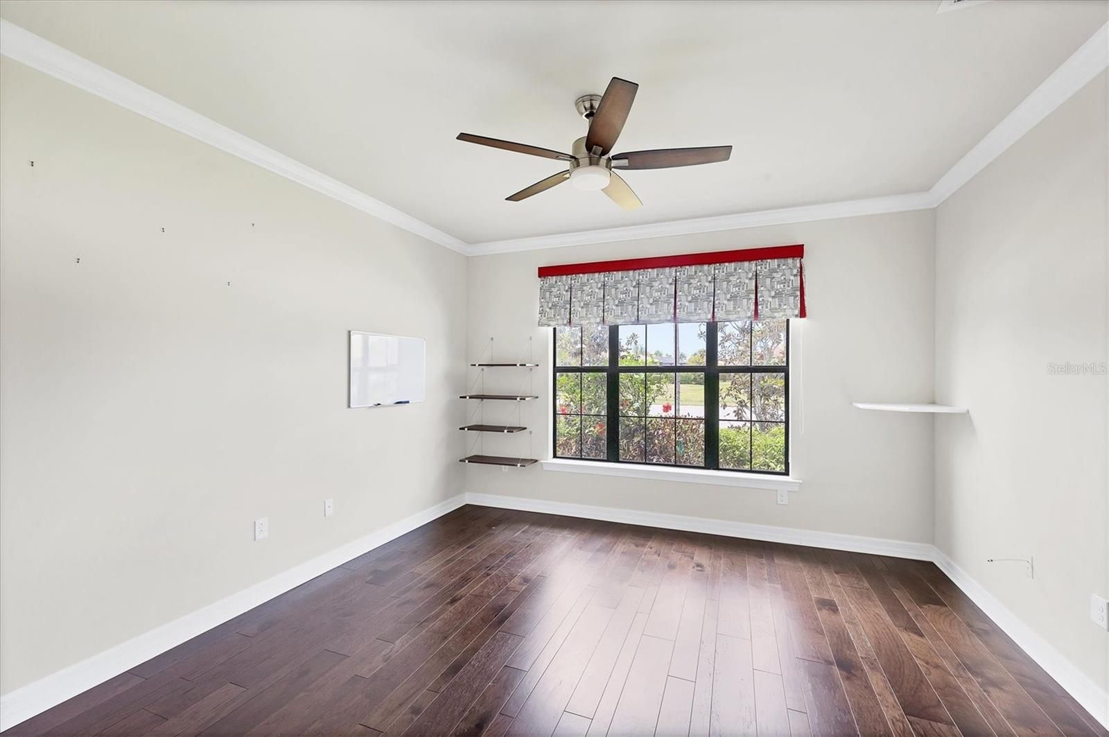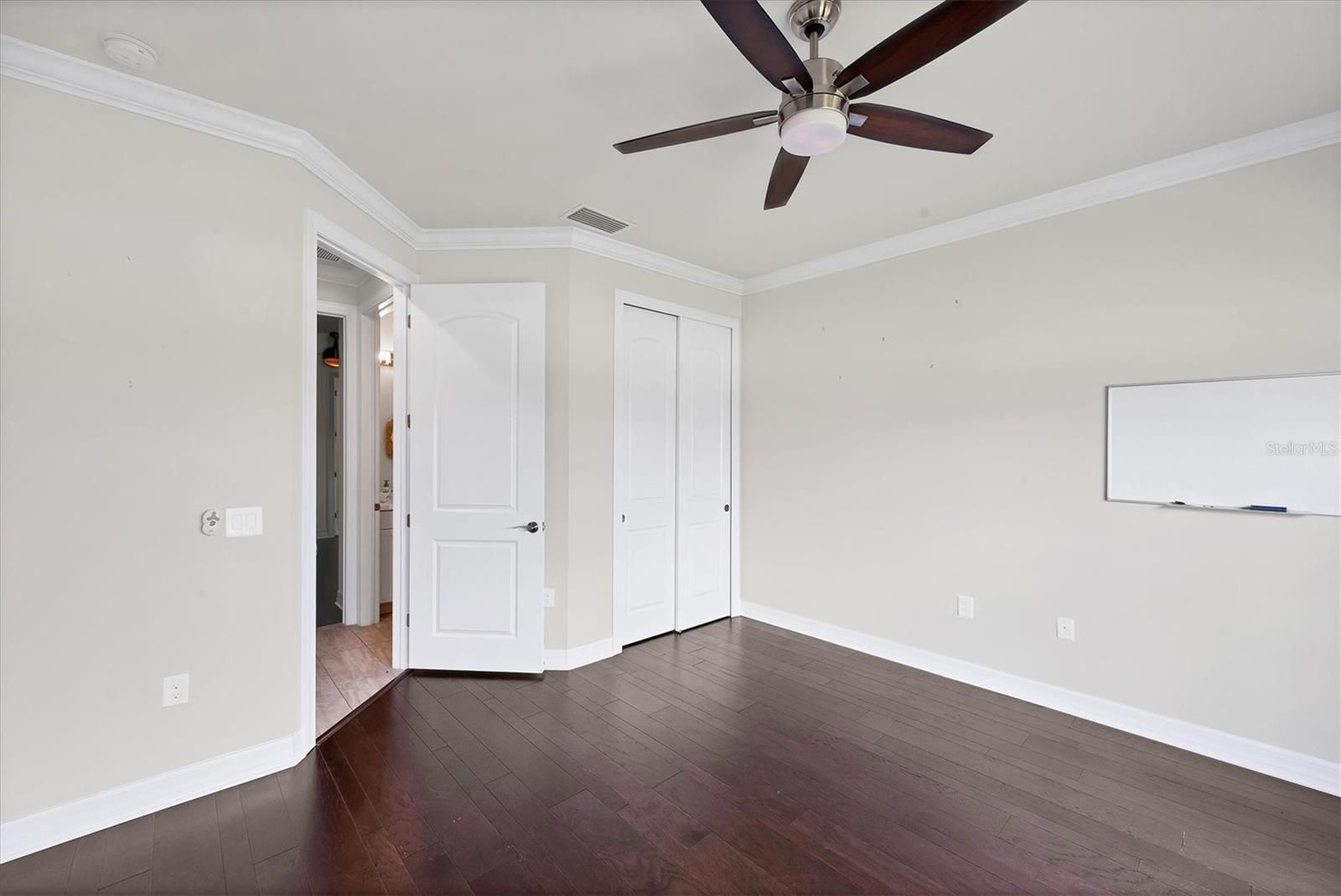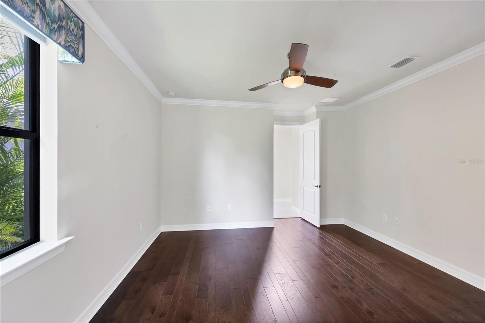 - Ceiling Fan(s), Crown Molding, Eat-in Kitchen, Open Floorplan, Main Level Primary, Solid Surface Counters, Solid-Wood Cabinets, Split Bedrooms, Stone Counters, Thermostat, Walk-In Closet(s), Window Treatments