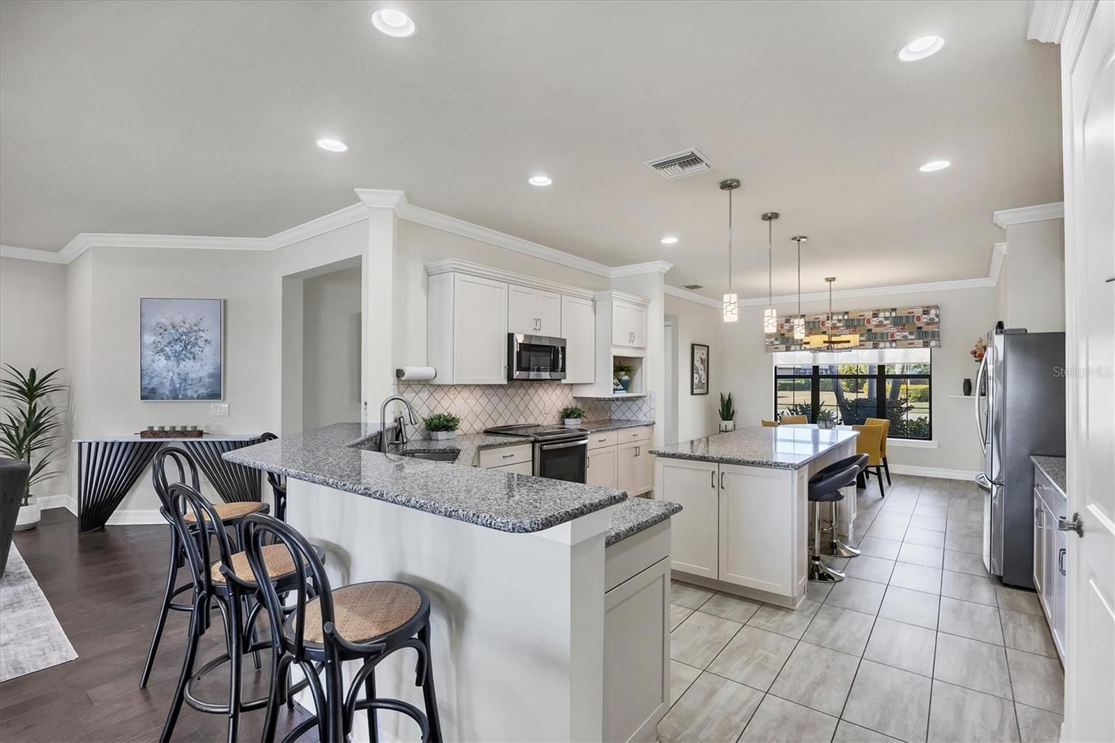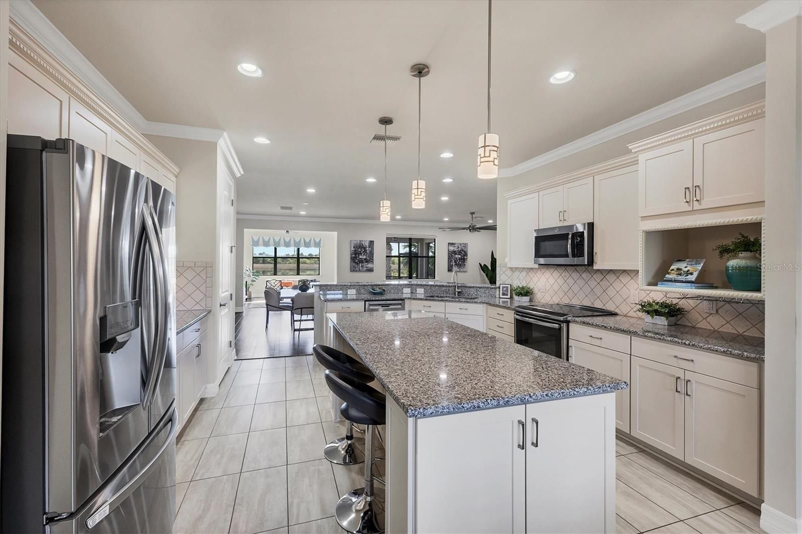 BEST DEAL IN SANDHILL PRESERVE!! 3 CAR GARAGE, FRESHLY PAINTED EXTERIOR, No Stairs to walk up, Lots of Upgrades and situated on a PRIME WATERFRONT LOT. Welcome home to 5923 Snowy Egret Dr, located in the highly sought-after gated community of Sandhill Preserve on Palmer Ranch. This stunning maintenance-free home sits on one of the premier lakefront lots in the neighborhood, offering expansive water views and desirable Northeast exposure. With nearly 2,800 sq. ft. of well-designed living space, this split floor plan offers both privacy and functionality. Inside, you’ll find an abundance of upgrades including elegant crown molding, neutral tile, and hardwood flooring throughout. The chef’s kitchen is a showstopper, featuring custom shaker cabinetry, granite countertops, stainless steel appliances, and ample storage space. The spacious great room and dining area flow seamlessly for easy entertaining, while the screened and pavered lanai provides a peaceful retreat to enjoy the serene lake views. The three-car garage comes finished with durable epoxy flooring, perfect for additional storage or hobbies. Sandhill Preserve is known for its exceptional resort-style amenities. Residents enjoy a beautiful clubhouse, state-of-the-art fitness center, resort-style pool, tennis and pickleball courts, fire pit lounge, and a lively calendar of social events. The community is also guard-gated for added peace of mind and safety. This home is ideally situated just minutes from a brand-new Publix and Costco, the world-famous beaches of Siesta Key, and vibrant downtown Sarasota, this home truly offers the best of Florida living. Seller to offer buyer 1 year Home Warranty.
