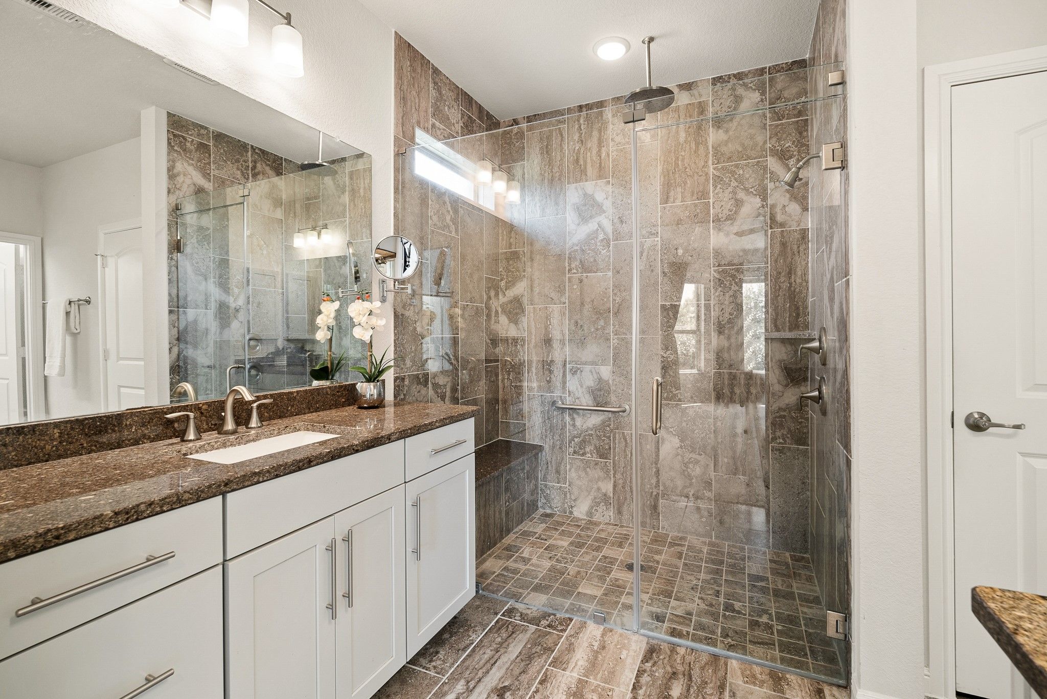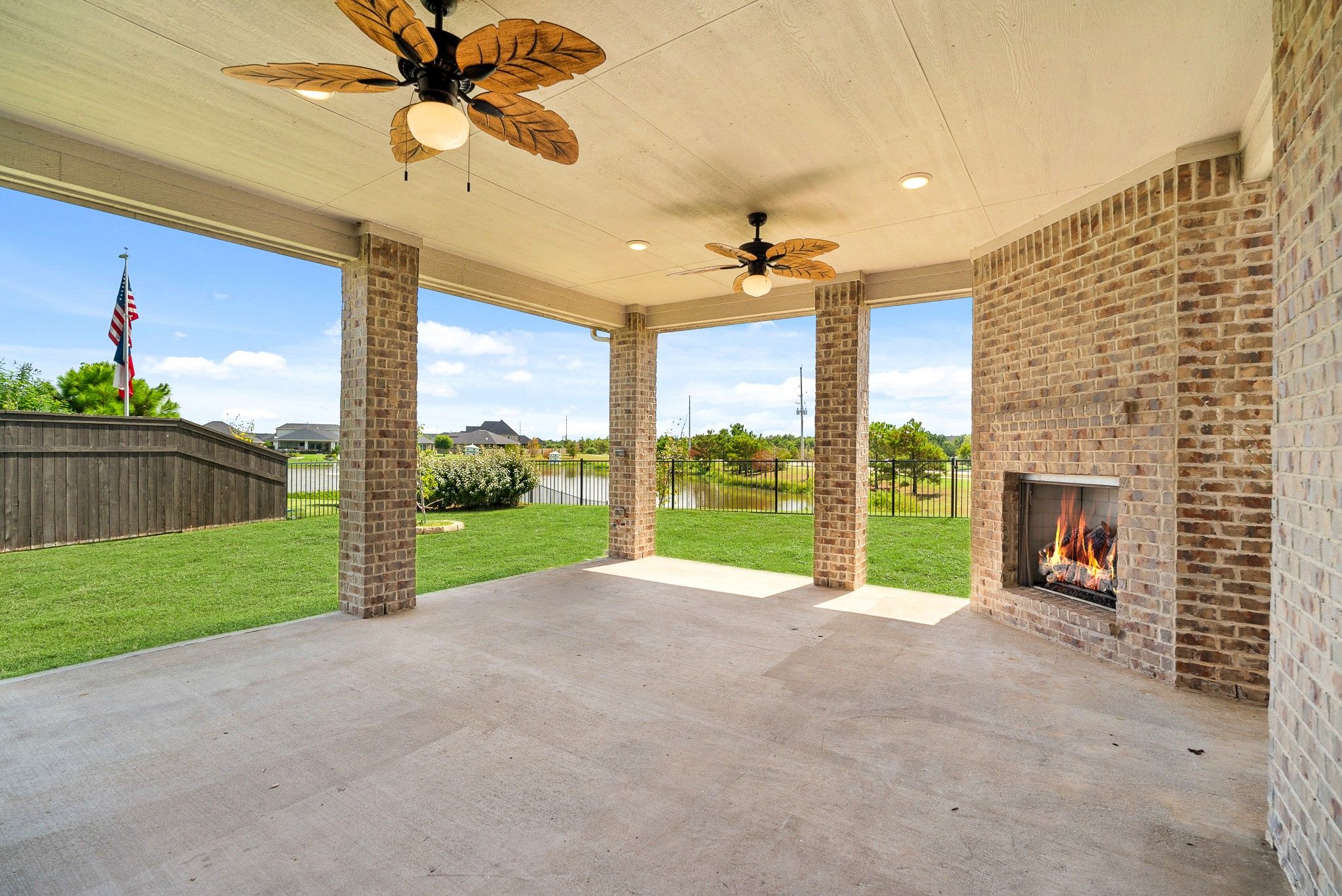 WATER VIEW, single-story home located in BONTERRA, the 55+ section of the desirable Cross Creek Ranch community. Situated on a cul-de-sac Lot with NO back neighbors. Double-wide drive with additional parking leads to oversized 3-CAR GARAGE with epoxy flooring. Inside has been meticulously crafted with a neutral inviting color palette & fixtures, engineered-wood flooring, crown molding, and high-end fixtures. Elegant Study with custom built-ins and plantation shutters. Island Kitchen with granite countertops, walk-in pantry & GE Profile appliance package. Soothing Primary Suite with his/her vanities, 2 walk-in closets, oversized glass shower with rain head. Large Secondary Bedroom with Full Bath. Oversized Back Patio with brick columns, floor-to-ceiling fireplace and incredible views.