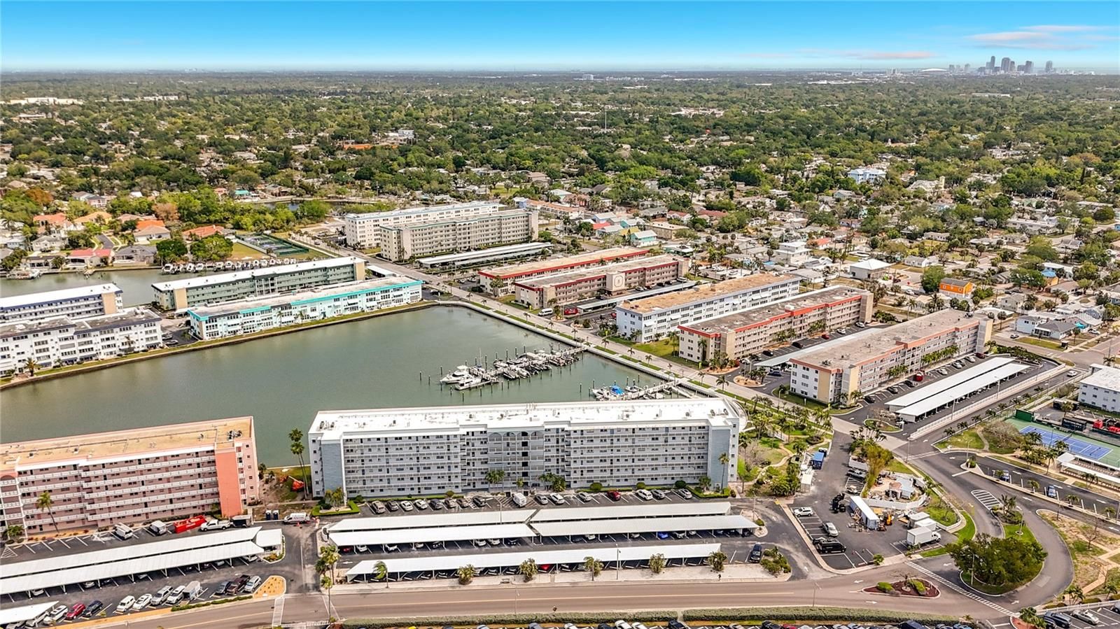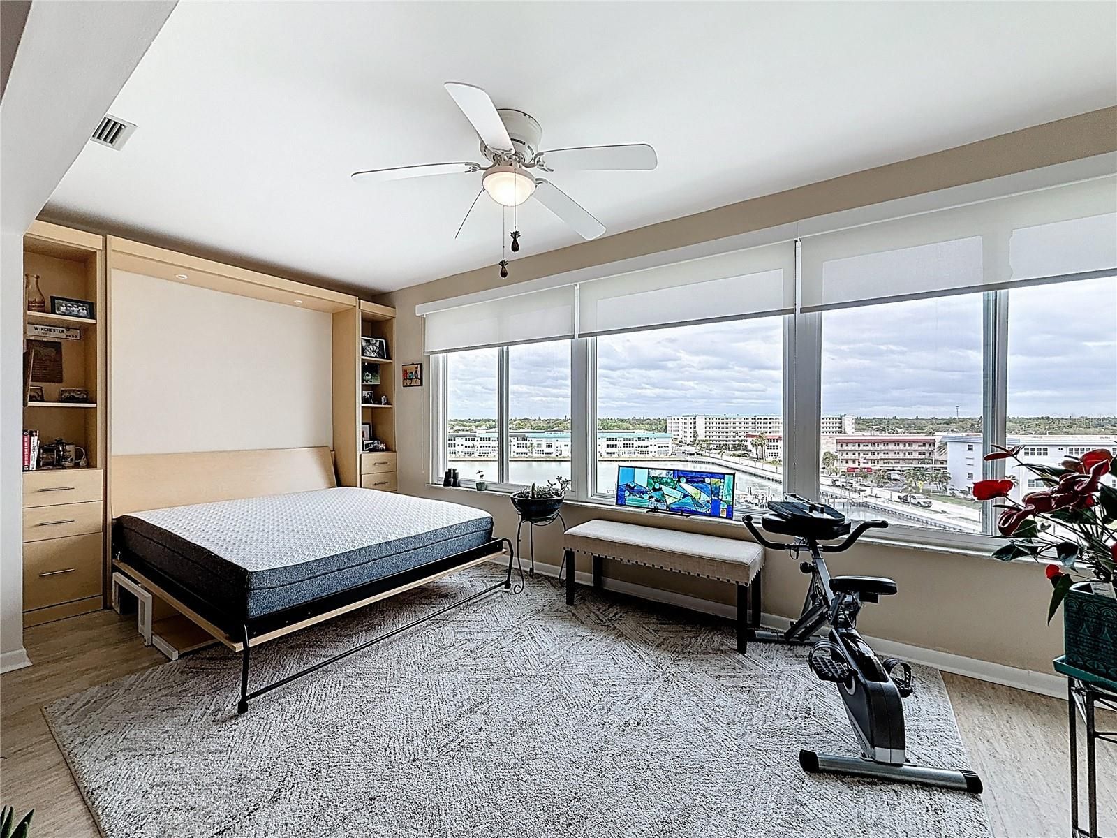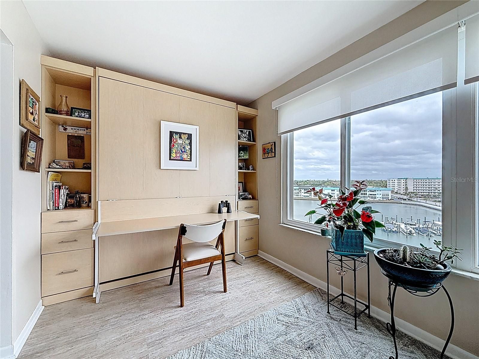 Welcome to Town Shores of Gulfport! Join the FUN at this 55+ waterfront community nestled along the sparkling shores of Boca Ciega Bay. Enjoy effortless coastal living in this beautifully maintained 1 Bedroom 1 Bath DELUXE unit offering 1060 Sq Ft of living space. Step inside to find a spacious open floorplan with a well-appointed kitchen boasting stainless steel appliances, granite counter tops, and a NEW Gas Range! Additionally, there is a generous sized bedroom with a custom built walk-in closet, an updated bathroom with a walk-in shower, and a spacious Florida room with an office space. Easily transform that office space into a guest space - a full-sized Murphy Bed is included! Notable features include a NEW HVAC unit, Hurricane rated impact resistant windows, NO popcorn ceilings, a NEW exterior storm door, a large storage closet in the Florida Room, custom solar window shades, extra storage on the same floor, a NEW roof on the building, and a NEW hurricane rated carport! Enjoy your morning coffee or evening sunset hues looking through the large double paned windows that frame peaceful marina views. Enjoy resort-style amenities, including FOUR heated pools, tennis and pickleball courts, shuffleboard, a fitness center, library, billiards, kayak storage, and a scenic waterfront walking path. Town Shores of Gulfport is just a short stroll from downtown Gulfport’s charming arts district, with its shops, restaurants, weekly markets, and vibrant nightlife! Whether you’re seeking a seasonal retreat or a full-time coastal residence, this condo offers the perfect blend of comfort, convenience, and Gulfport charm.