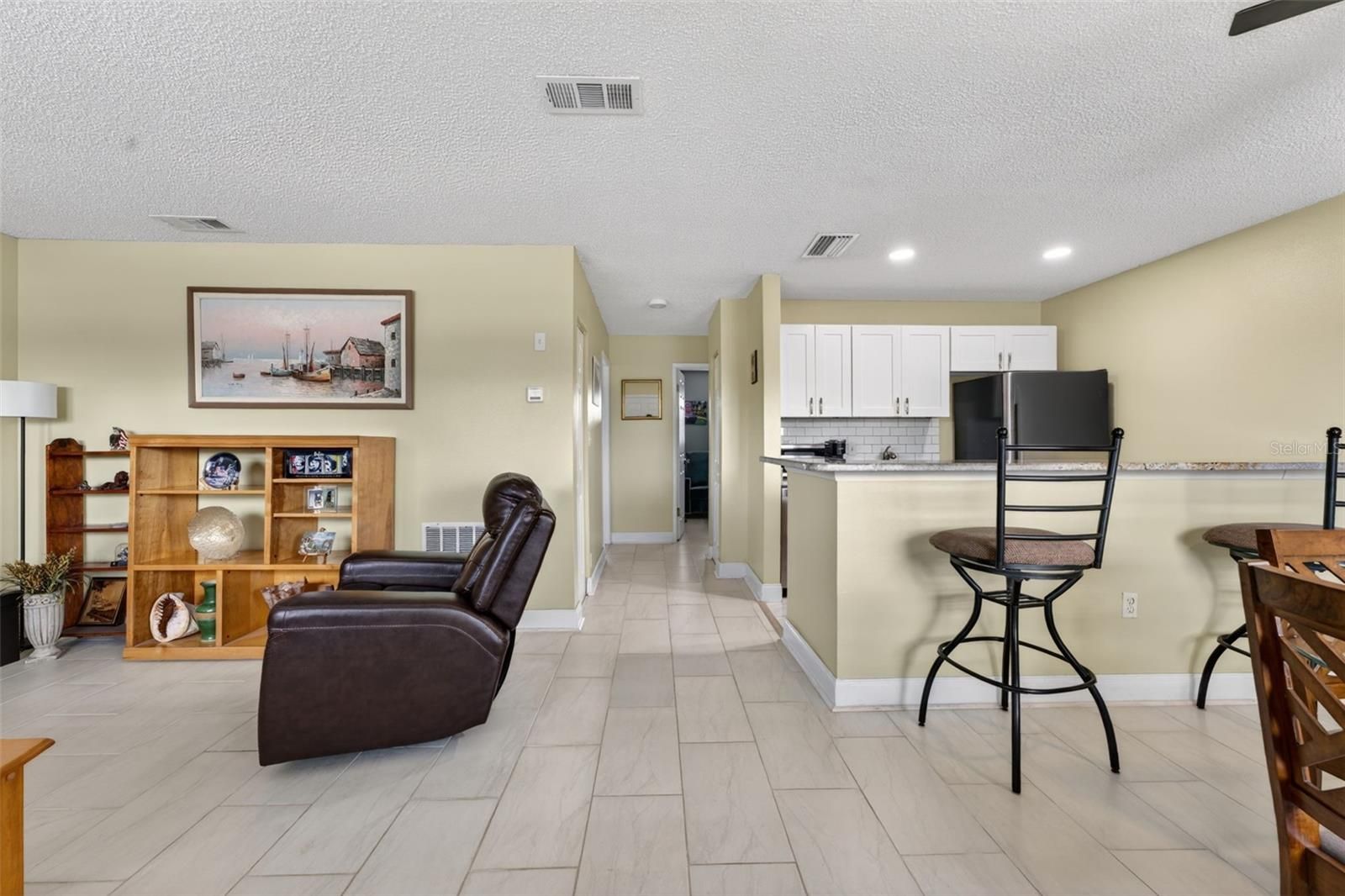 Fully updated. Hurricane-impact Category 5 windows and Front door. Steps to the pool. Move-in ready 2BR/2BA condo in Five Towns offering a bright, open layout and low-maintenance living in a well-positioned building plus assigned parking spot (#2). The renovated kitchen anchors the space with modern cabinetry, granite countertops, stainless steel appliances, and a clean subway tile backsplash, opening to the living and dining area with breakfast bar seating. Porcelain tile flooring runs throughout for durability and continuity. The primary suite features a walk-in closet, updated bath, and direct access to a screened lanai, creating a private, quiet retreat. The second bedroom adapts easily for guests or a home office. Recent improvements include hurricane-rated windows and front door, updated fixtures, updated AC (2021). Additional features include ample storage, nearby laundry facilities, and assigned parking (#203). Located just steps from one of six pools, along with tennis and pickleball courts, yoga area, this residence sits within Five Towns, a 55+ community spanning 100+ acres of landscaped grounds with walking paths, ponds, and green space. Amenities include 2 clubhouses, 2 fitness centers, heated pools and spa, Bocce courts, shuffleboard, billiards, and a full calendar of social activities. Conveniently located near shopping, dining, medical services, and just minutes to Gulf beaches. Suitable for full-time or seasonal use.